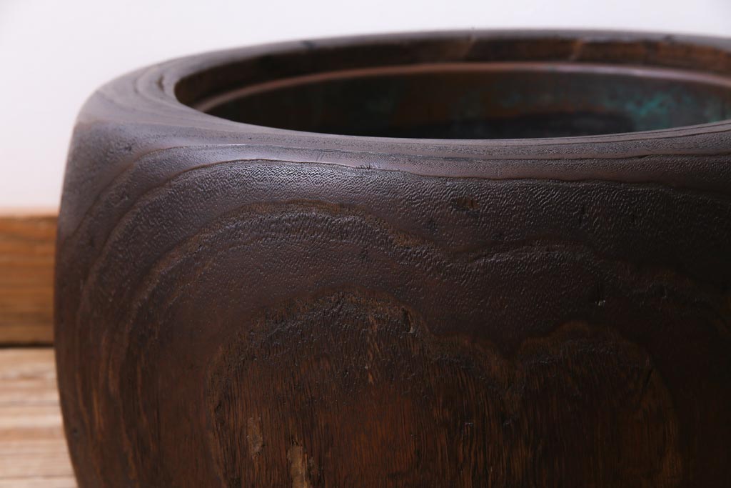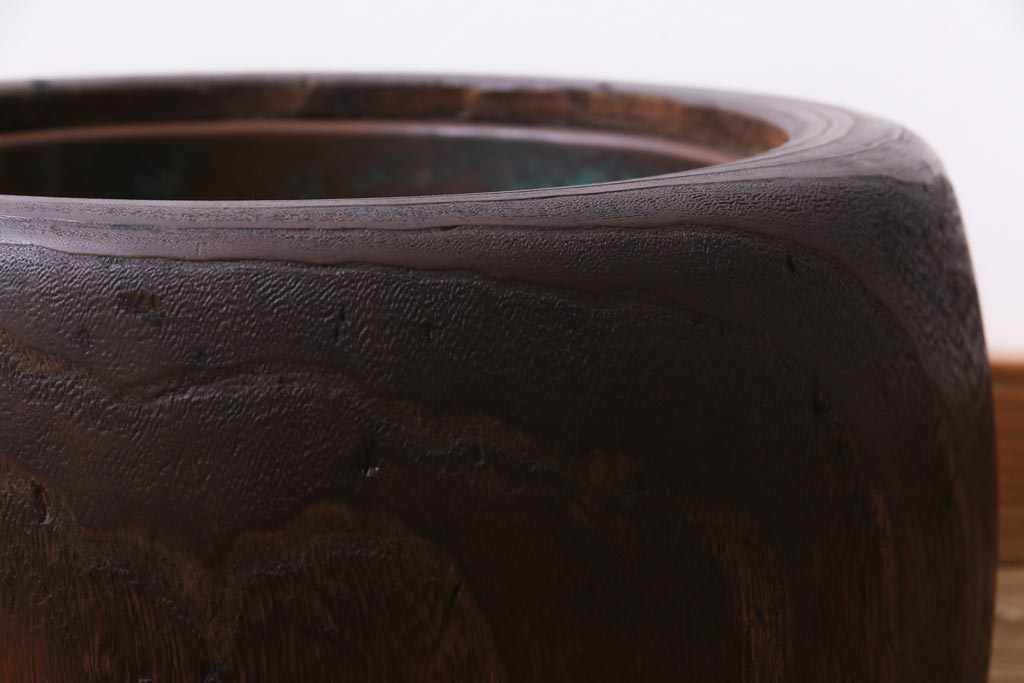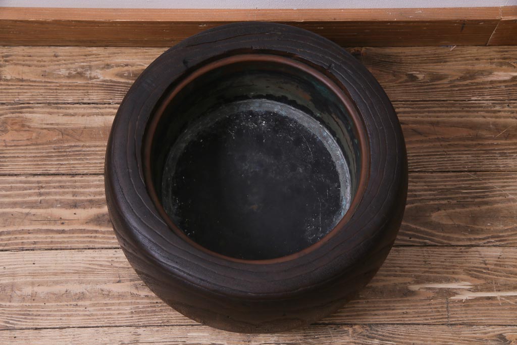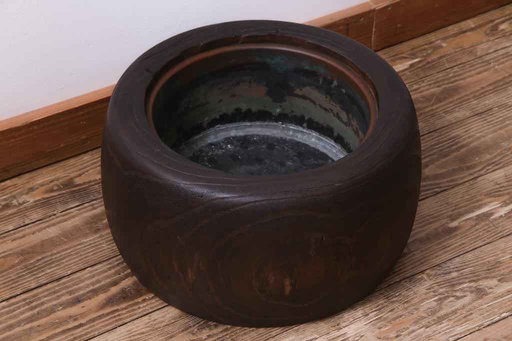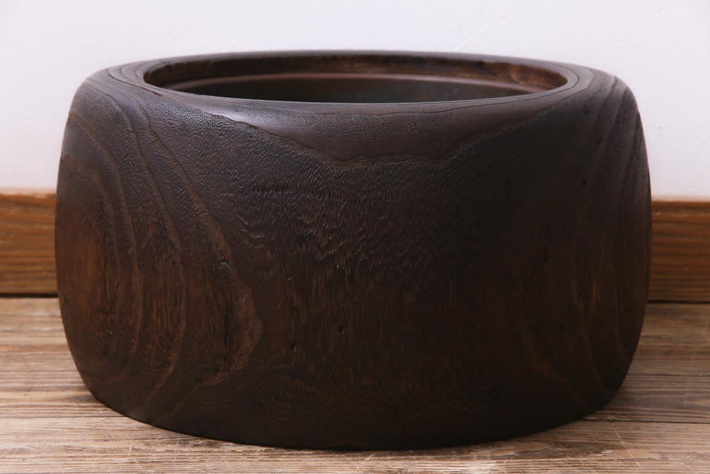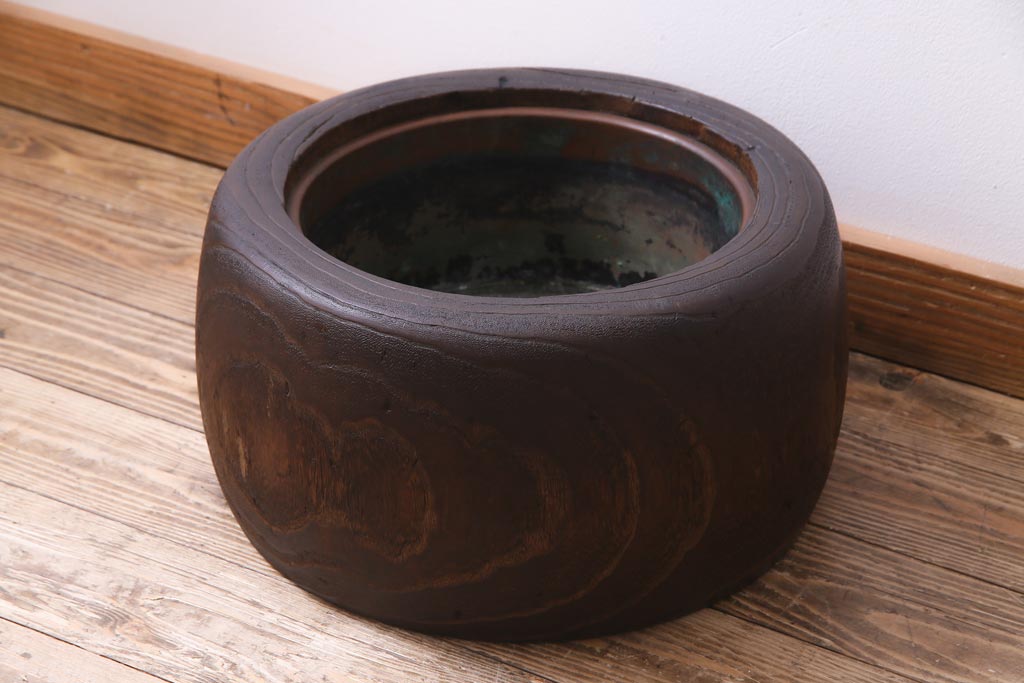 和製アンティーク 風情のある木の質感のくりぬき火鉢(刳り貫き火鉢、手あぶり)です。