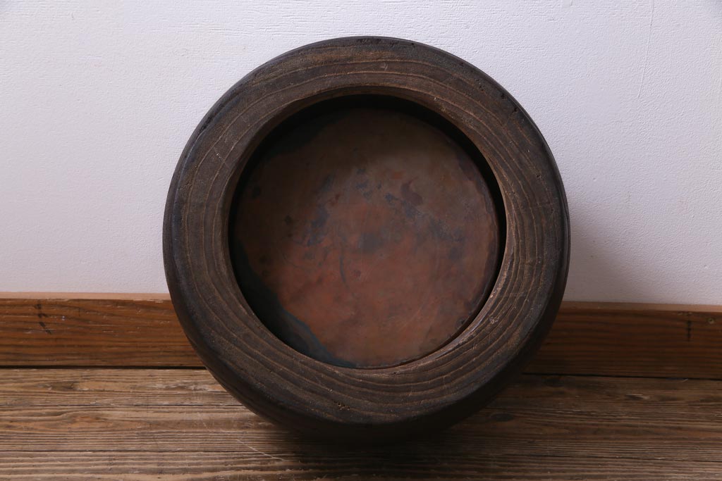アンティーク雑貨 和製アンティーク 風情のある木の質感のくりぬき火鉢(刳り貫き火鉢、手あぶり)