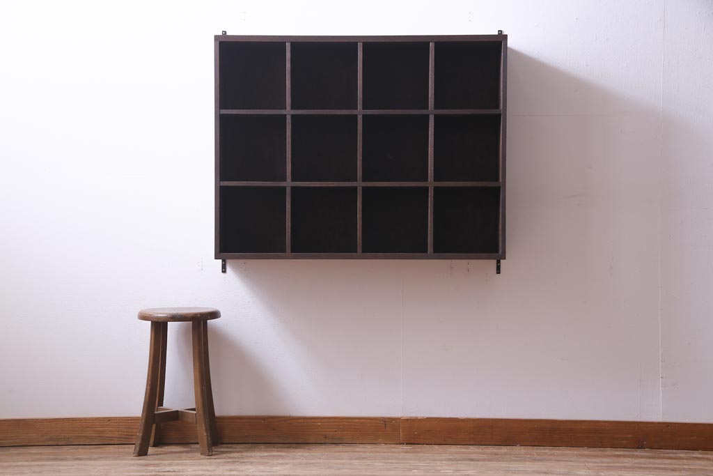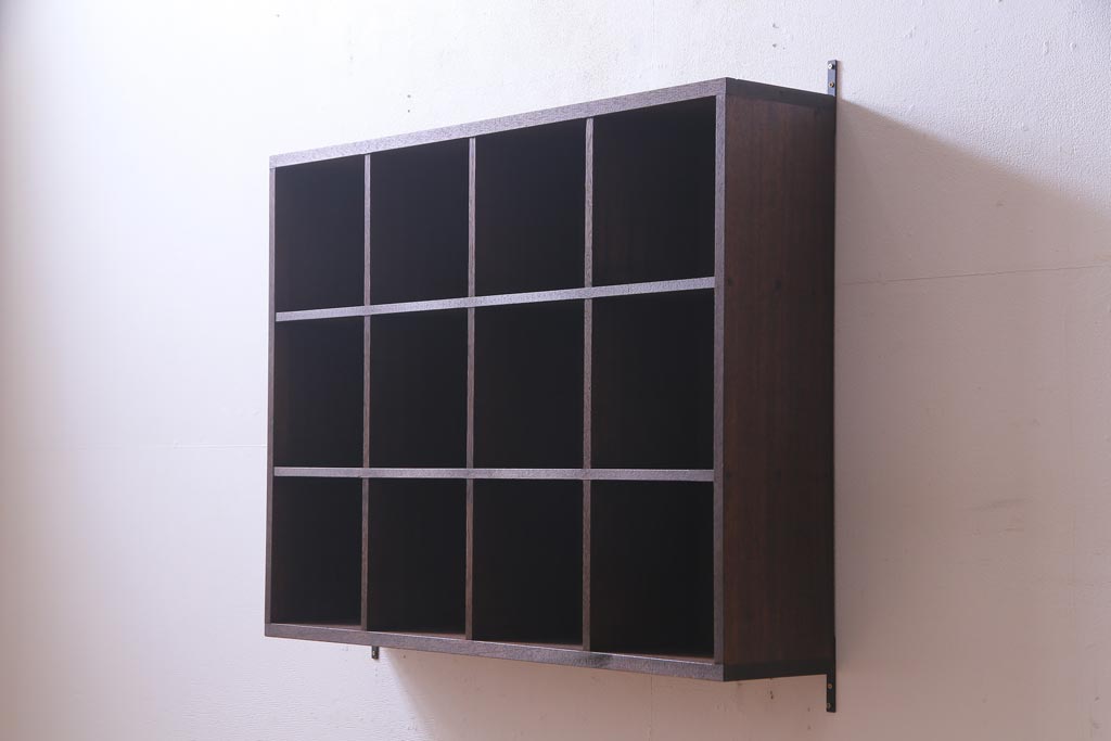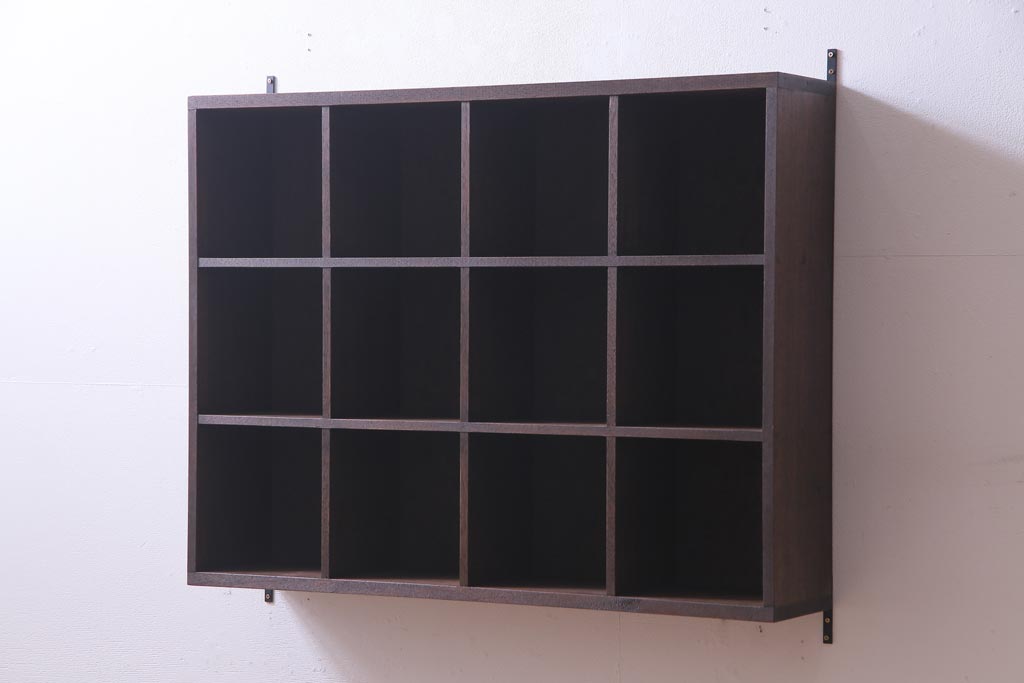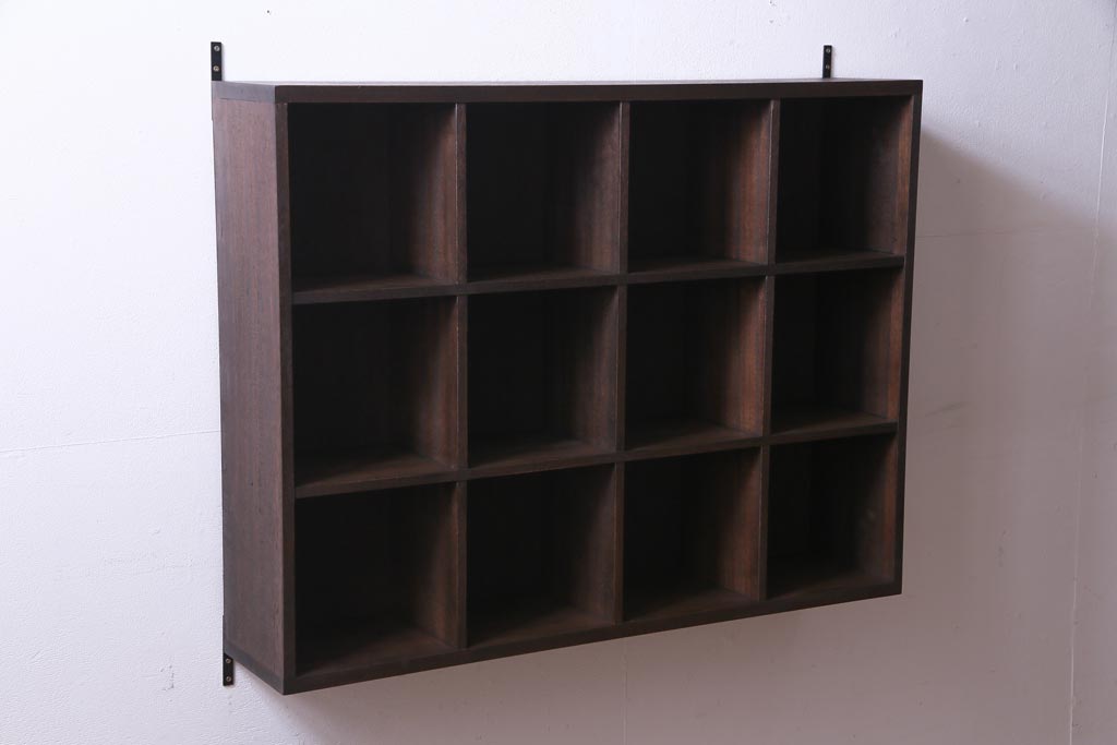 ラフジュ工房> オープンラック・シェルフ > ラフジュ工房オリジナル リメイク家具 3×4マス 収納しながらディスプレイも楽しめる壁掛けマス目棚((壁掛け収納棚、ウォールラック)(1)