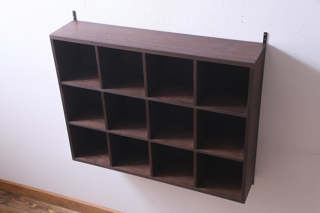 ラフジュ工房オリジナル リメイク家具 3×4マス 収納しながらディスプレイも楽しめる壁掛けマス目棚((壁掛け収納棚、ウォールラック)(1)