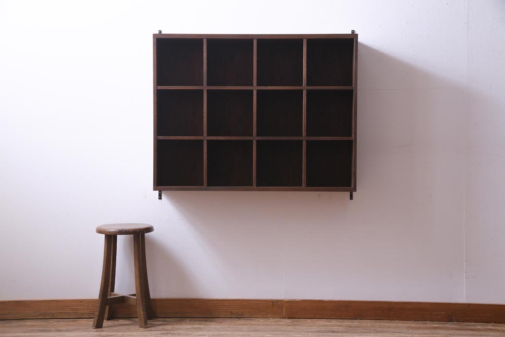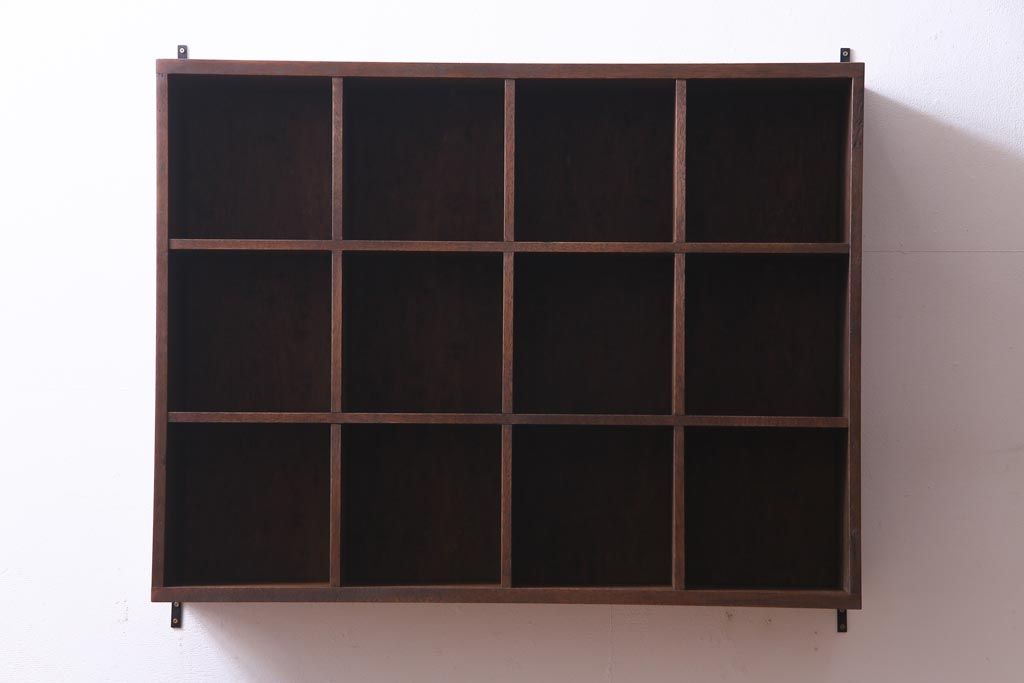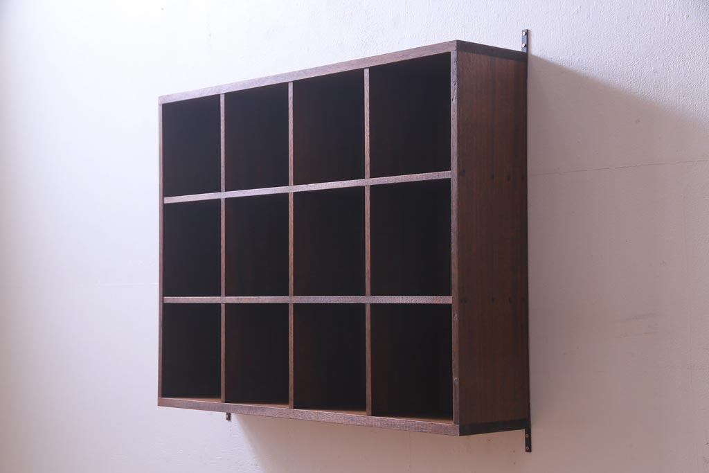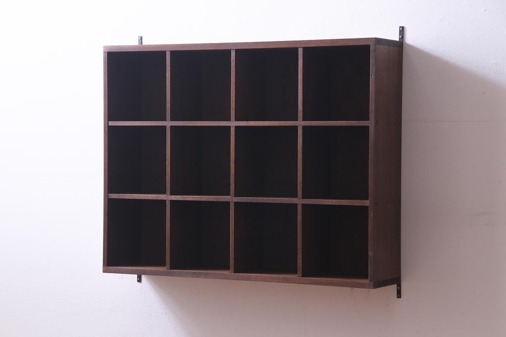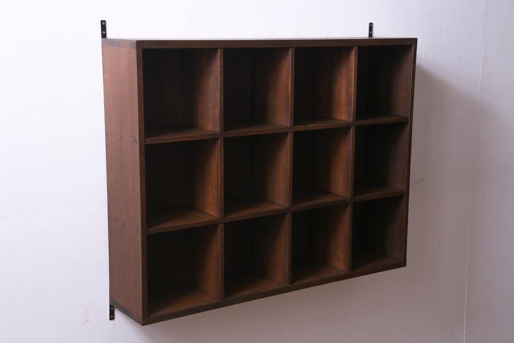 ラフジュ工房> オープンラック・シェルフ > ラフジュ工房オリジナル リメイク家具 3×4マス 収納しながらディスプレイも楽しめる壁掛けマス目棚(壁掛け収納棚、ウォールラック)