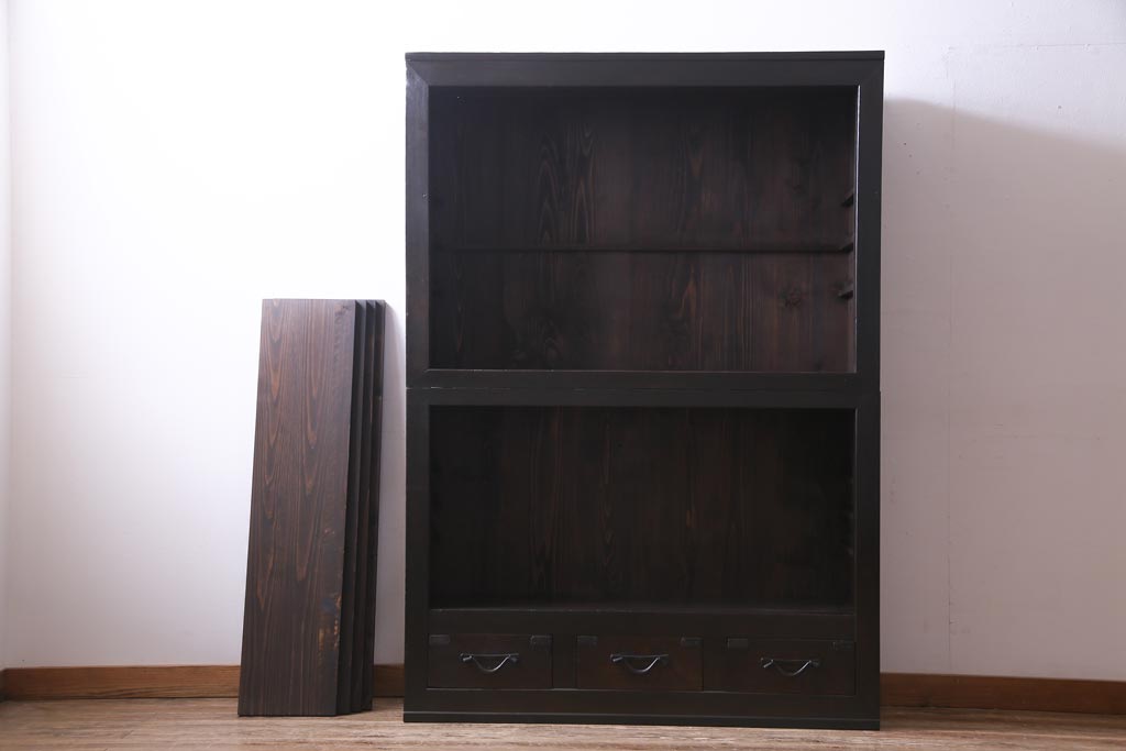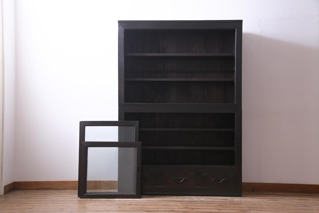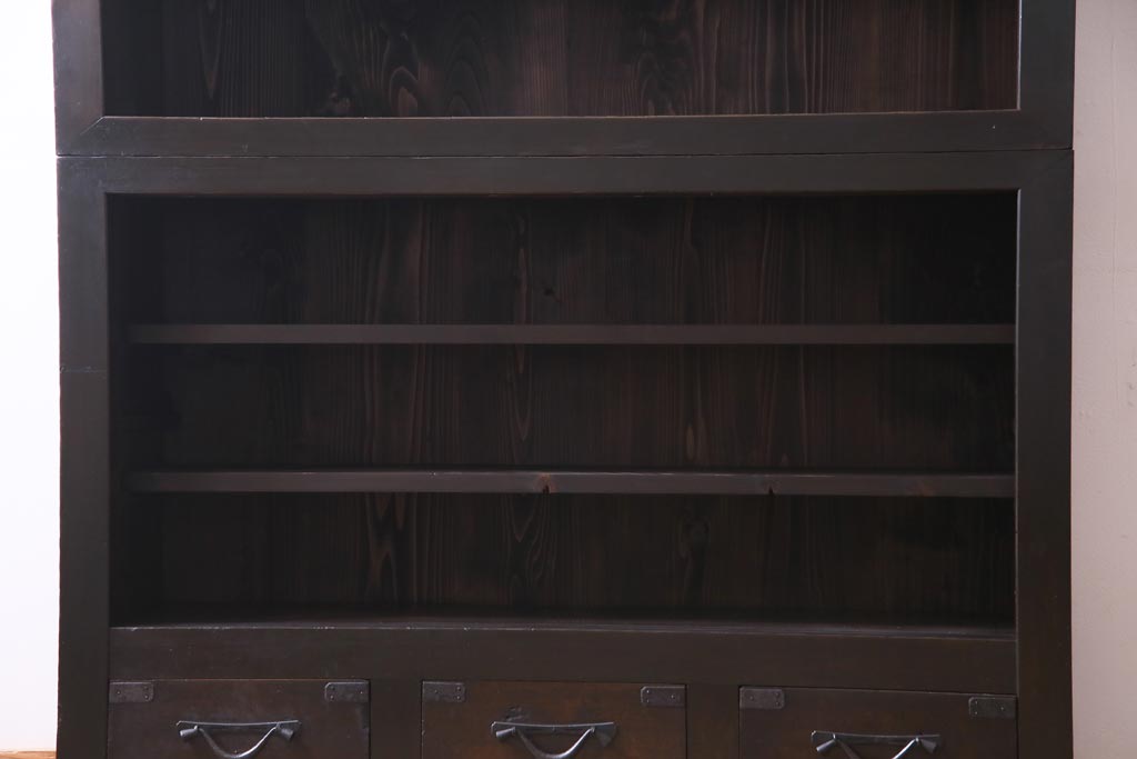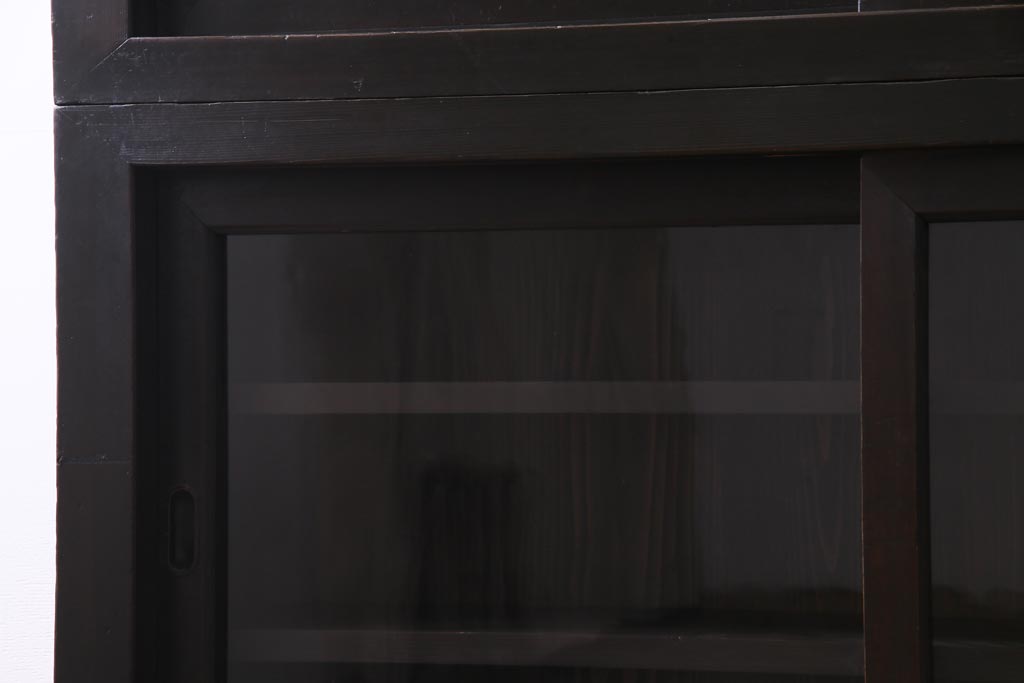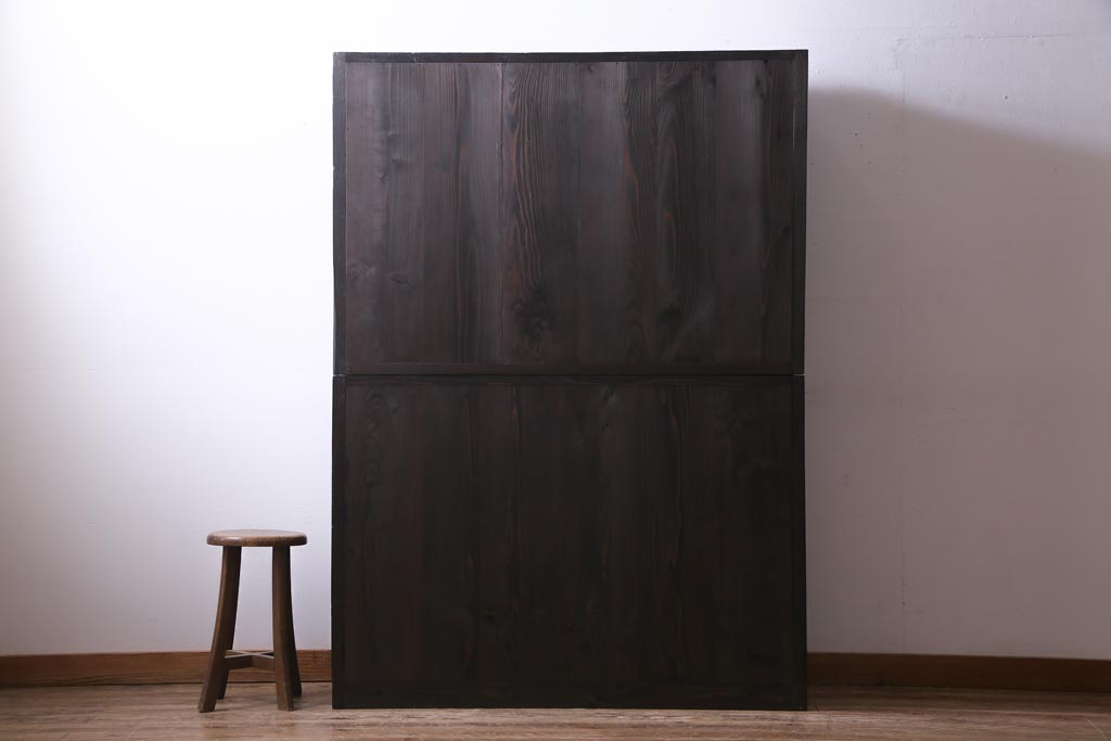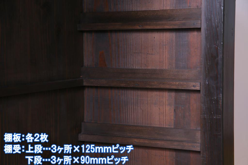 アンティーク家具 和製アンティーク ヒノキ材 近江産 貫禄ある佇まいが魅力の関西収納棚(重ね収納棚、水屋箪笥)