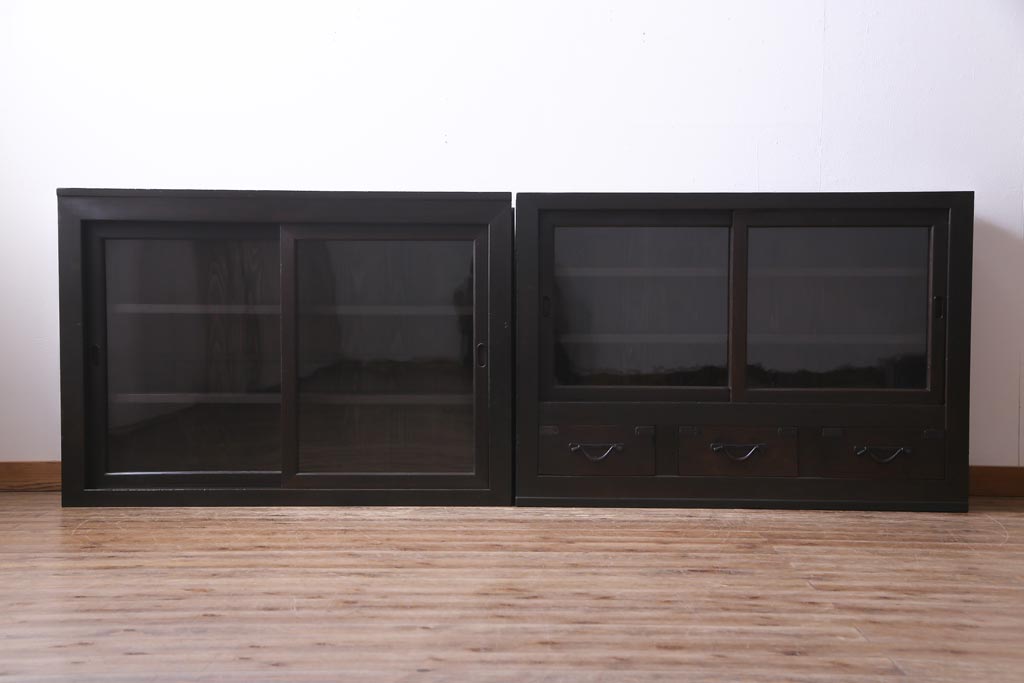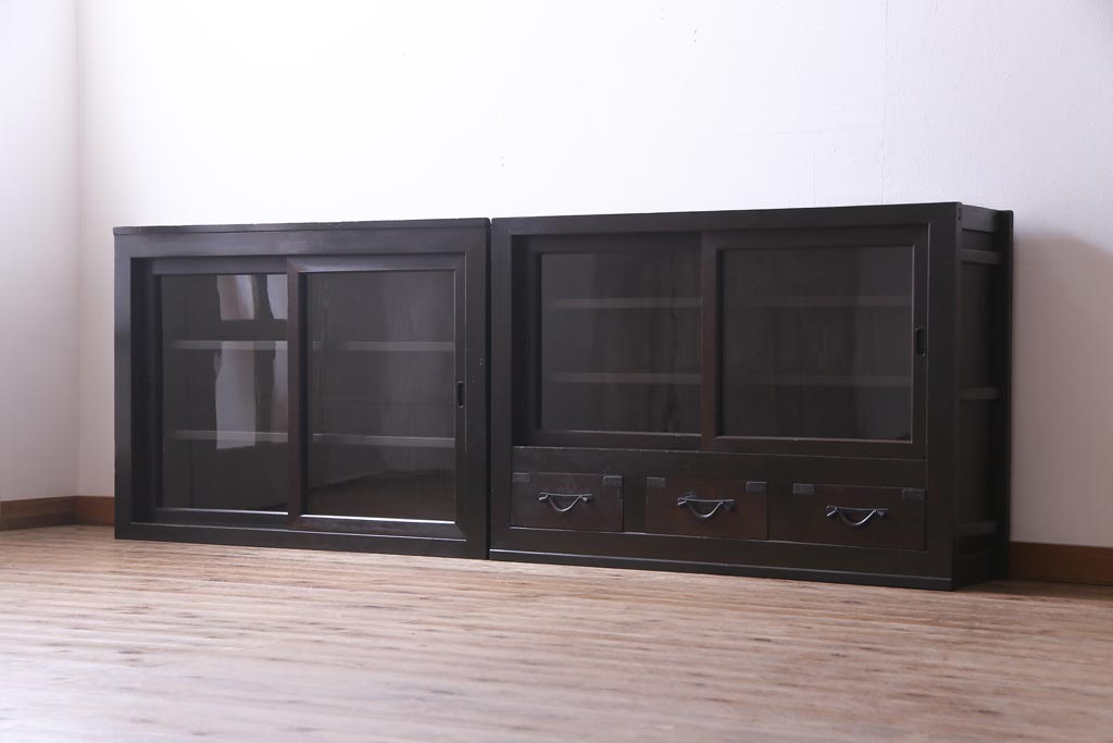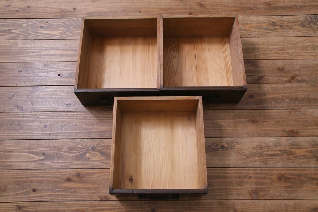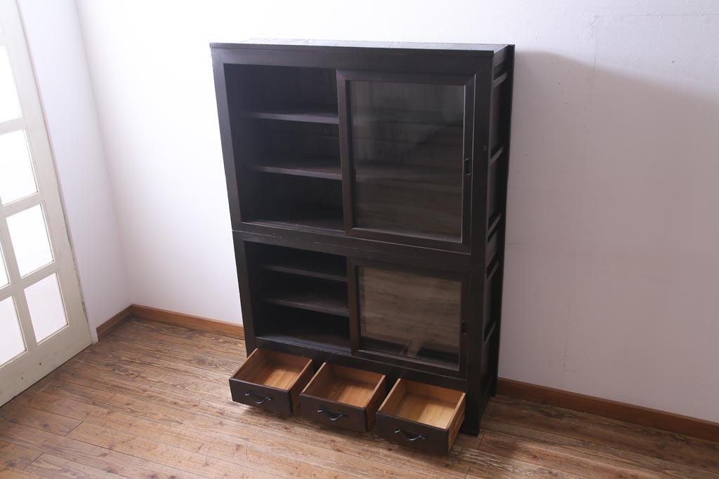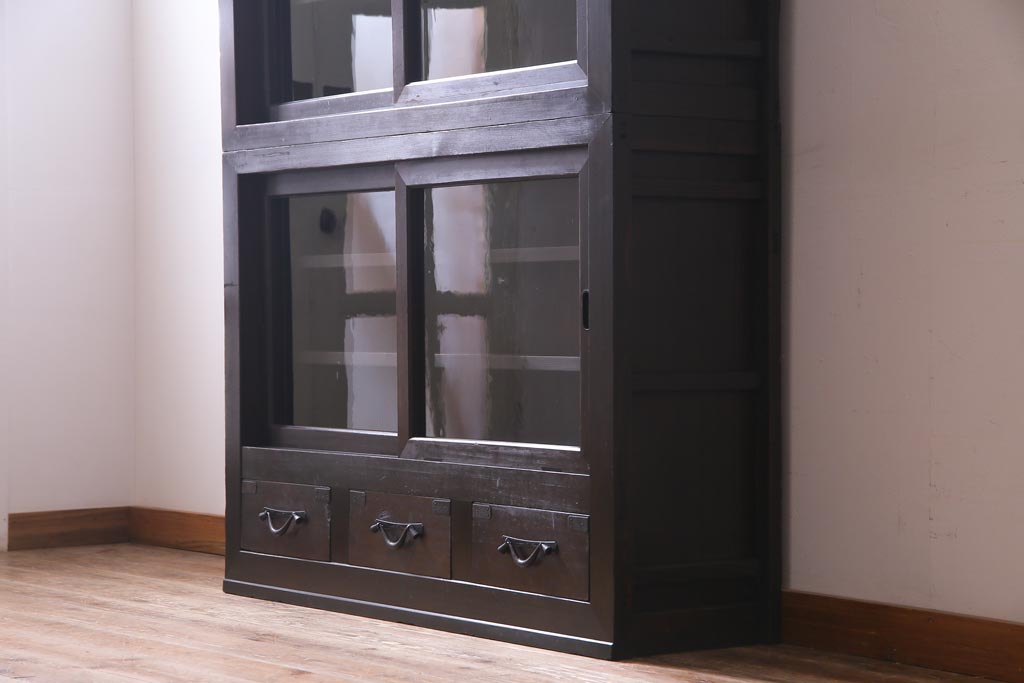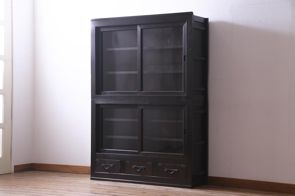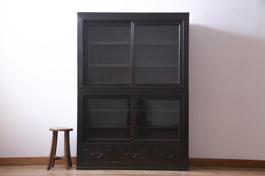 アンティーク家具 和製アンティーク ヒノキ材 近江産 貫禄ある佇まいが魅力の関西収納棚(重ね収納棚、水屋箪笥)