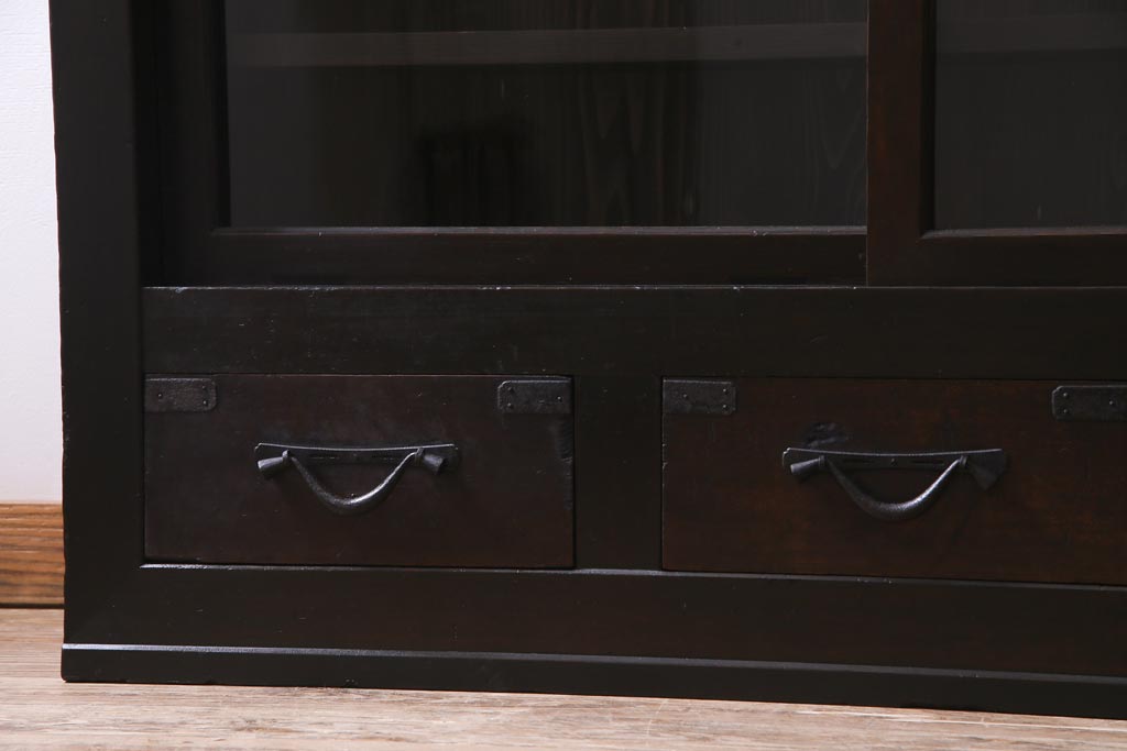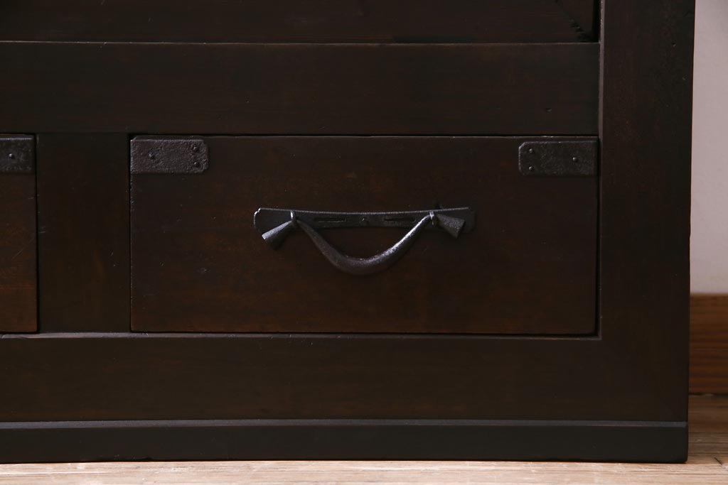ラフジュ工房> 和箪笥> 水屋箪笥 > アンティーク家具 和製アンティーク ヒノキ材 近江産 貫禄ある佇まいが魅力の関西収納棚(重ね収納棚、水屋箪笥)