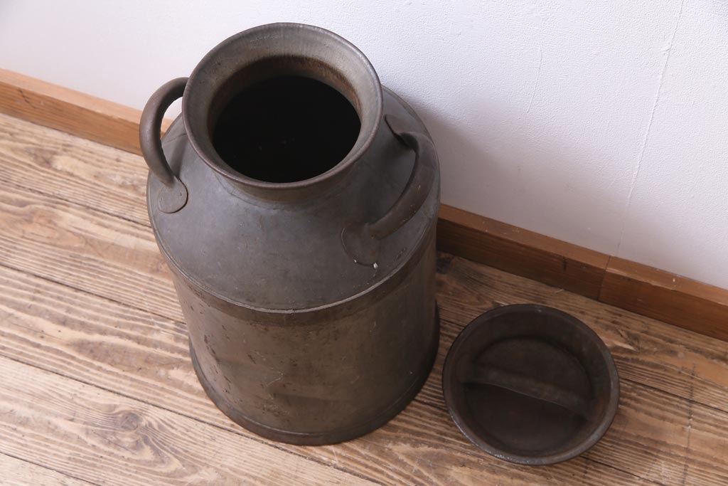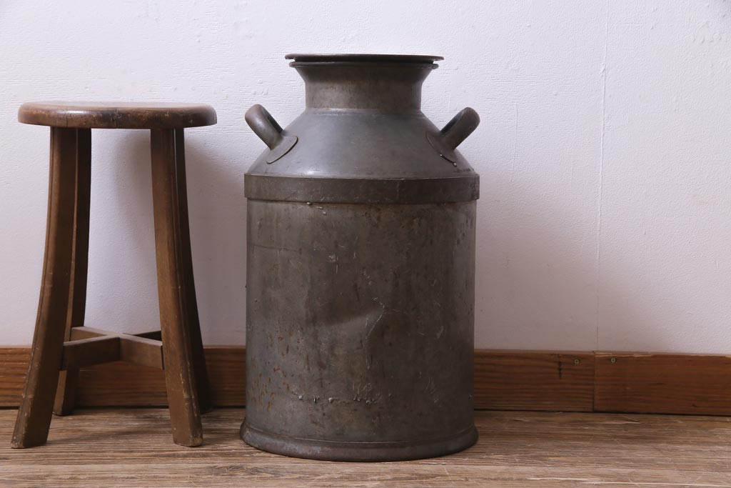 アンティーク雑貨 昭和レトロ 錆びついた質感がお洒落なミルク缶(牛乳缶、ディスプレイ)