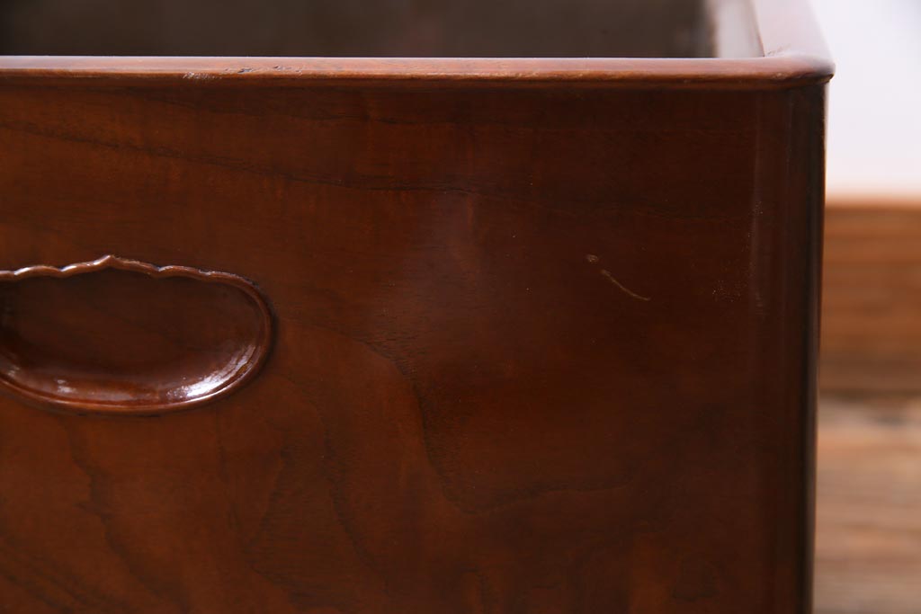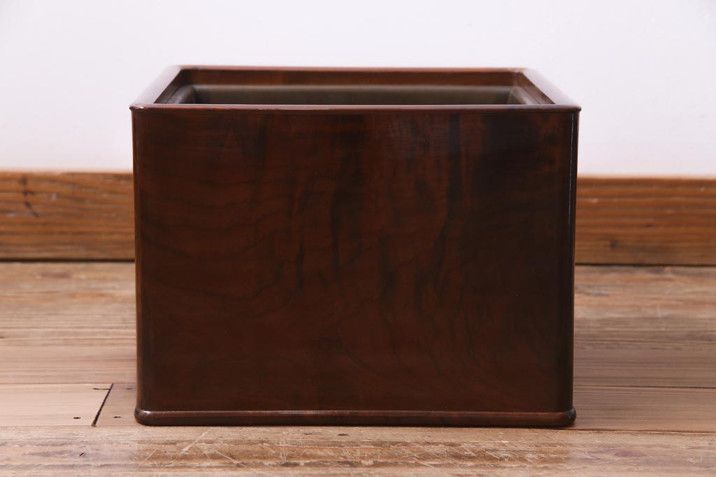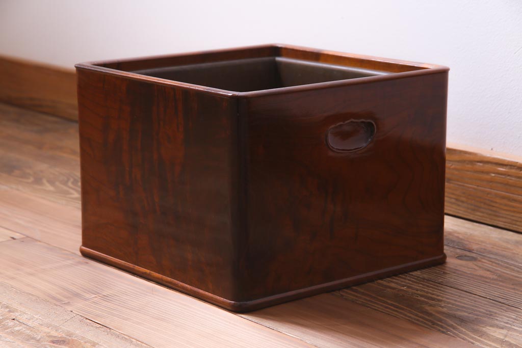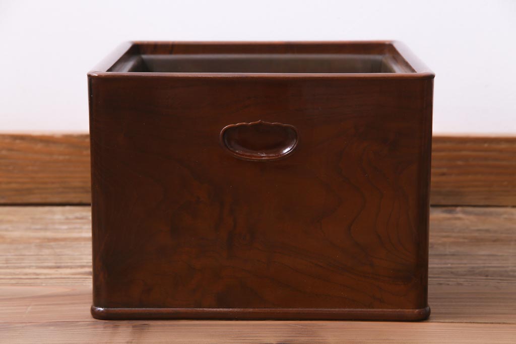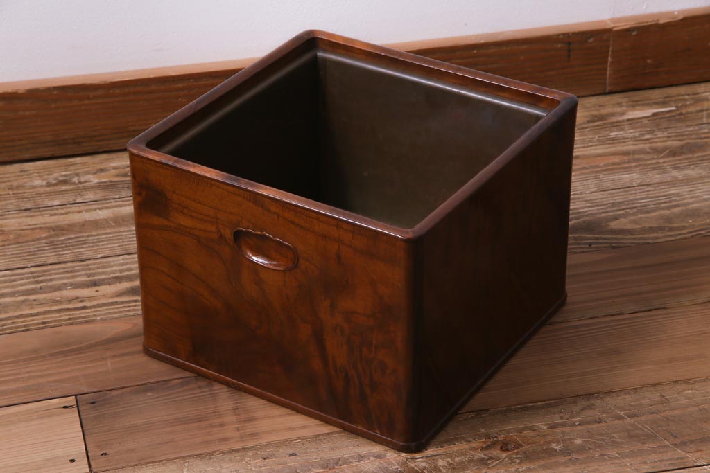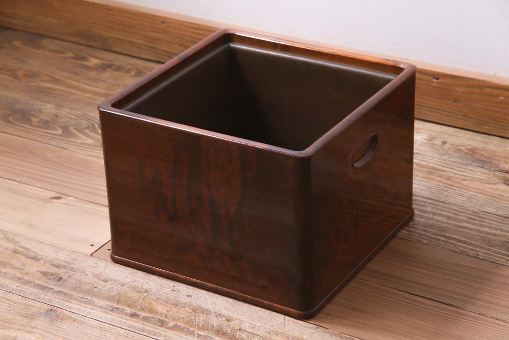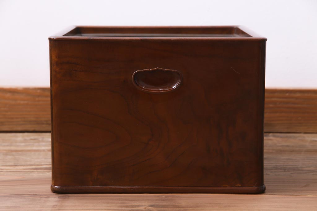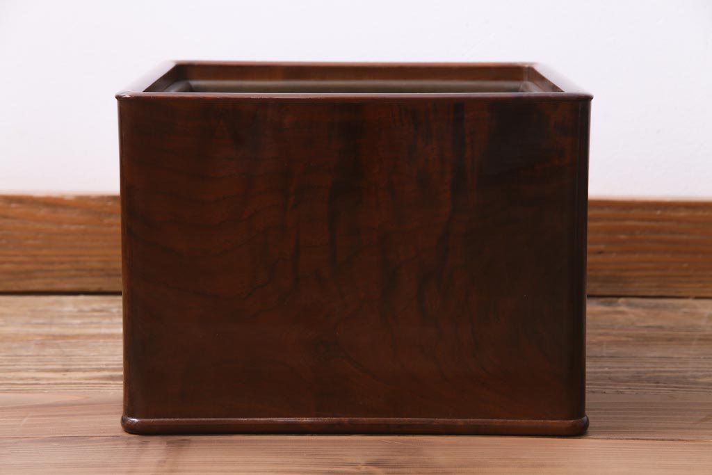 火鉢> 木製火鉢 > アンティーク雑貨 大正昭和初期 桑材 漆塗り 品の良い和の雰囲気漂う指物家具の角火鉢(手あぶり)