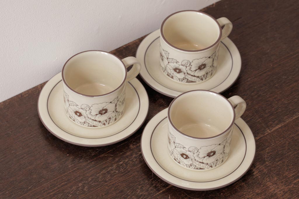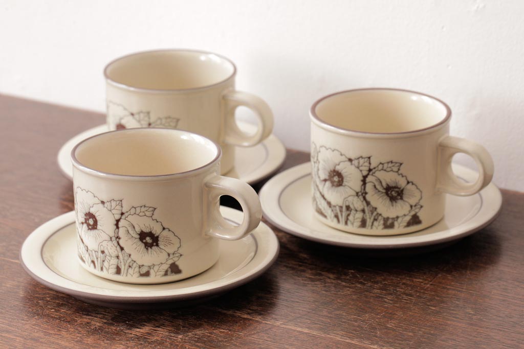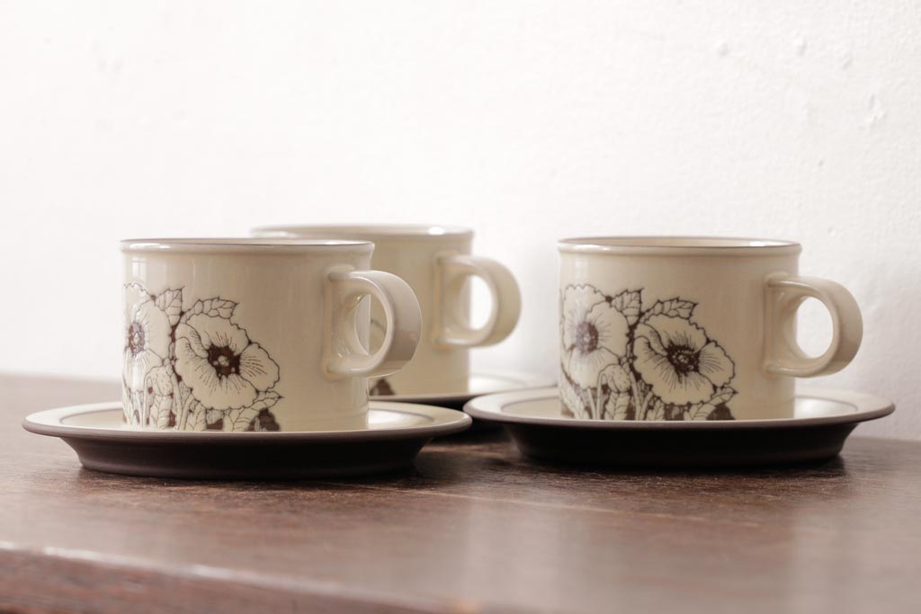 ラフジュ工房> 洋食器・キッチン用品> カップ&ソーサー > イギリスビンテージ HORNSEA(ホーンジー) Cornrose(コーンローズ) カップ&ソーサー3客セット