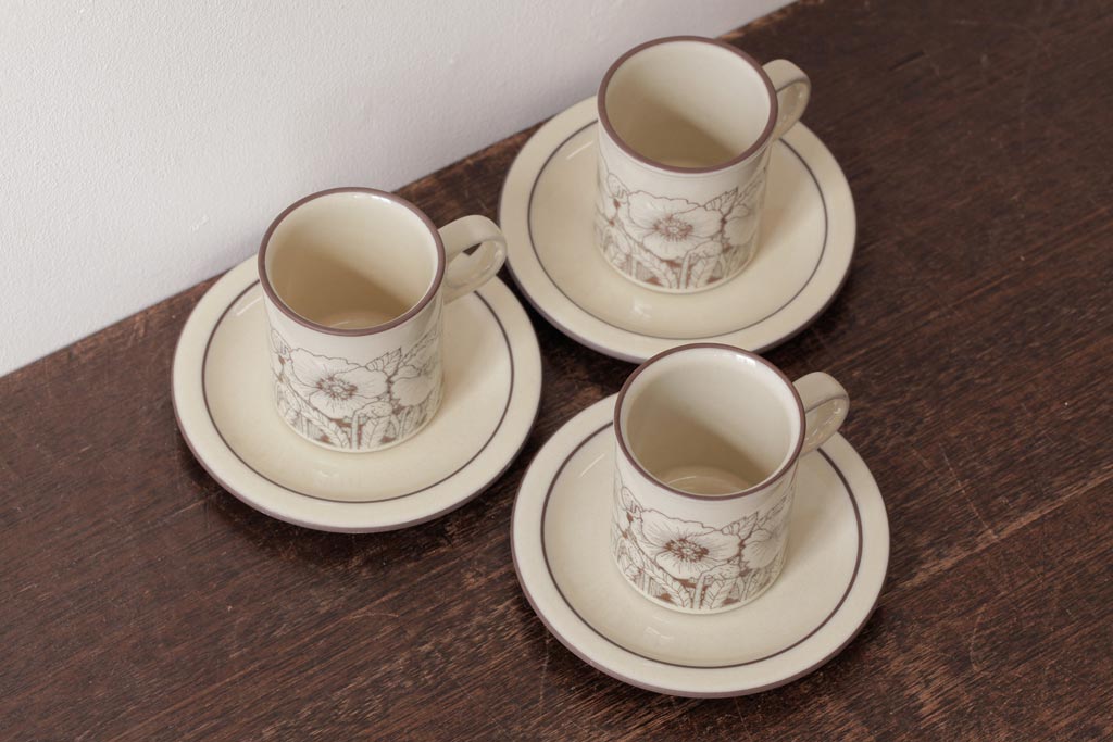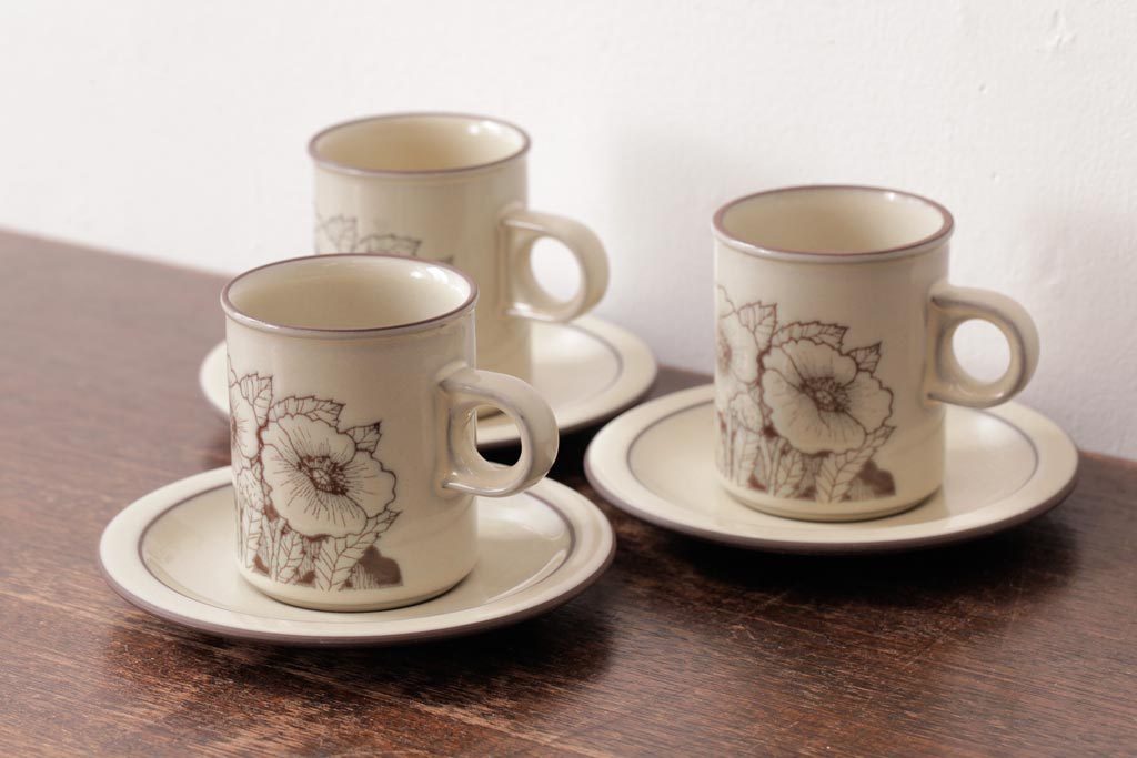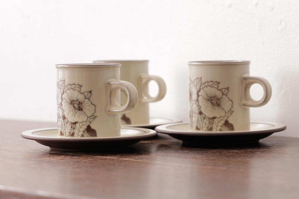 ラフジュ工房> 洋食器・キッチン用品> カップ&ソーサー > イギリスビンテージ HORNSEA(ホーンジー) Cornrose(コーンローズ) カップ&ソーサー3客セット(デミタスカップ)
