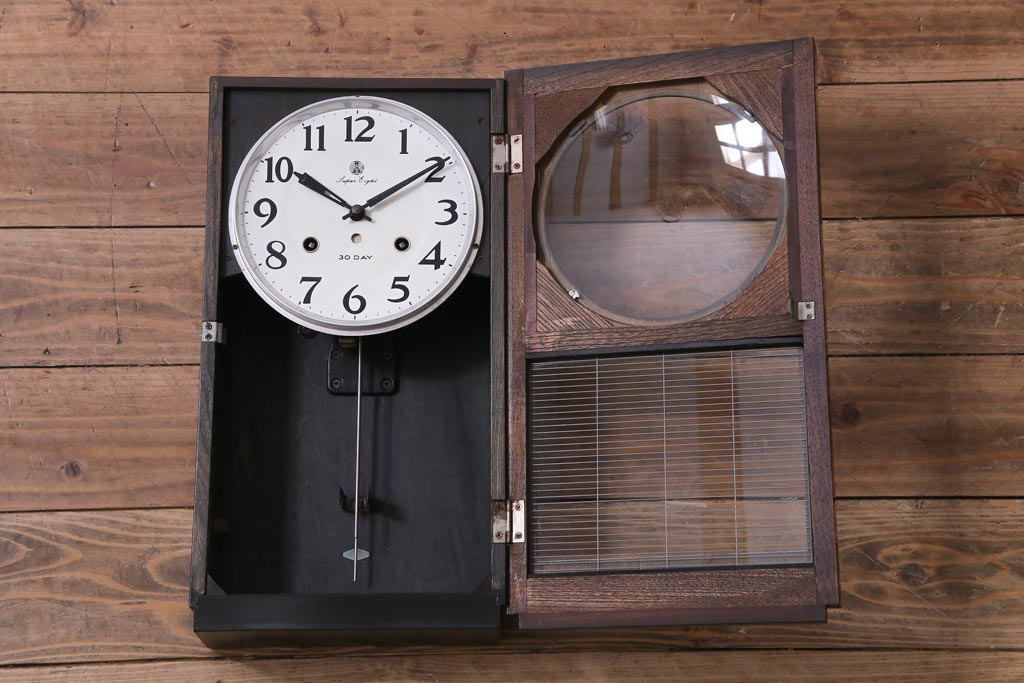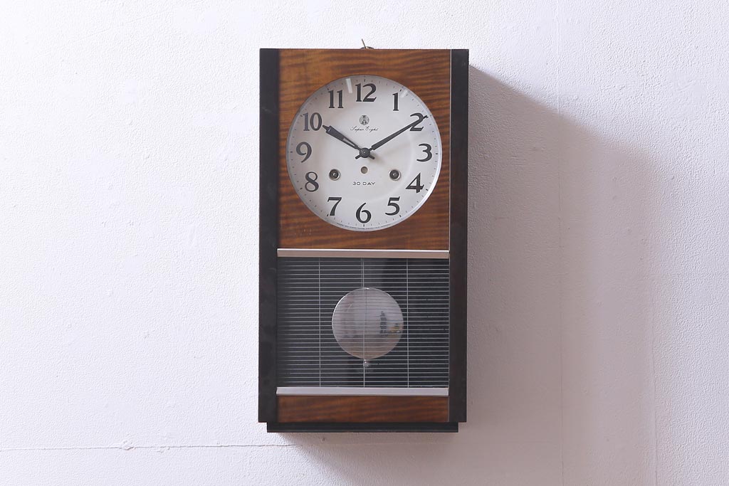アンティーク雑貨 昭和レトロ 愛知時計電機(アイチ) Super Eight 30DAY 手巻き式柱時計(振り子時計、掛け時計)