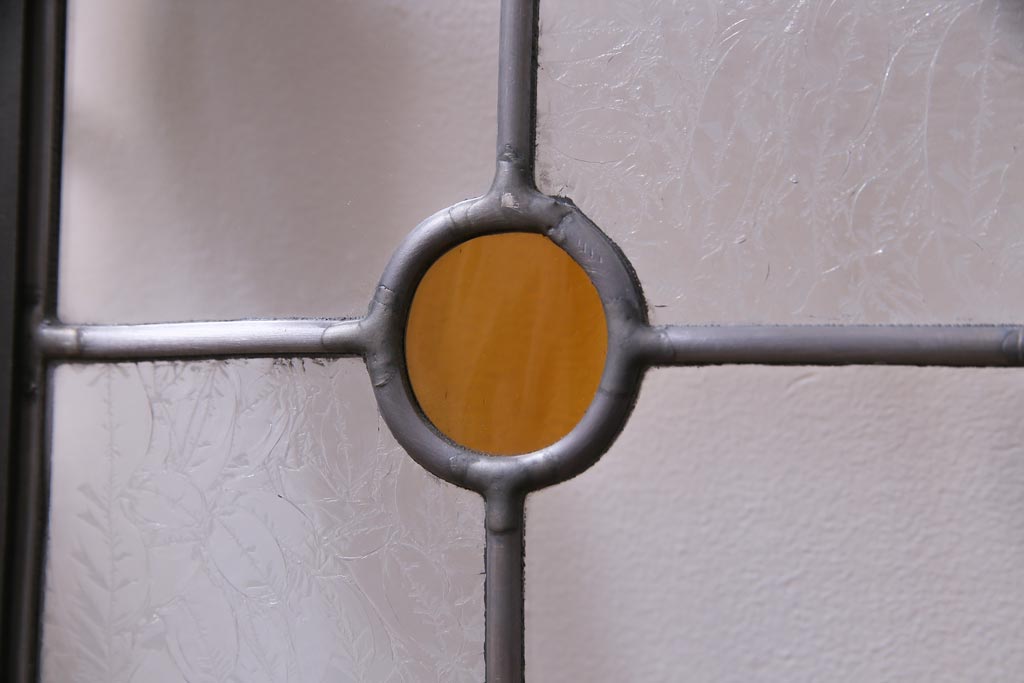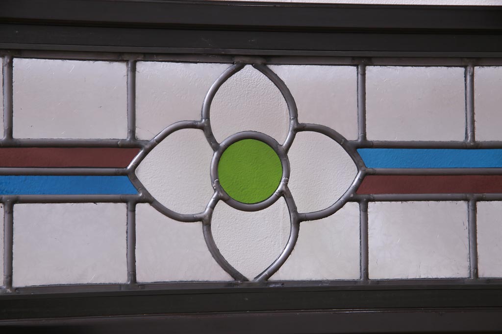 色ガラスと結霜ガラスがレトロな雰囲気を醸し出し、