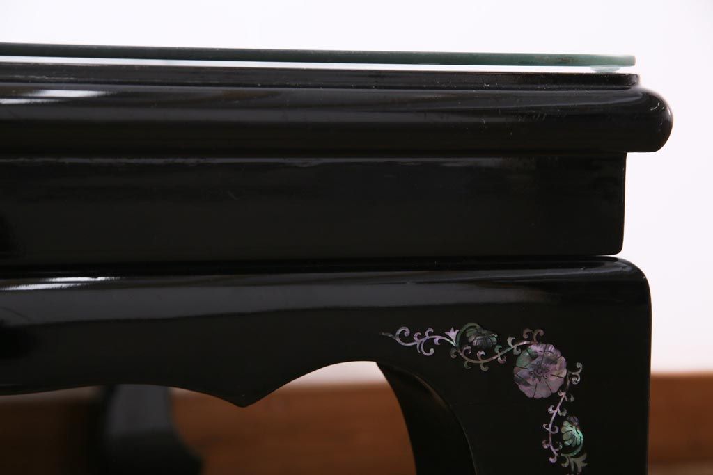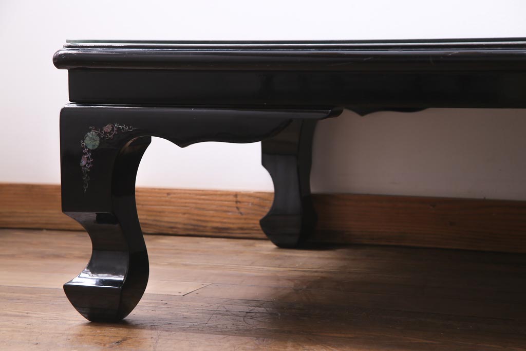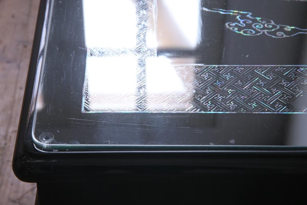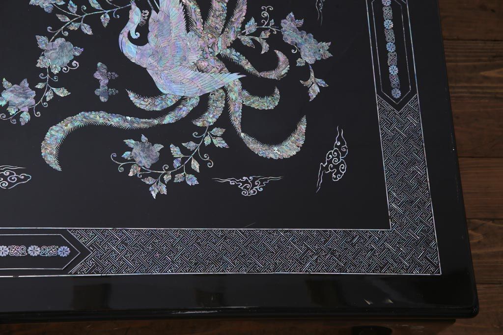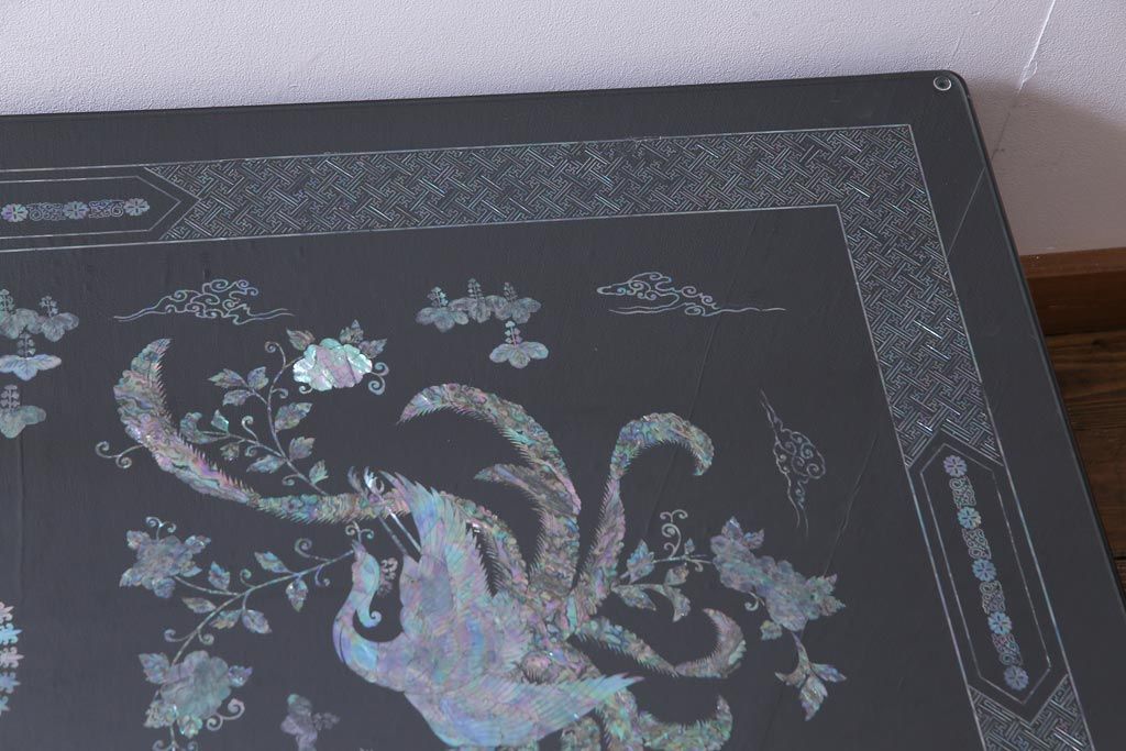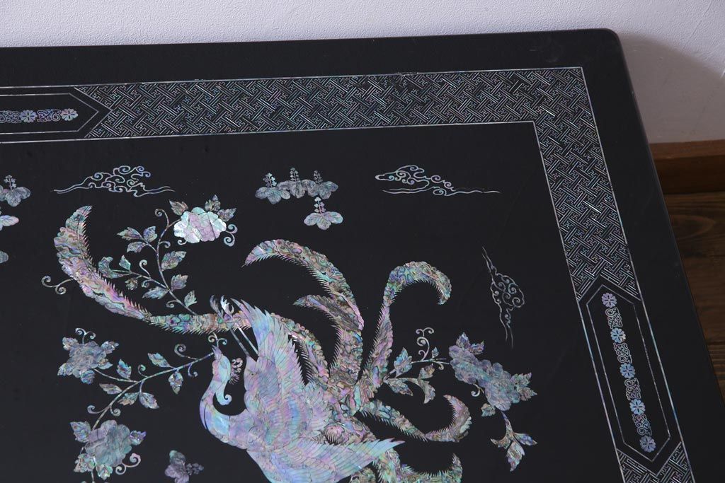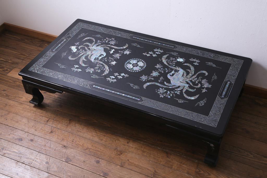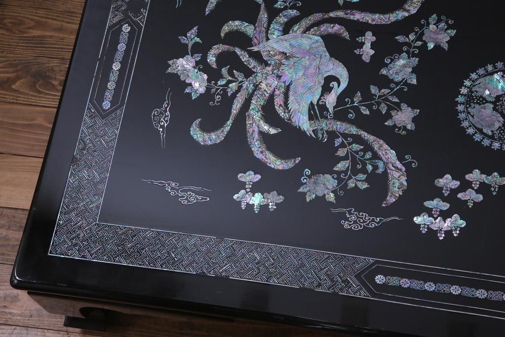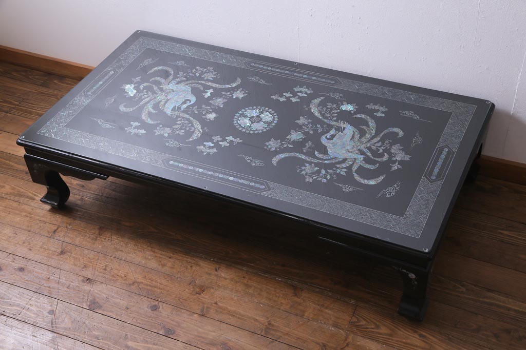 中古 民芸家具 ガラス天板付き 鳳凰 気品漂う螺鈿細工の座卓(ローテーブル)