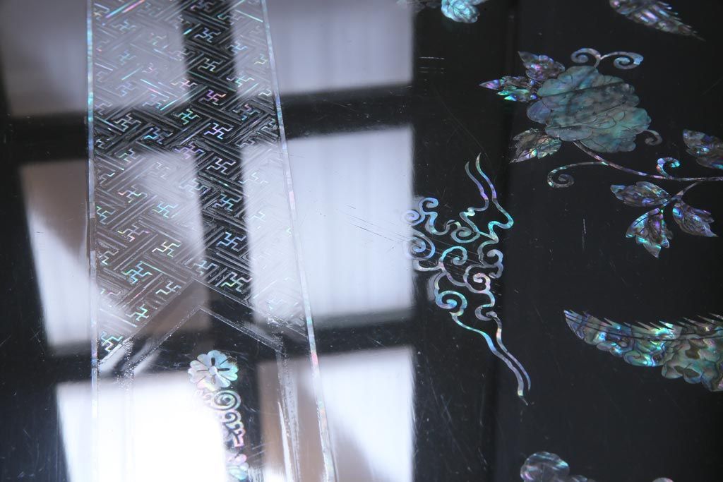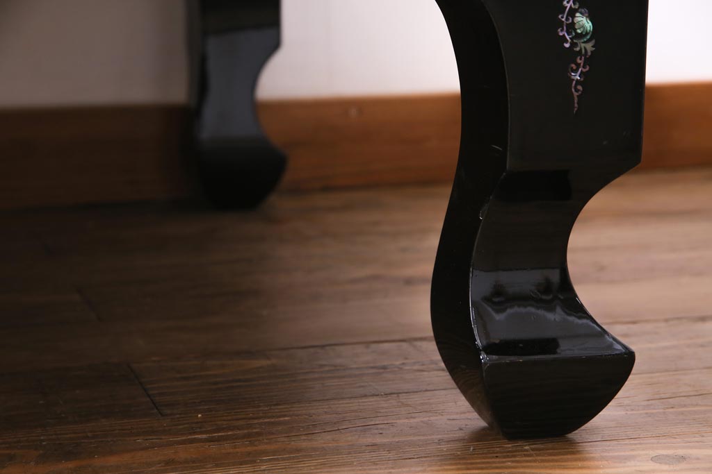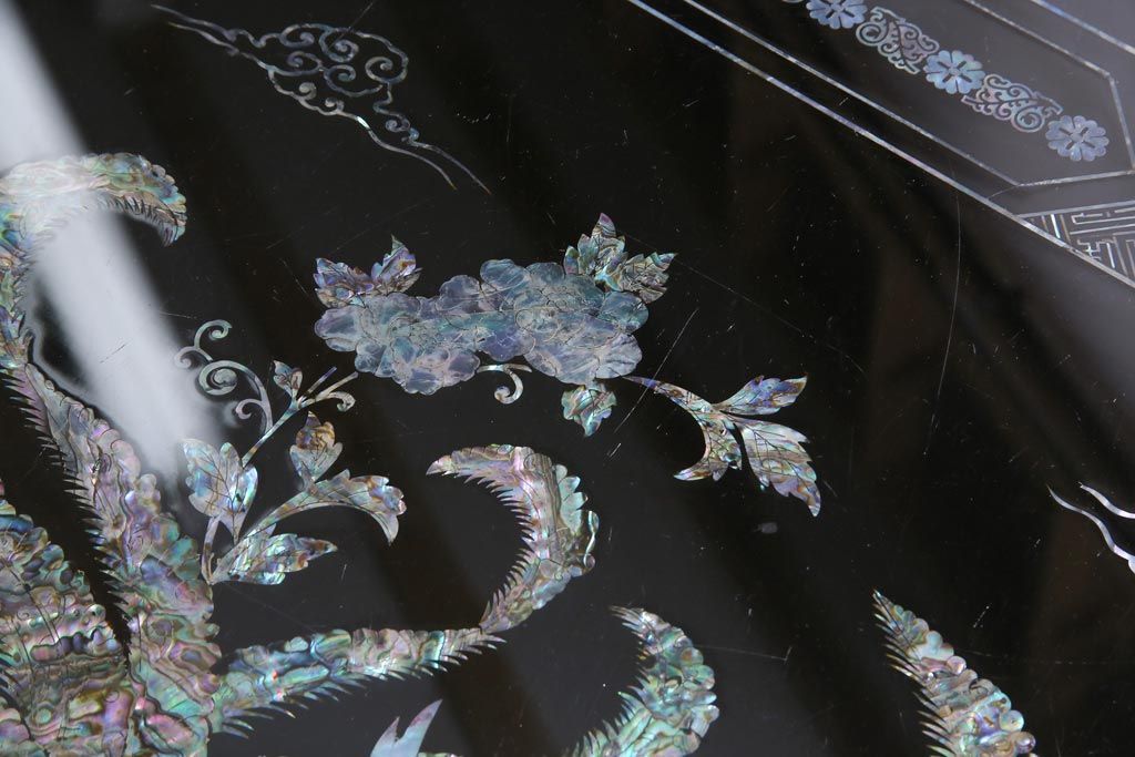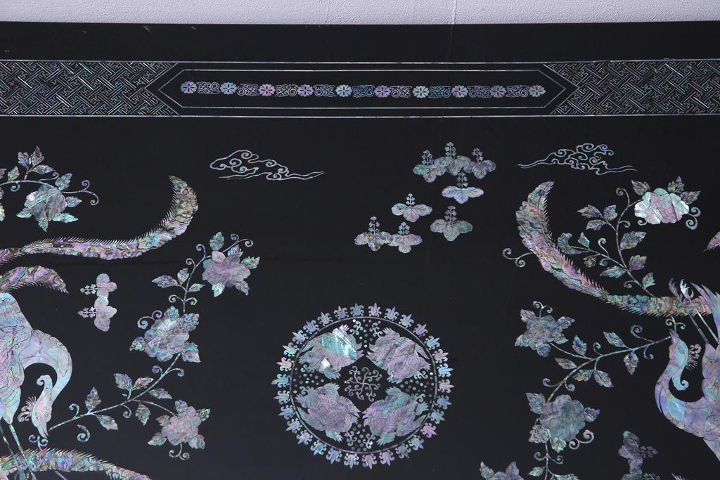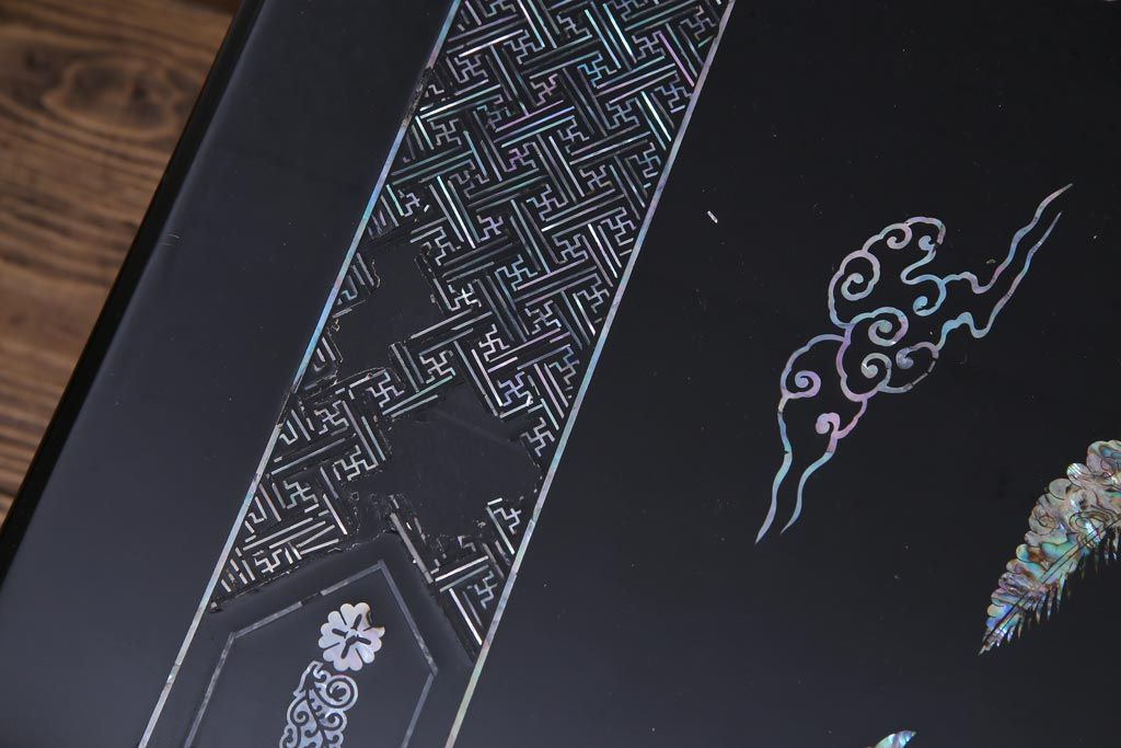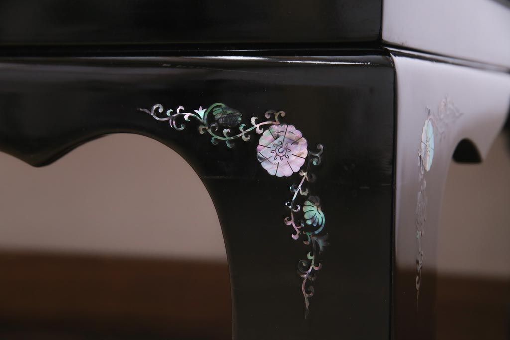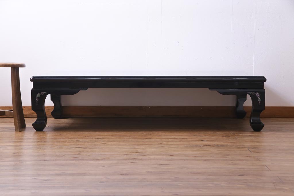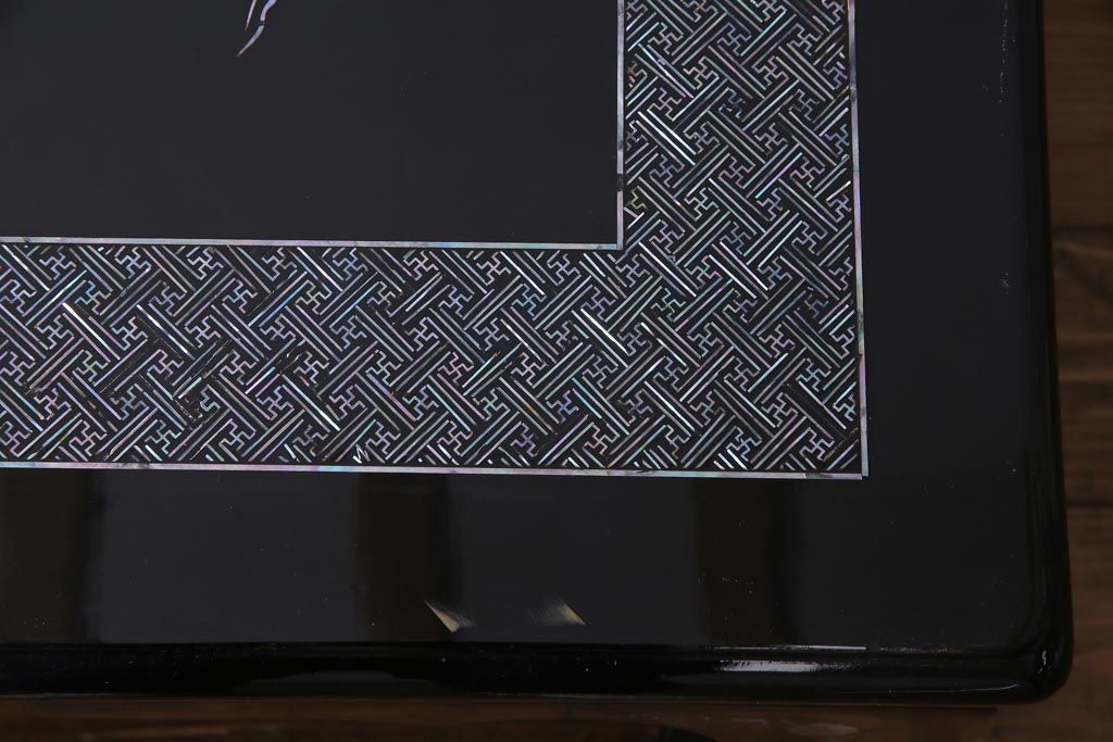 中古 民芸家具 ガラス天板付き 鳳凰 気品漂う螺鈿細工の座卓(ローテーブル)
