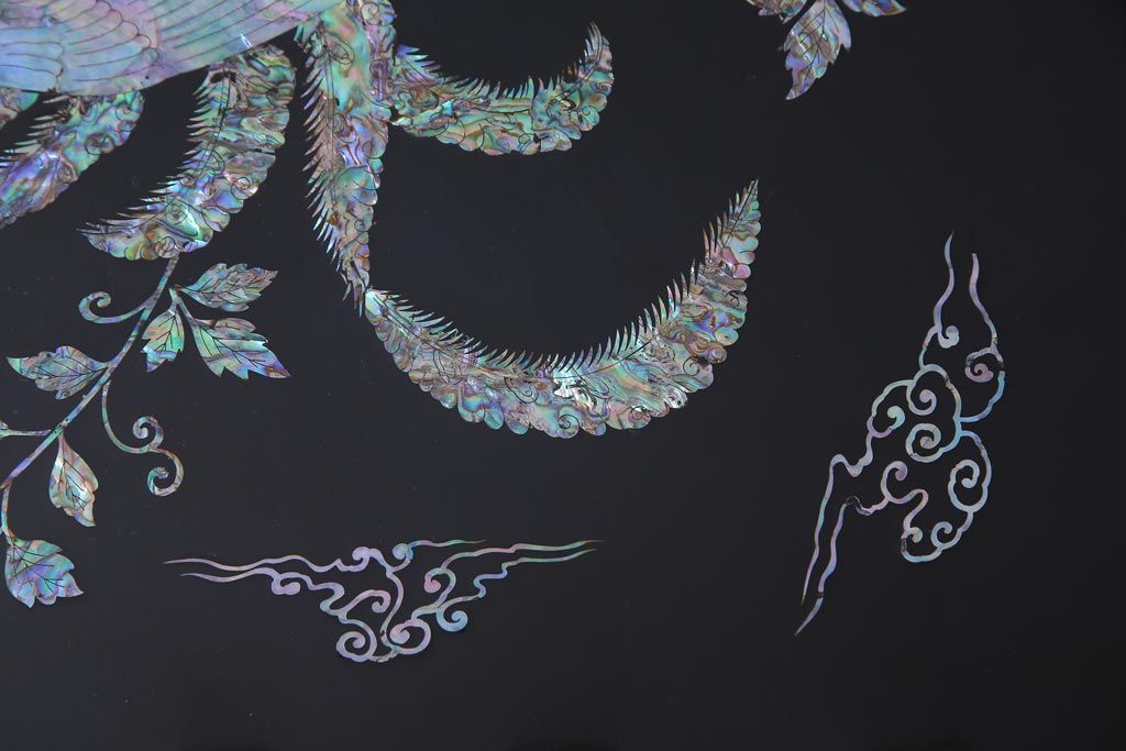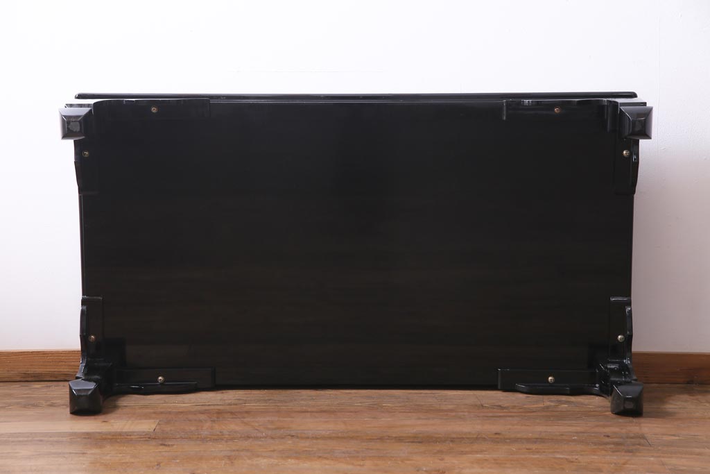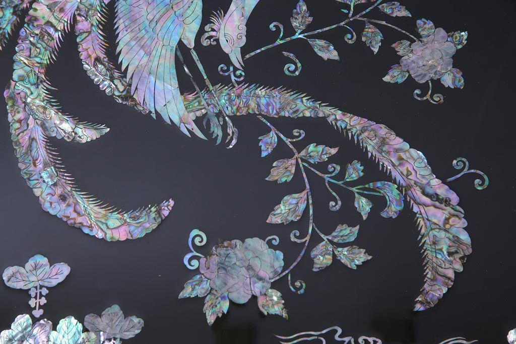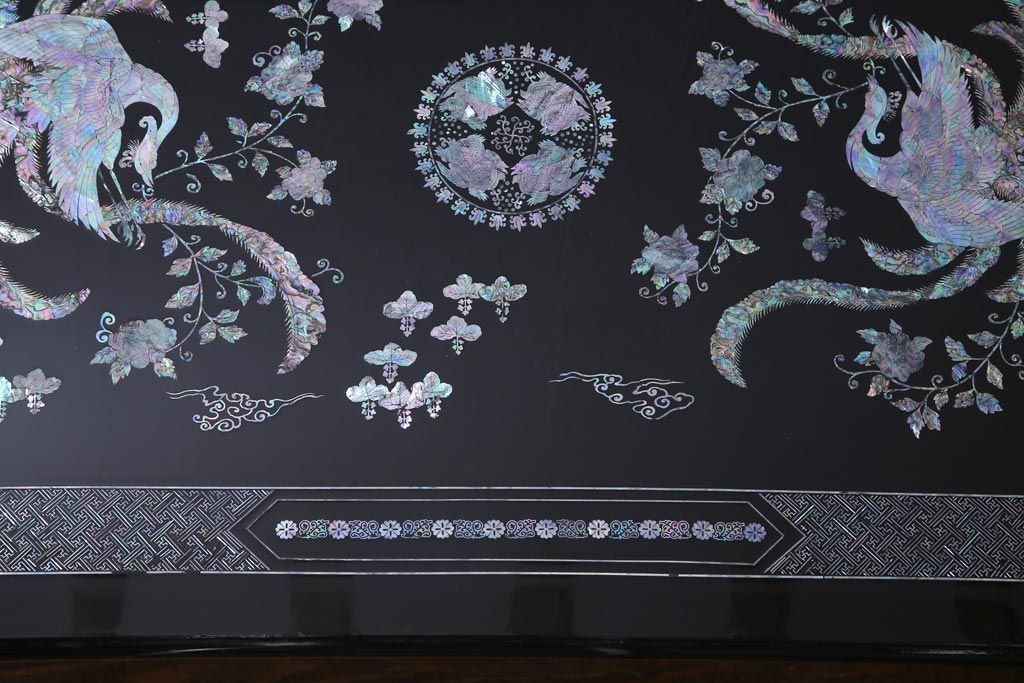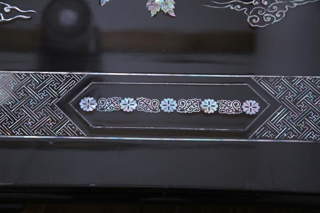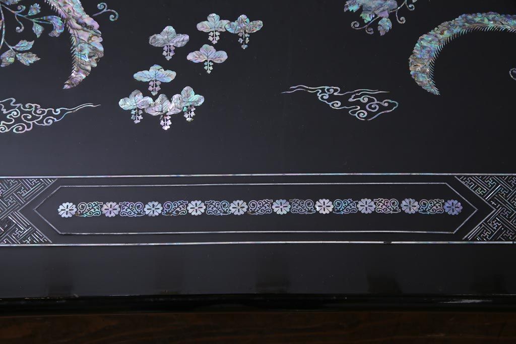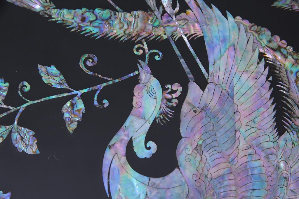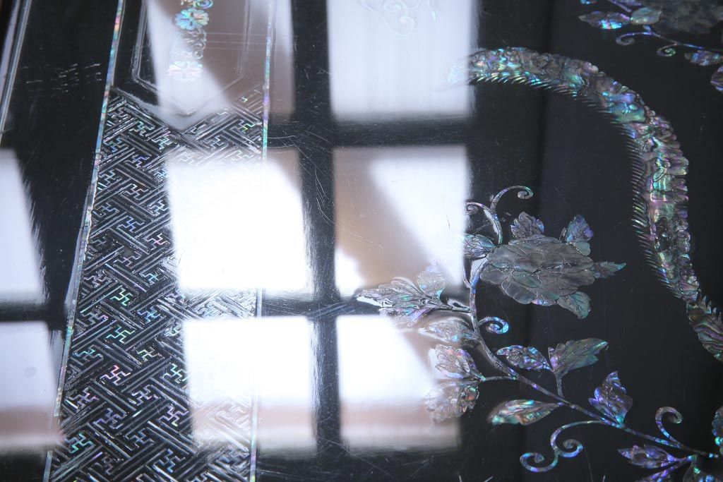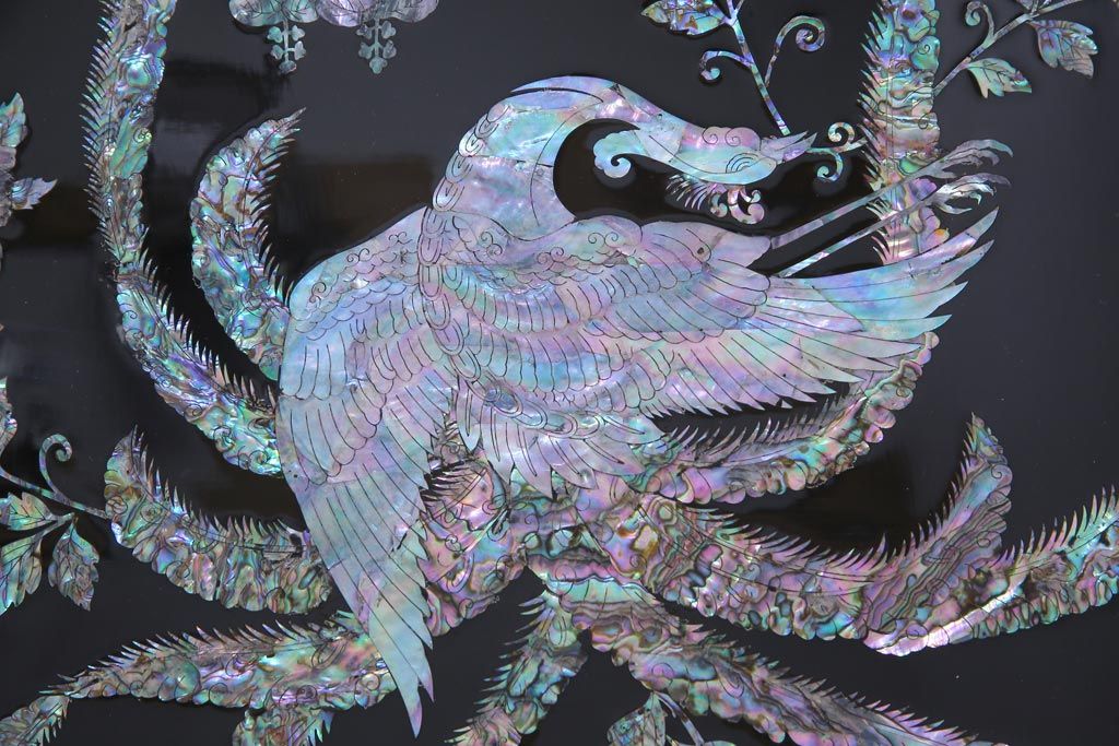 中古 民芸家具 ガラス天板付き 鳳凰 気品漂う螺鈿細工の座卓(ローテーブル)