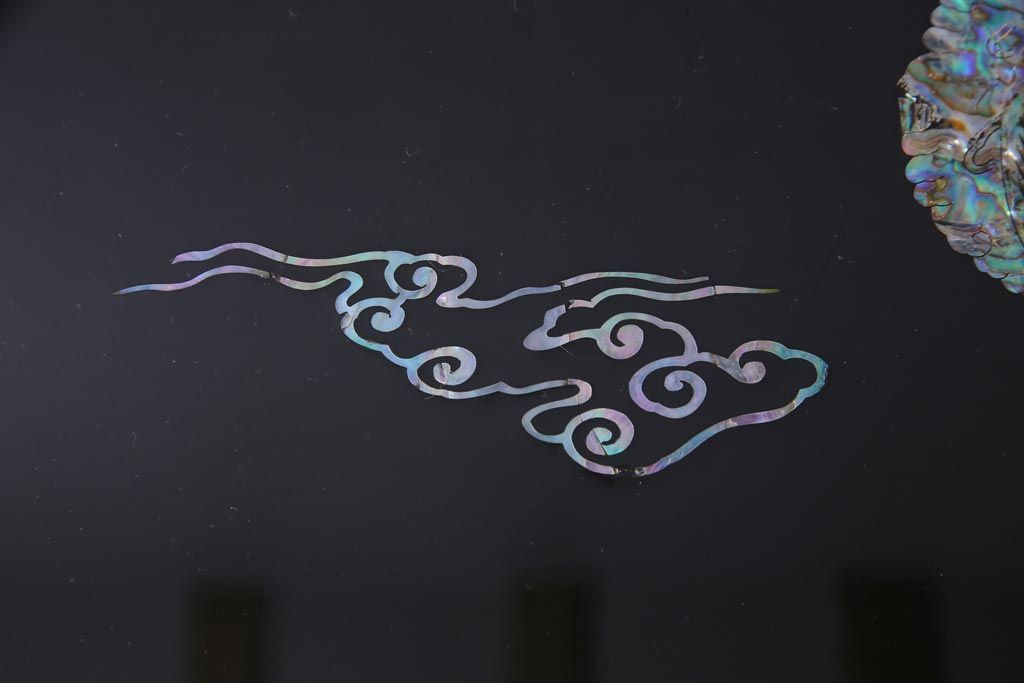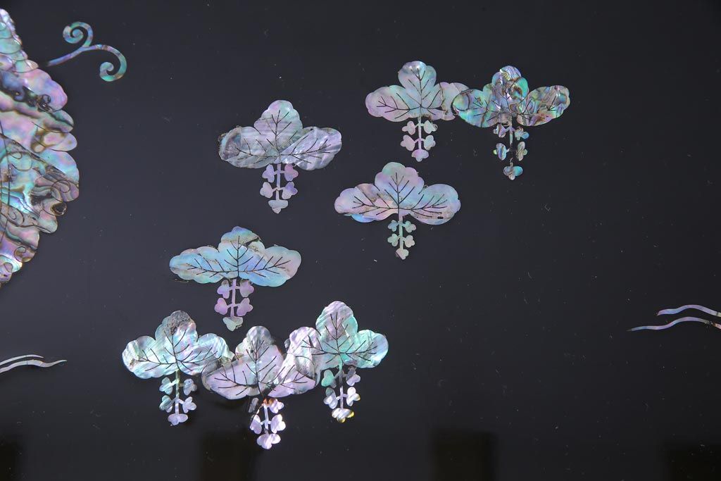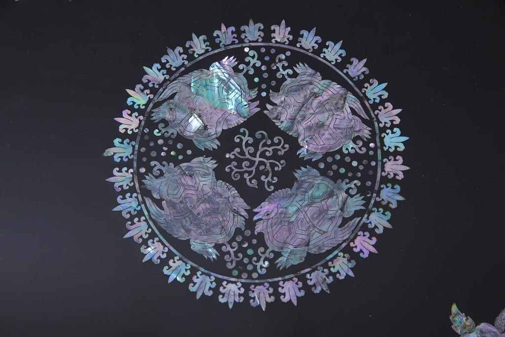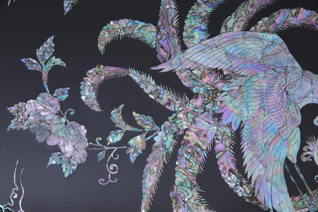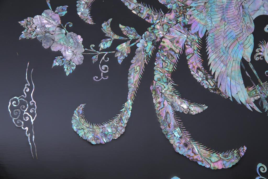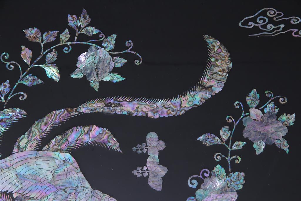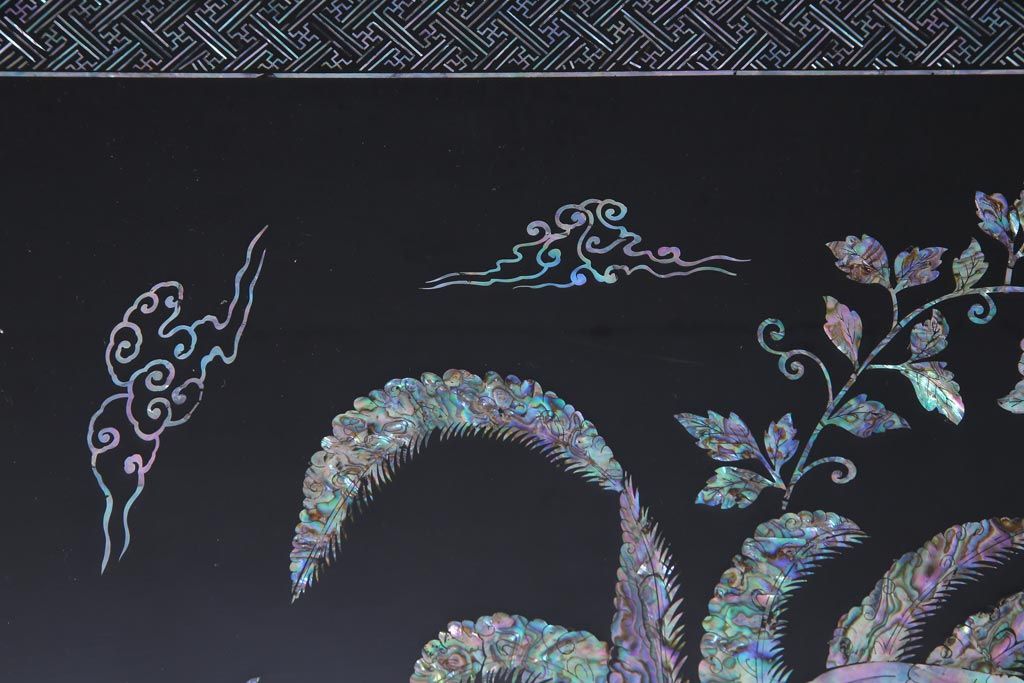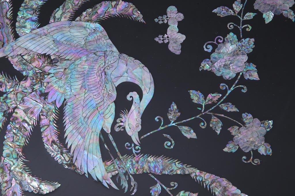 中古 民芸家具 ガラス天板付き 鳳凰 気品漂う螺鈿細工の座卓(ローテーブル)