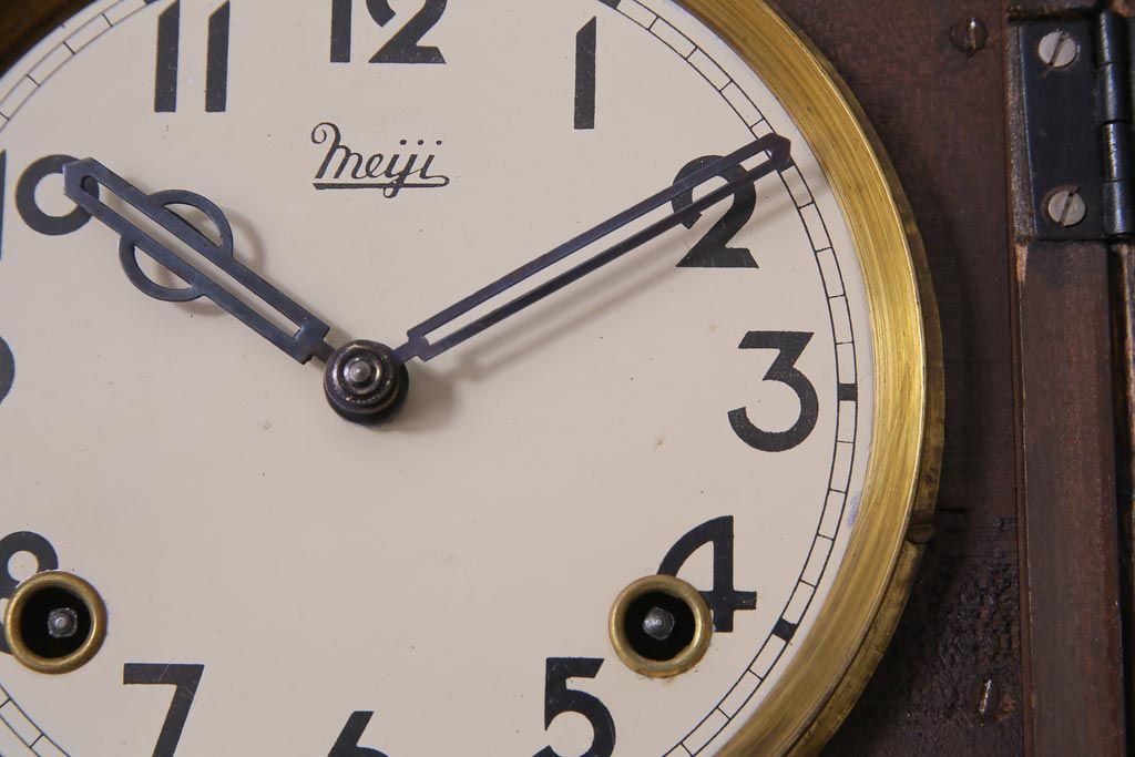 時計> 掛け時計 > アンティーク雑貨 昭和レトロ Meiji(明治時計社) 手巻き式 シックな雰囲気が漂う柱時計(振り子時計、掛け時計)