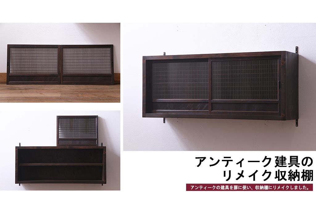 ラフジュ工房オリジナル 味わい深い建具をリメイクした壁掛け戸棚(ウォールシェルフ、収納棚)(1)