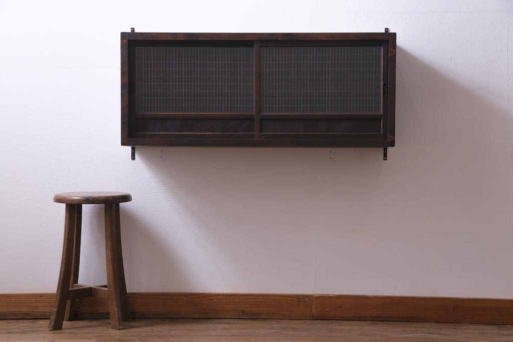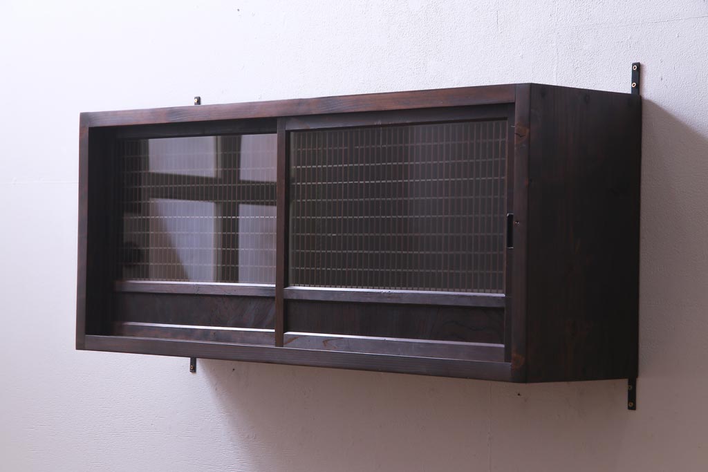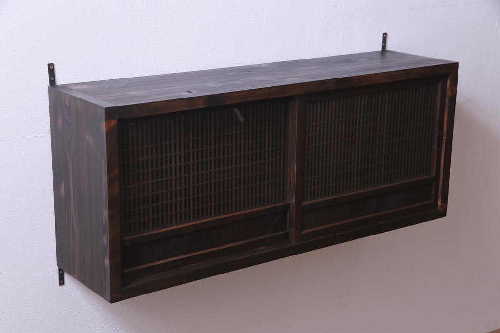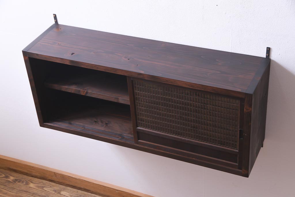 ラフジュ工房オリジナル 味わい深い建具をリメイクした壁掛け戸棚(ウォールシェルフ、収納棚)(1)です。