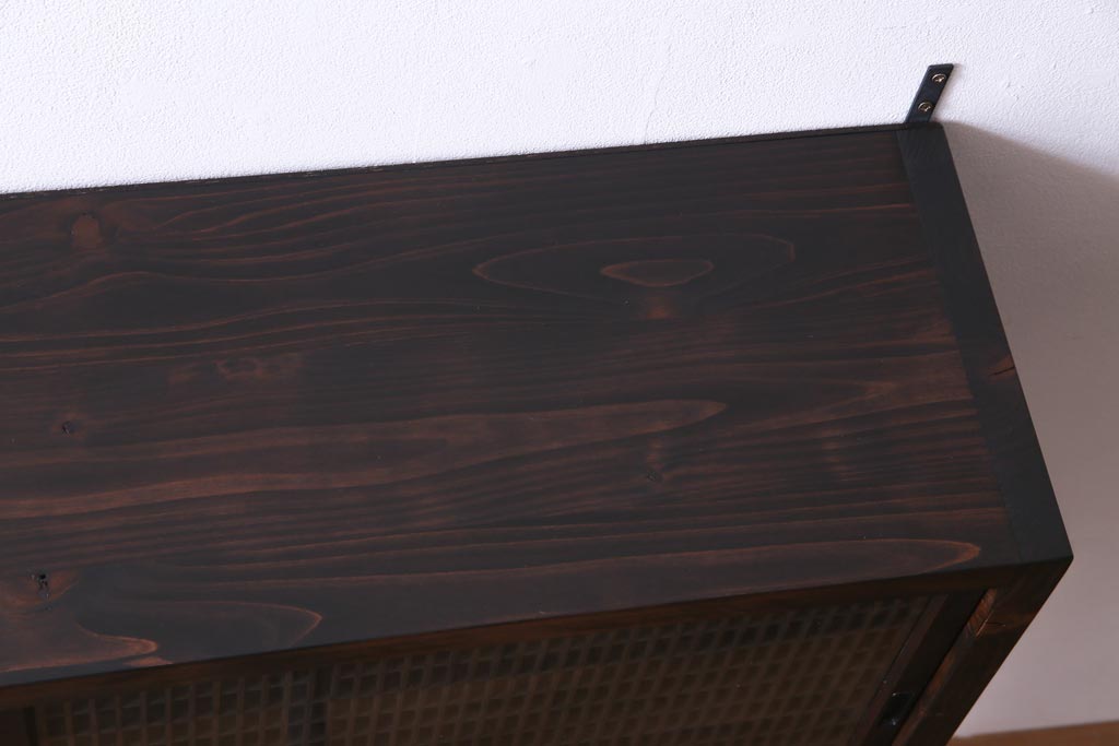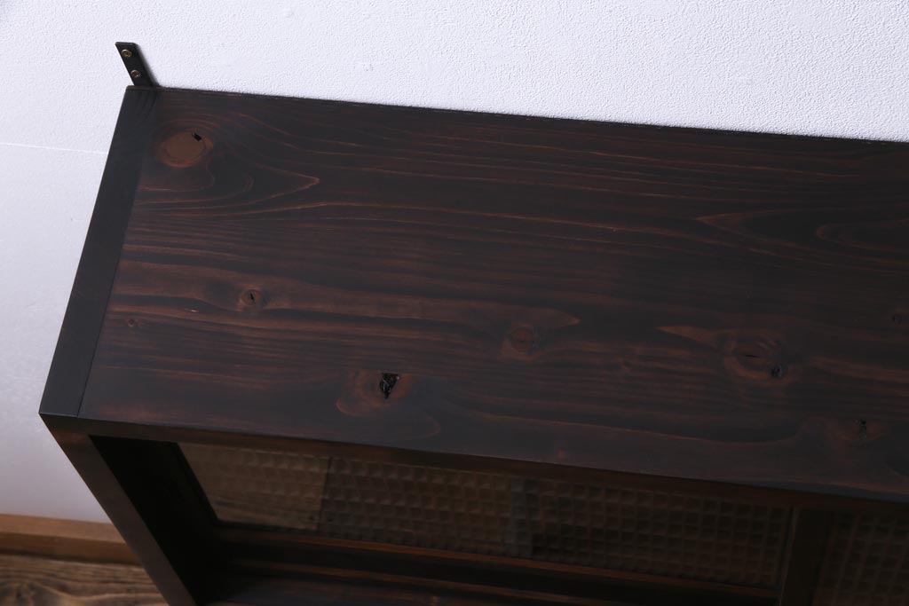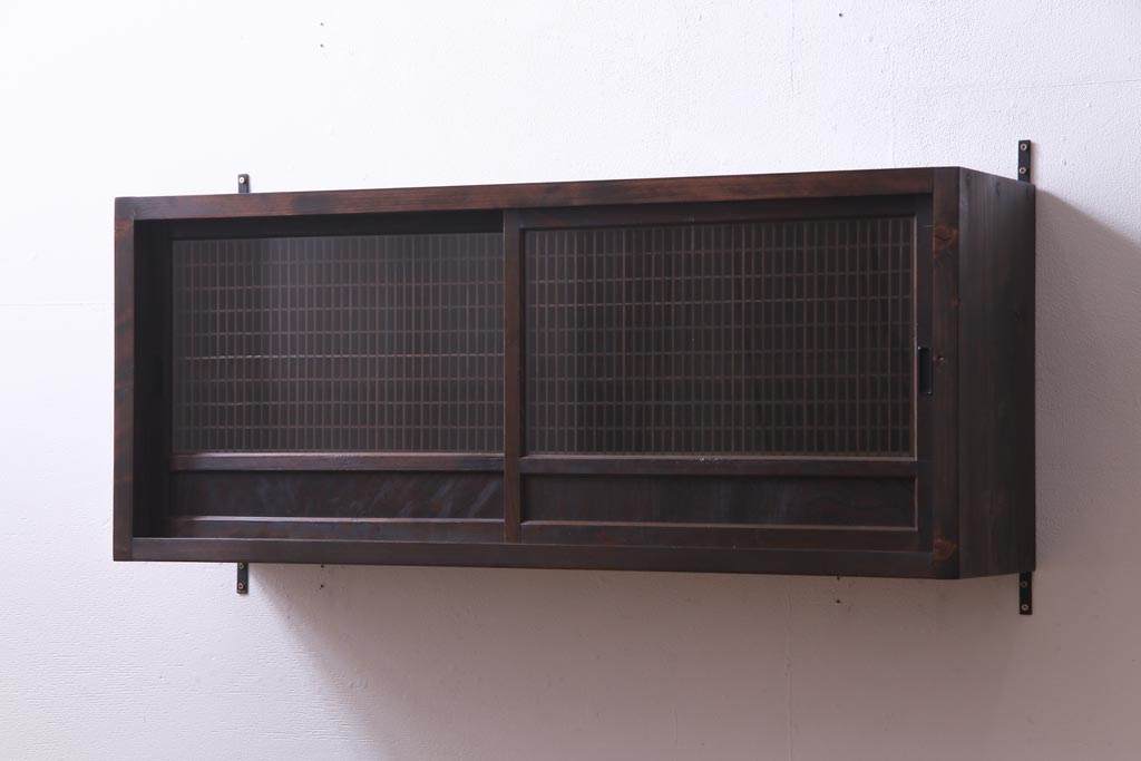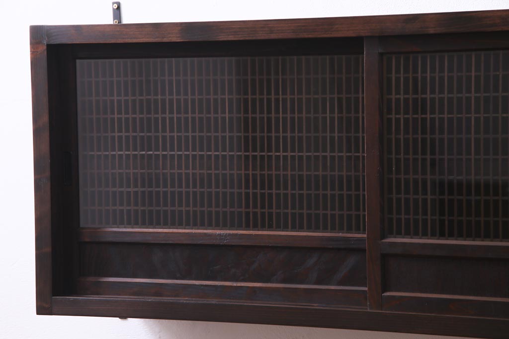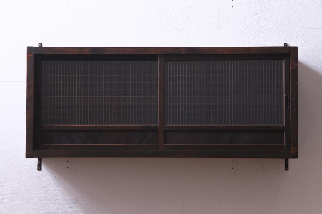 ラフジュ工房オリジナル 味わい深い建具をリメイクした壁掛け戸棚(ウォールシェルフ、収納棚)(1)です。