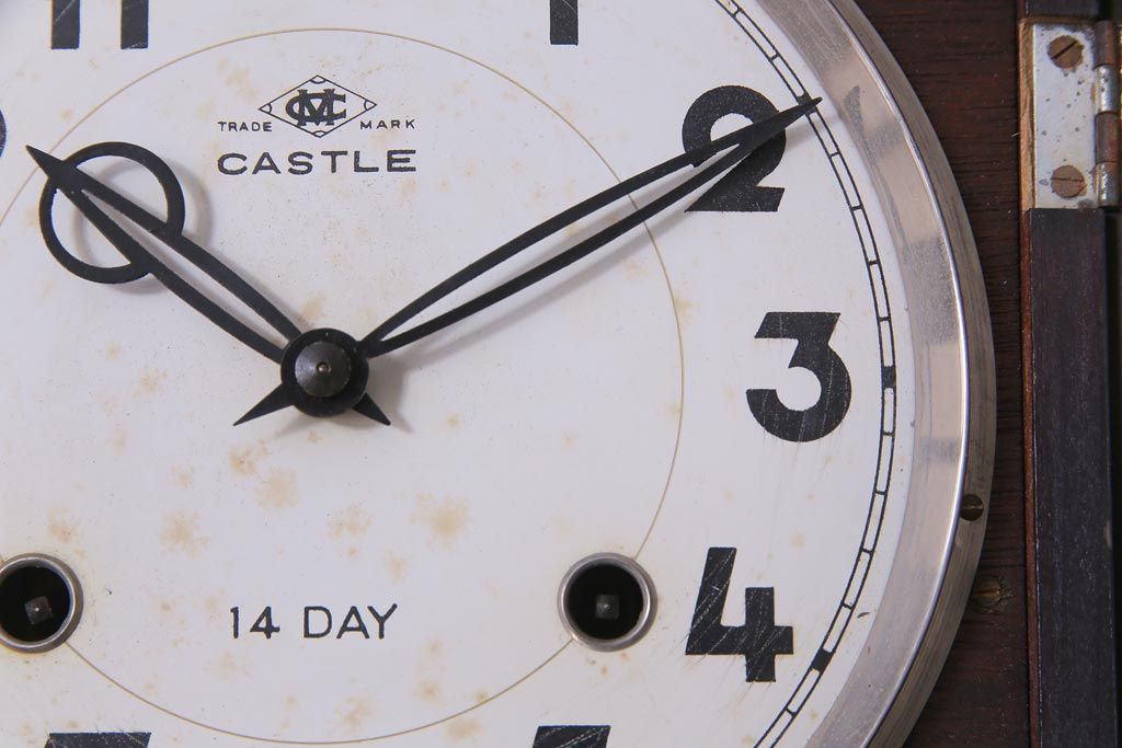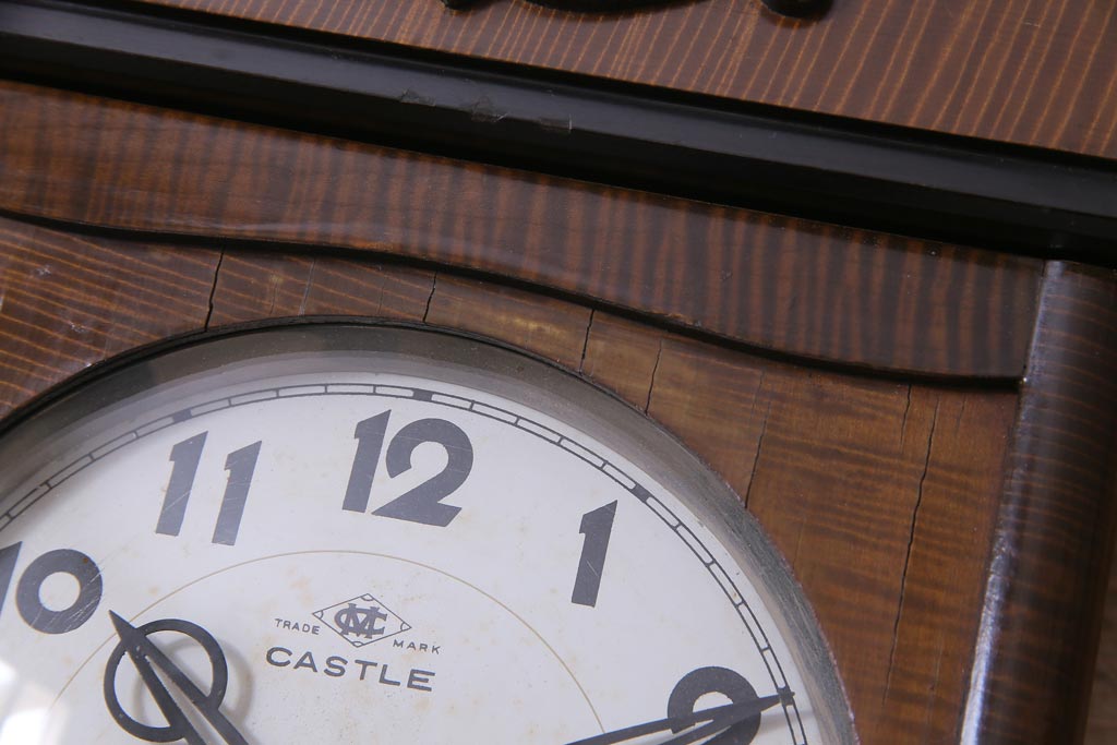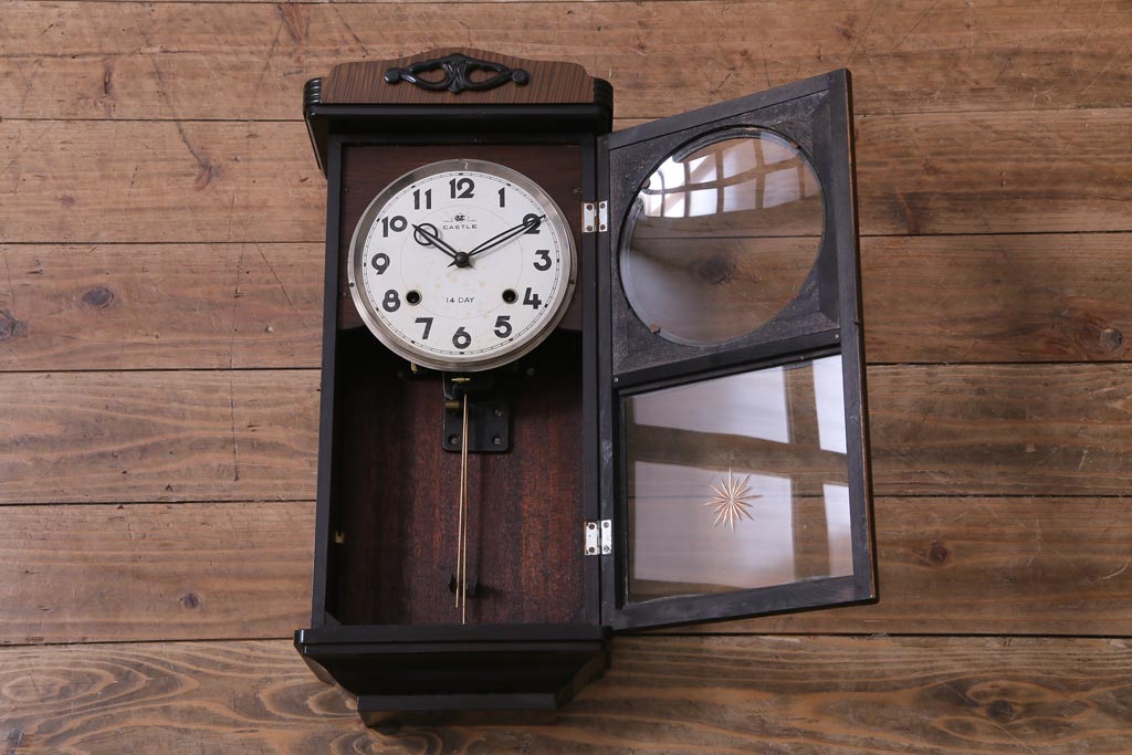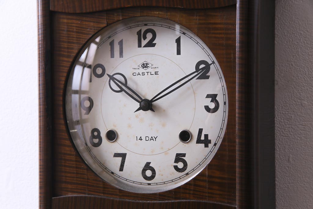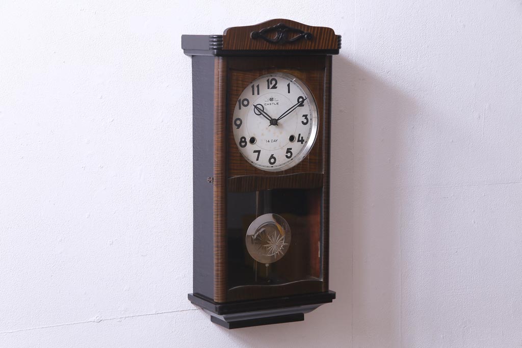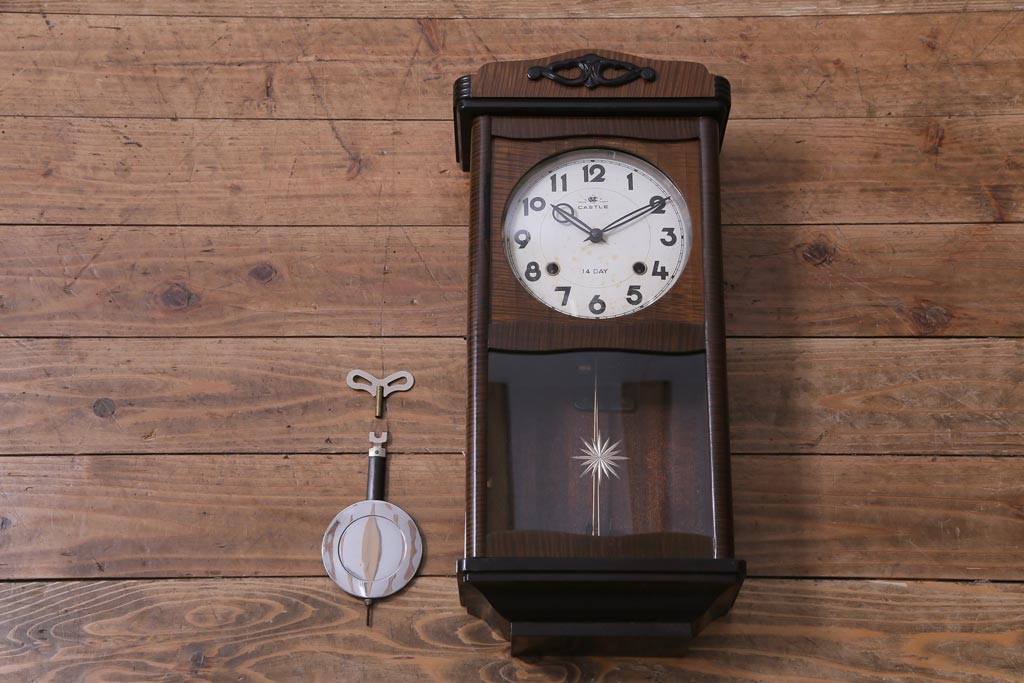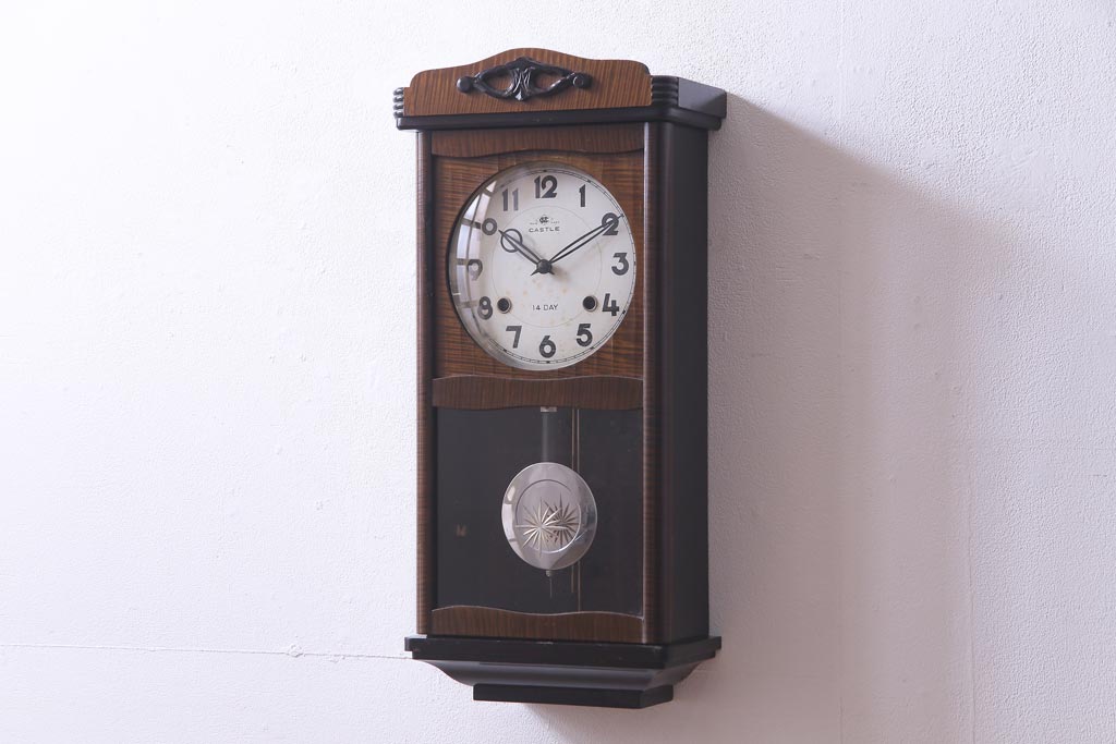 アンティーク雑貨 昭和レトロ Meiji(明治時計社) CASTLE 14DAY 手巻き式柱時計(振り子時計、掛け時計)
