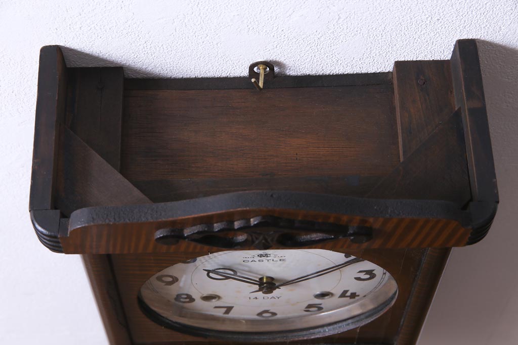 時計> 掛け時計 > アンティーク雑貨 昭和レトロ Meiji(明治時計社) CASTLE 14DAY 手巻き式柱時計(振り子時計、掛け時計)