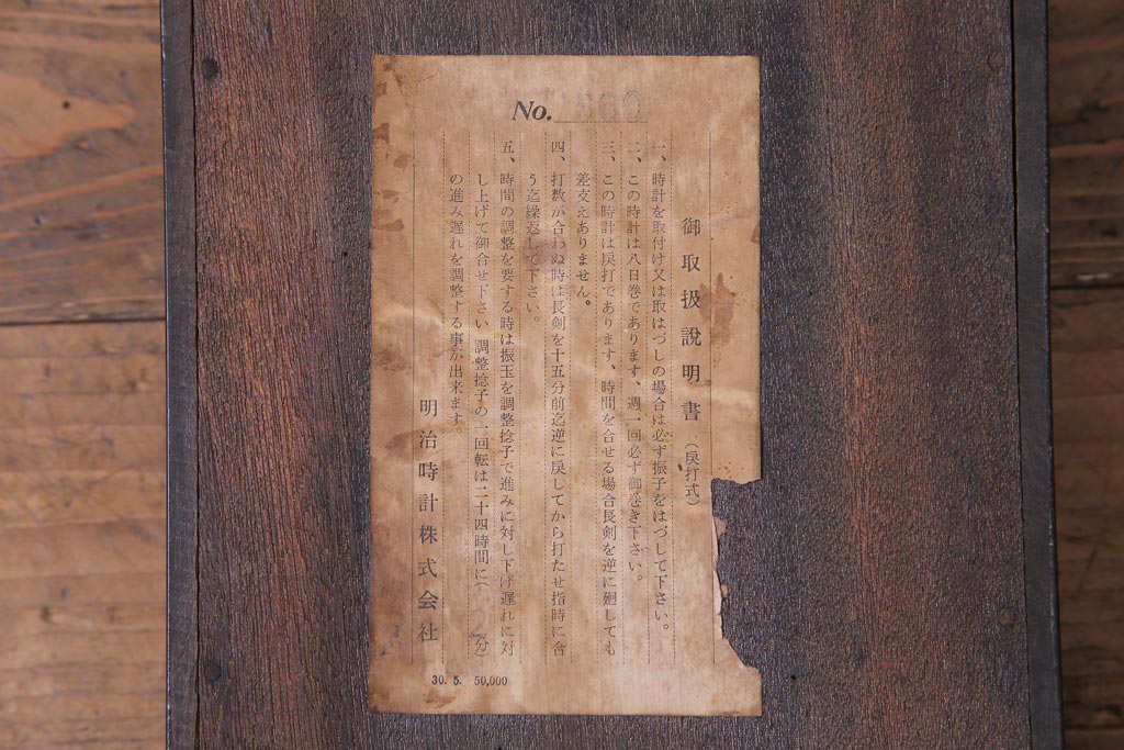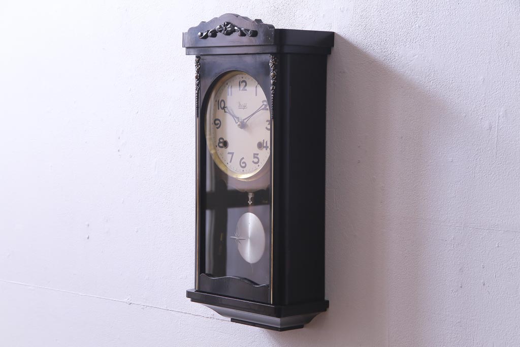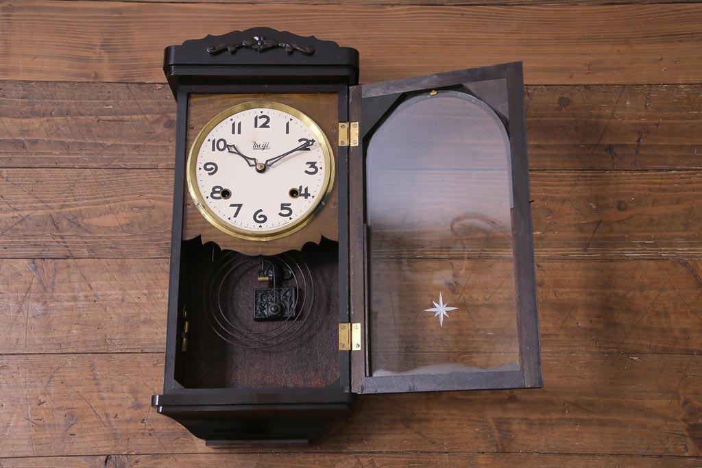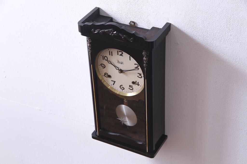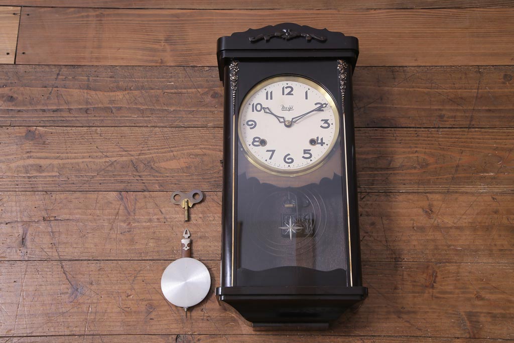 時計> 掛け時計 > アンティーク雑貨 昭和初期 meiji(明治時計社) 手巻き 気品のあるゼンマイ式振り子時計(柱時計、壁掛け時計)