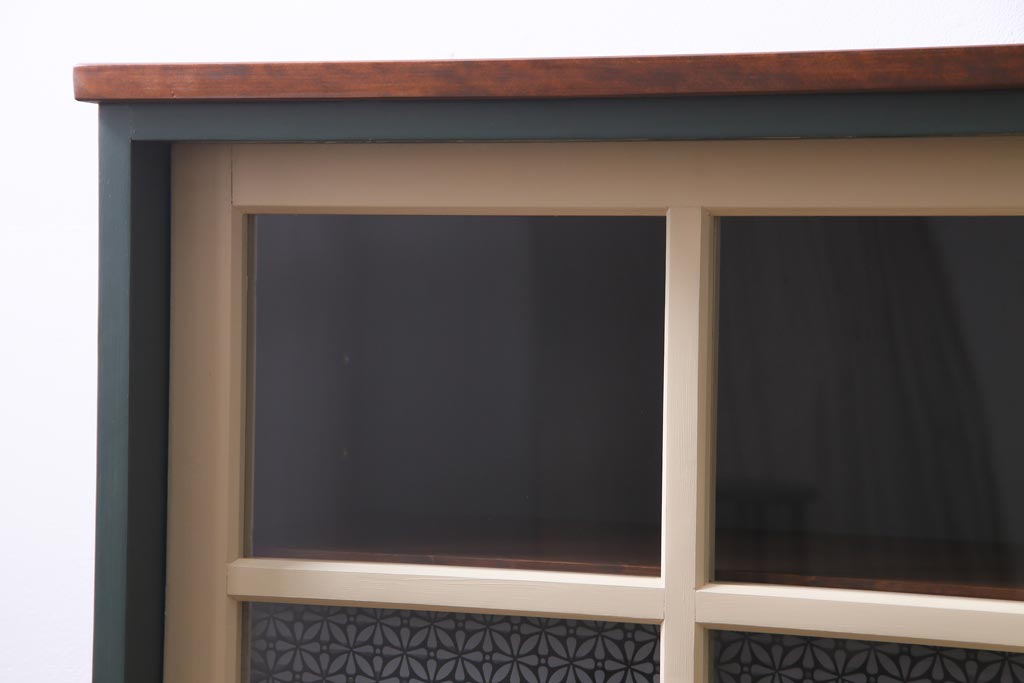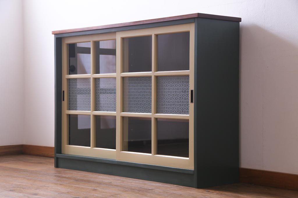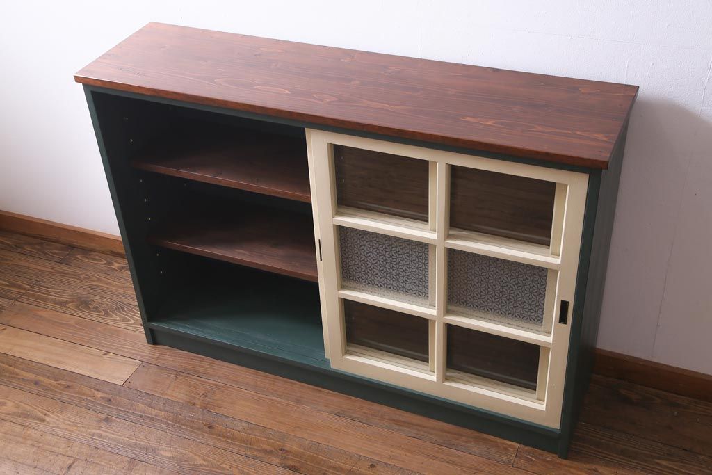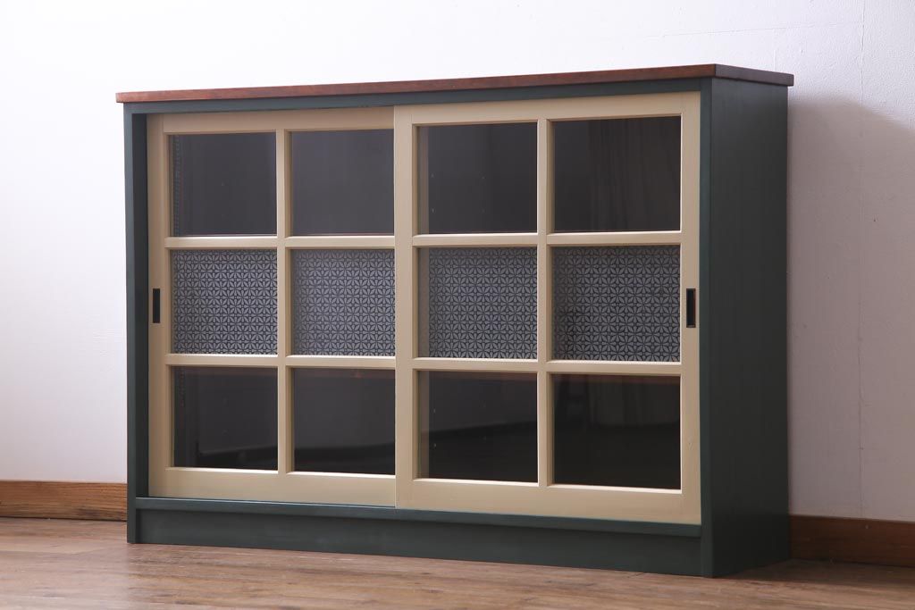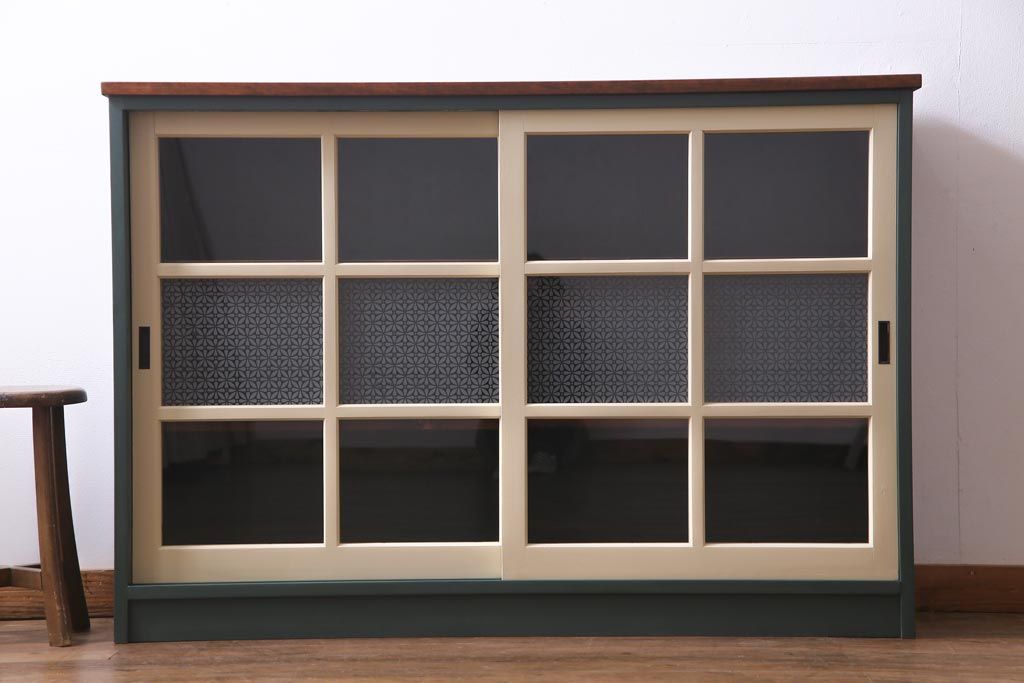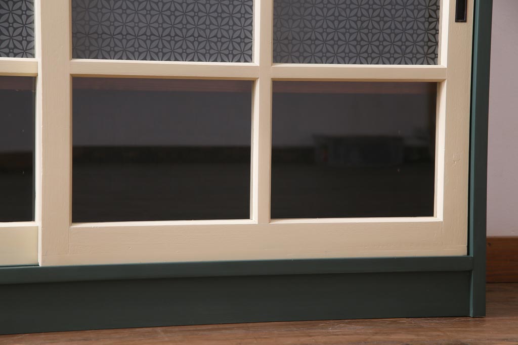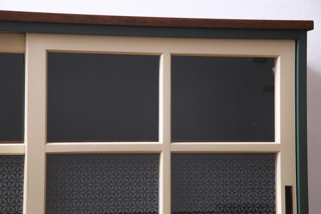 当店オリジナルガラス入り ペイント家具 古い建具をリメイクしたレトロな収納棚(戸棚、食器棚)