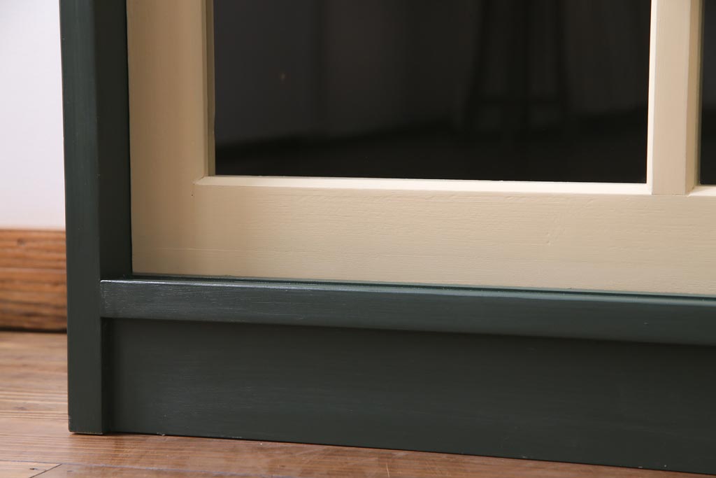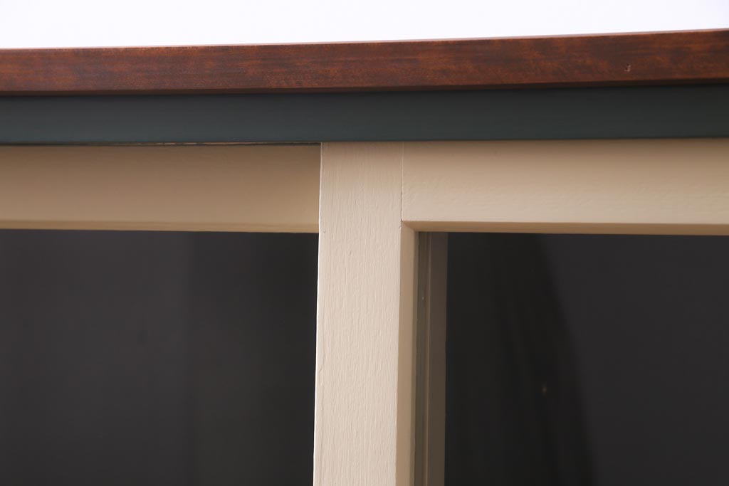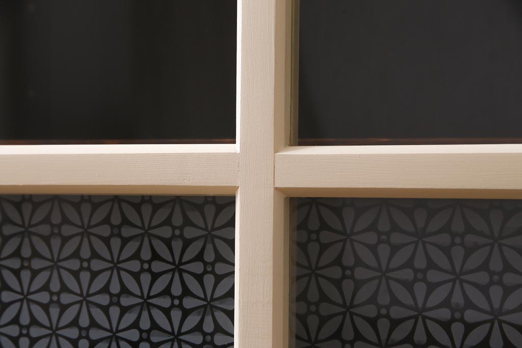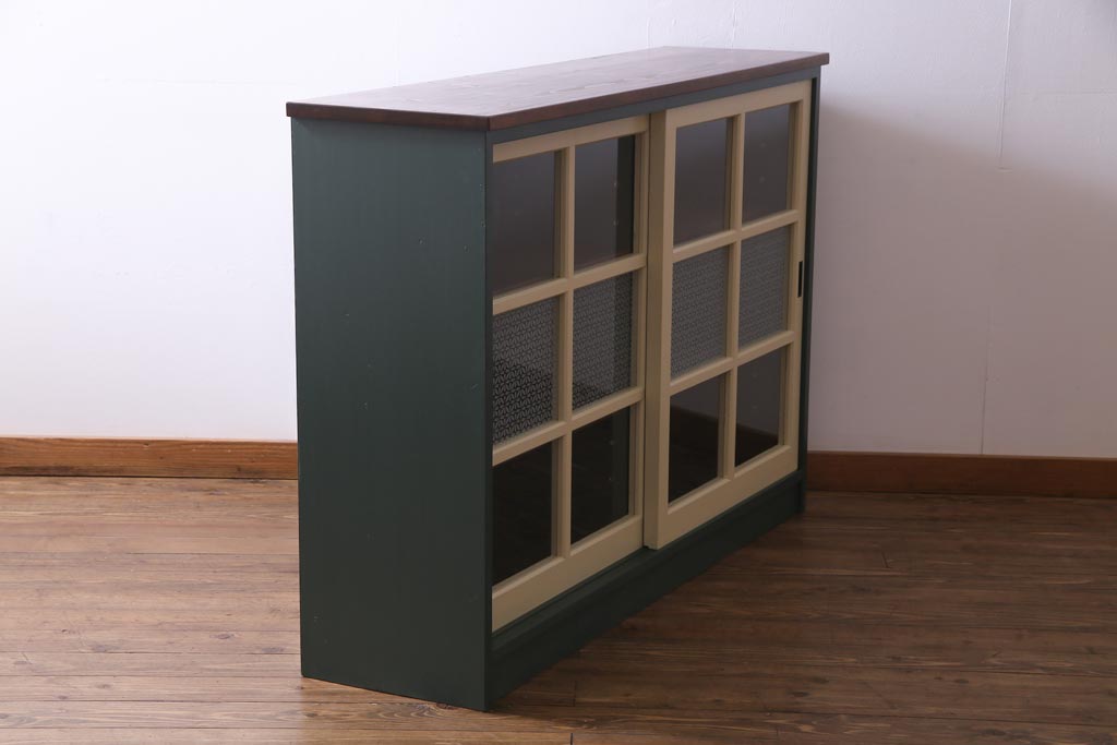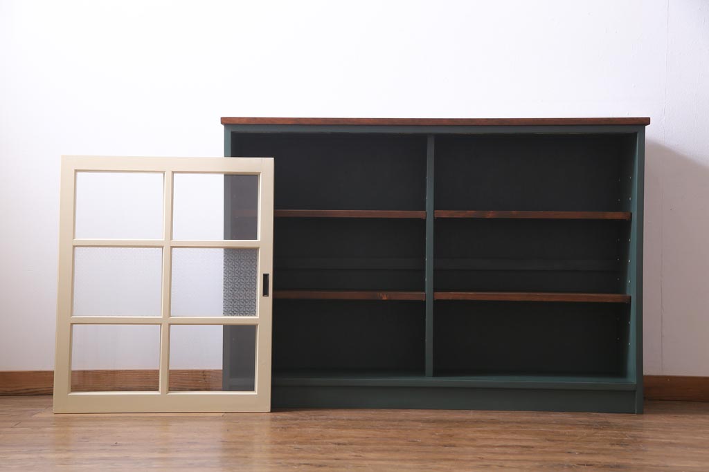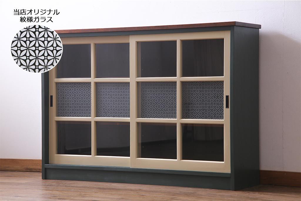 当店オリジナルガラス入り ペイント家具 古い建具をリメイクしたレトロな収納棚(戸棚、食器棚)