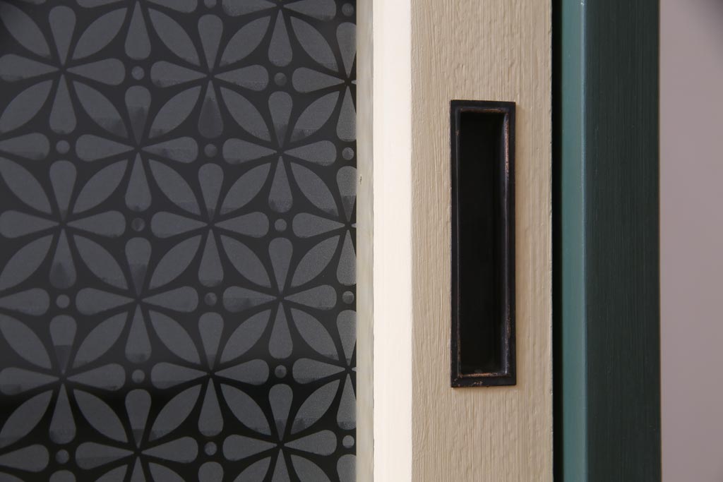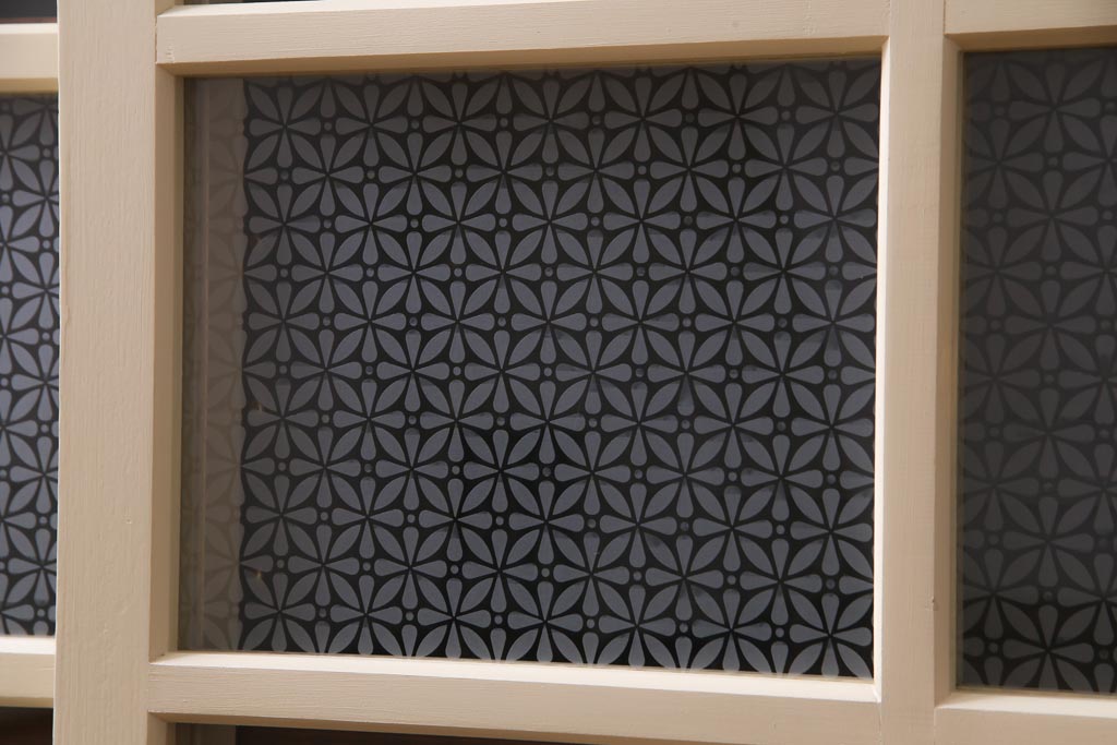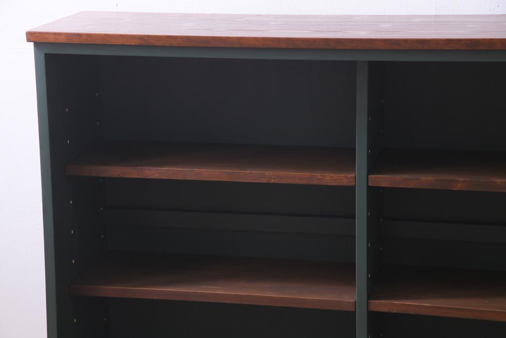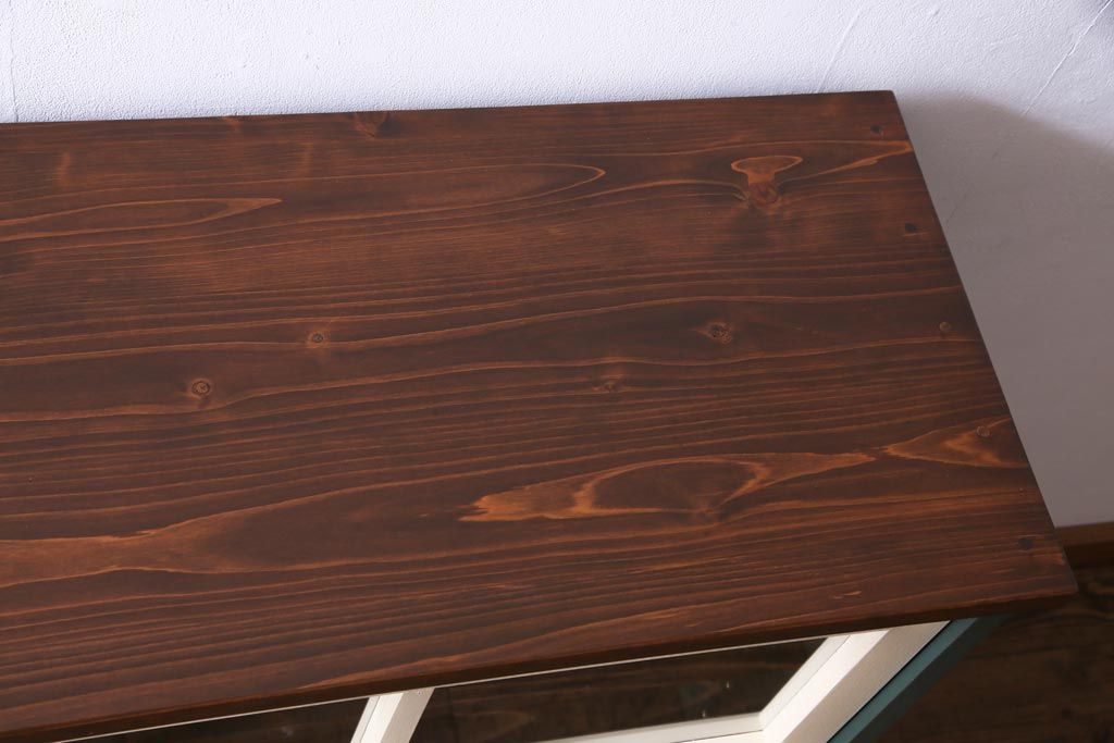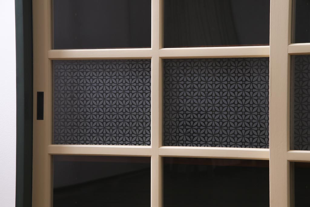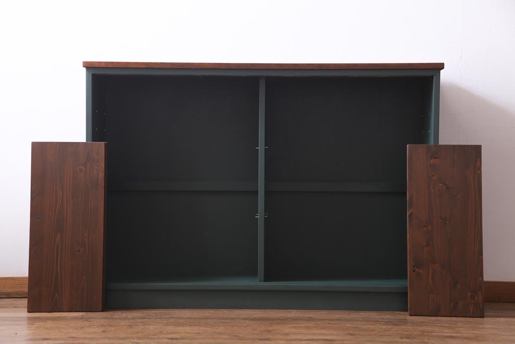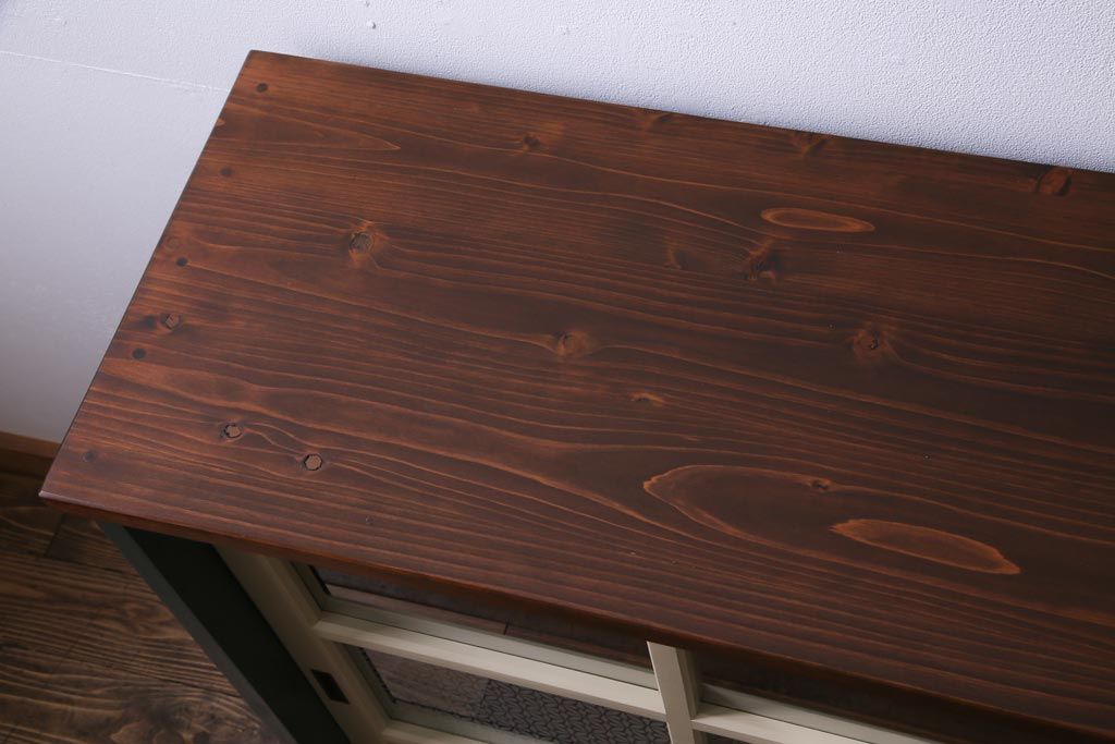 当店オリジナルガラス入り ペイント家具 古い建具をリメイクしたレトロな収納棚(戸棚、食器棚)