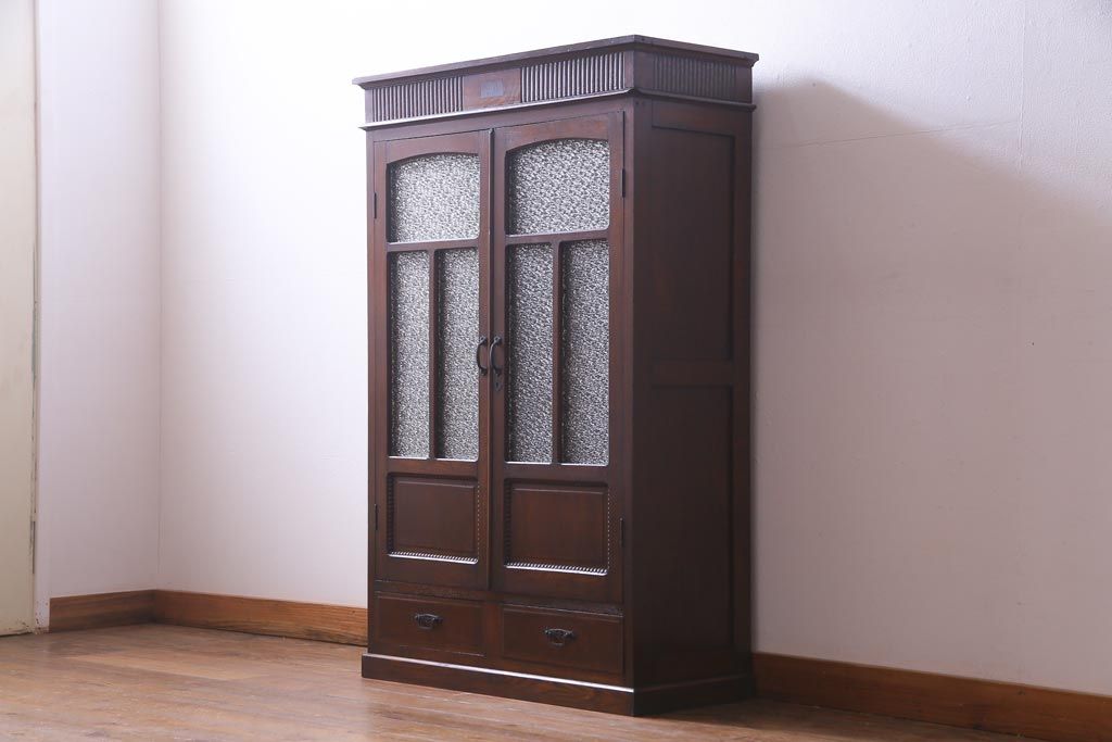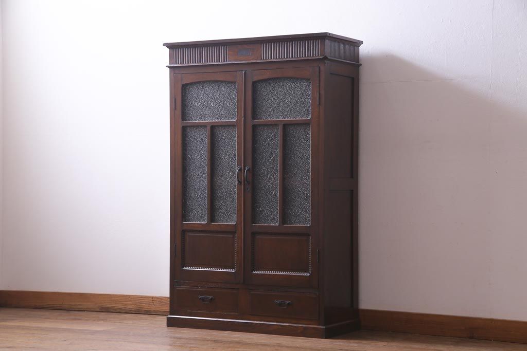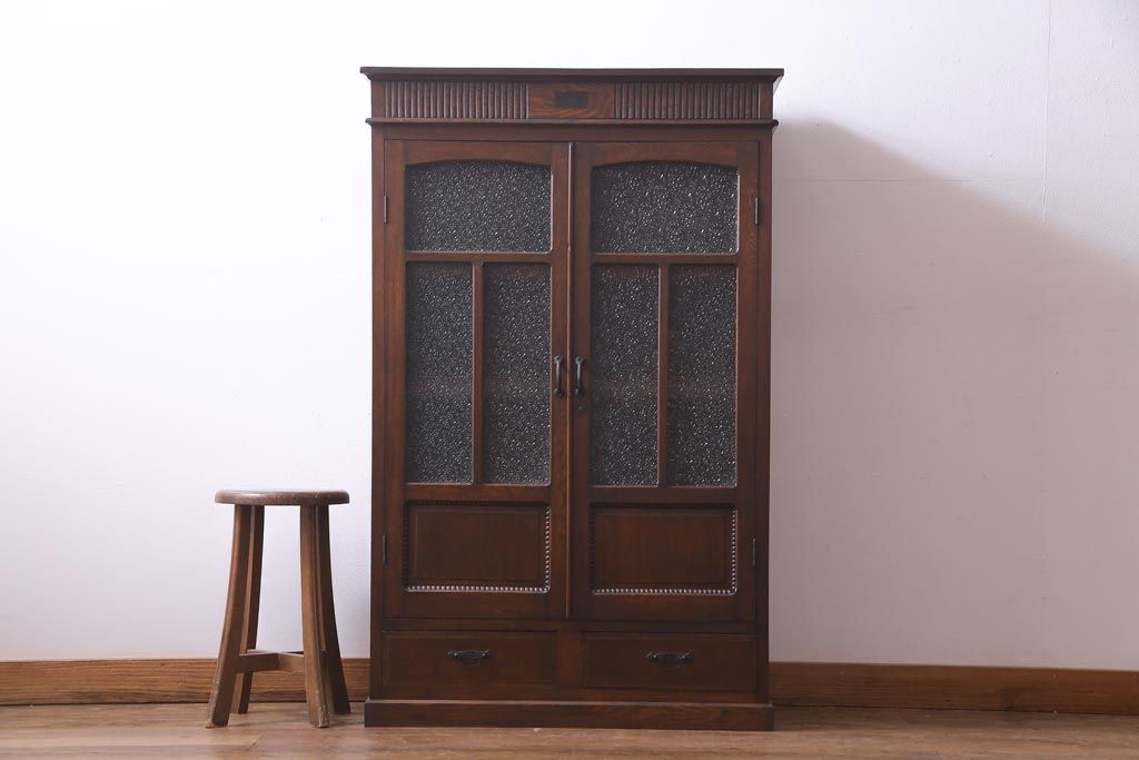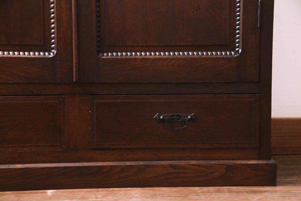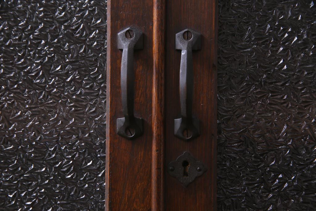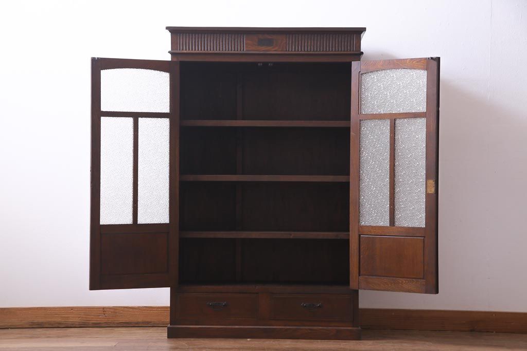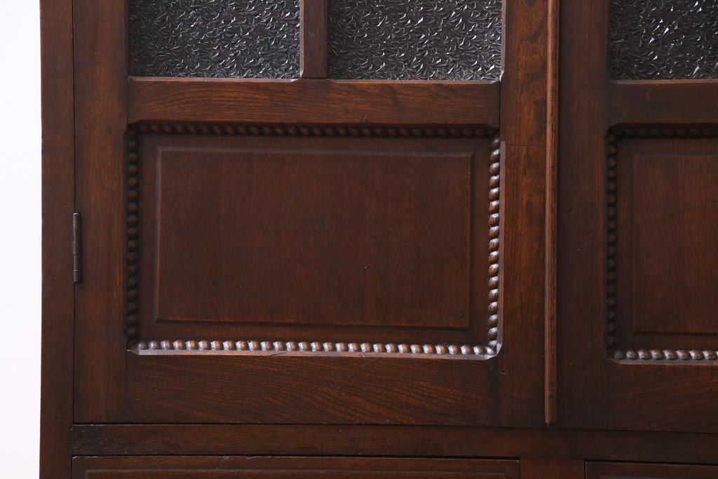 アンティーク家具 和製アンティーク ナラ材 象嵌と浮き彫りが魅力的な大正ロマン香る本箱(収納棚)