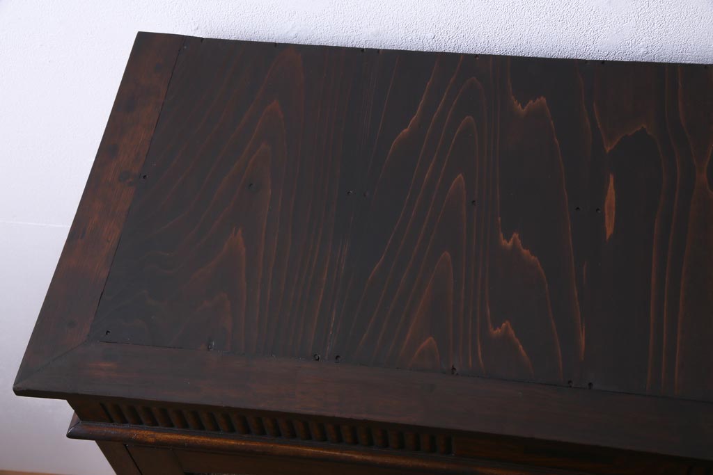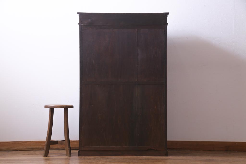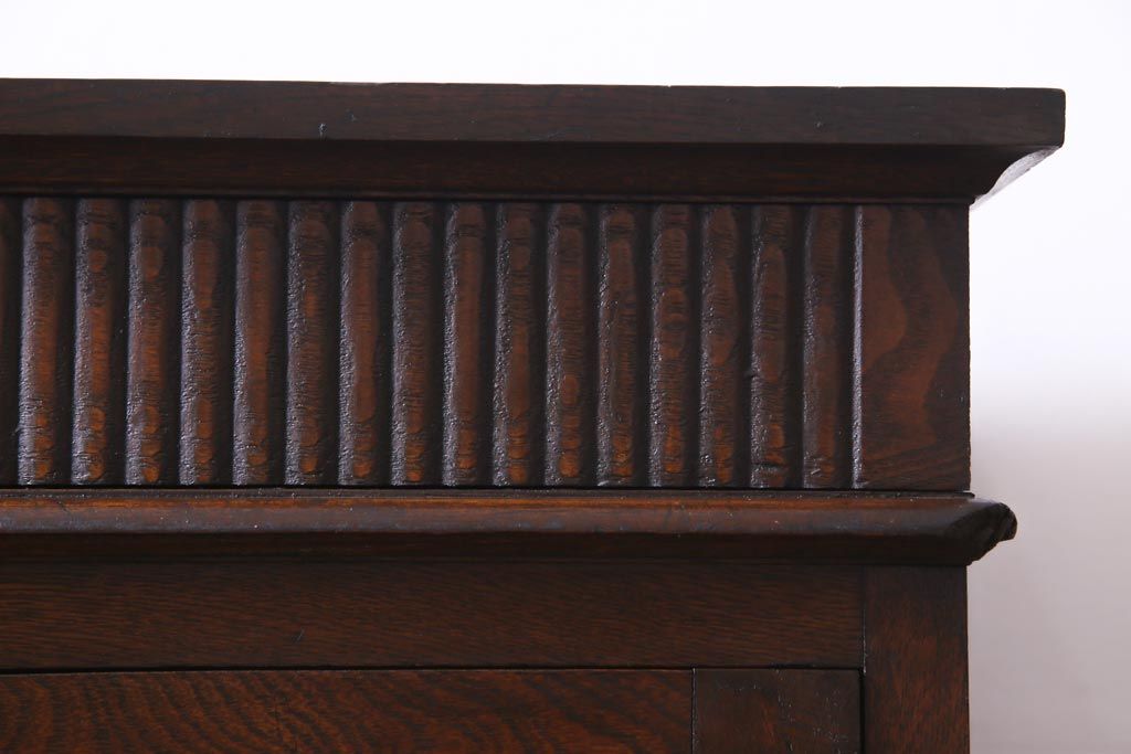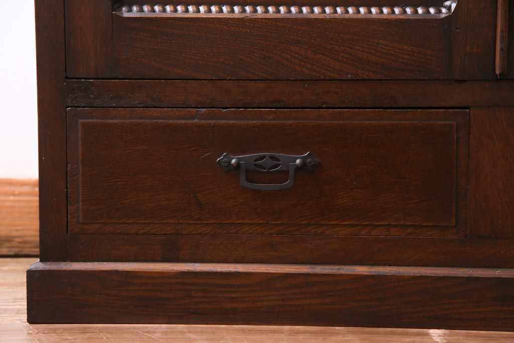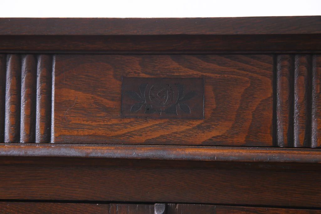 和製アンティーク ナラ材 象嵌と浮き彫りが魅力的な大正ロマン香る本箱(収納棚)です。