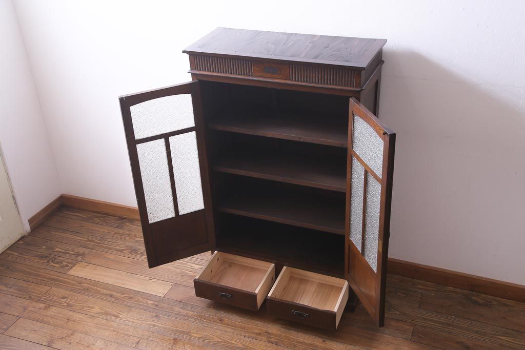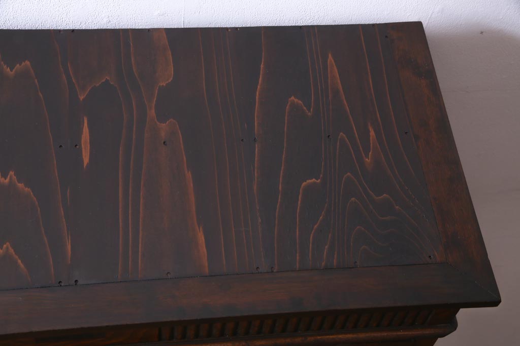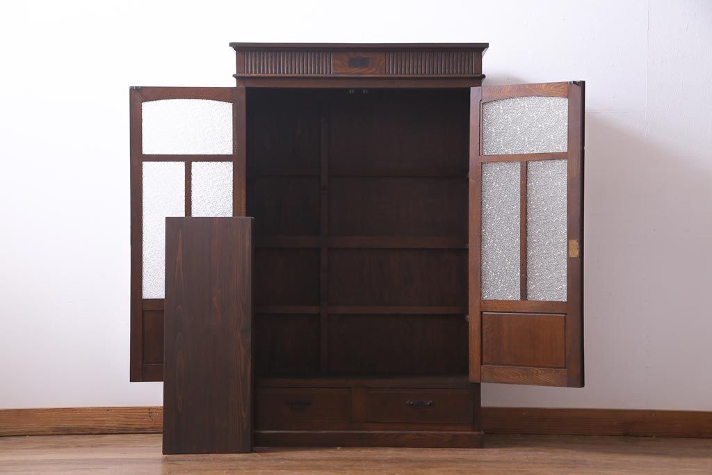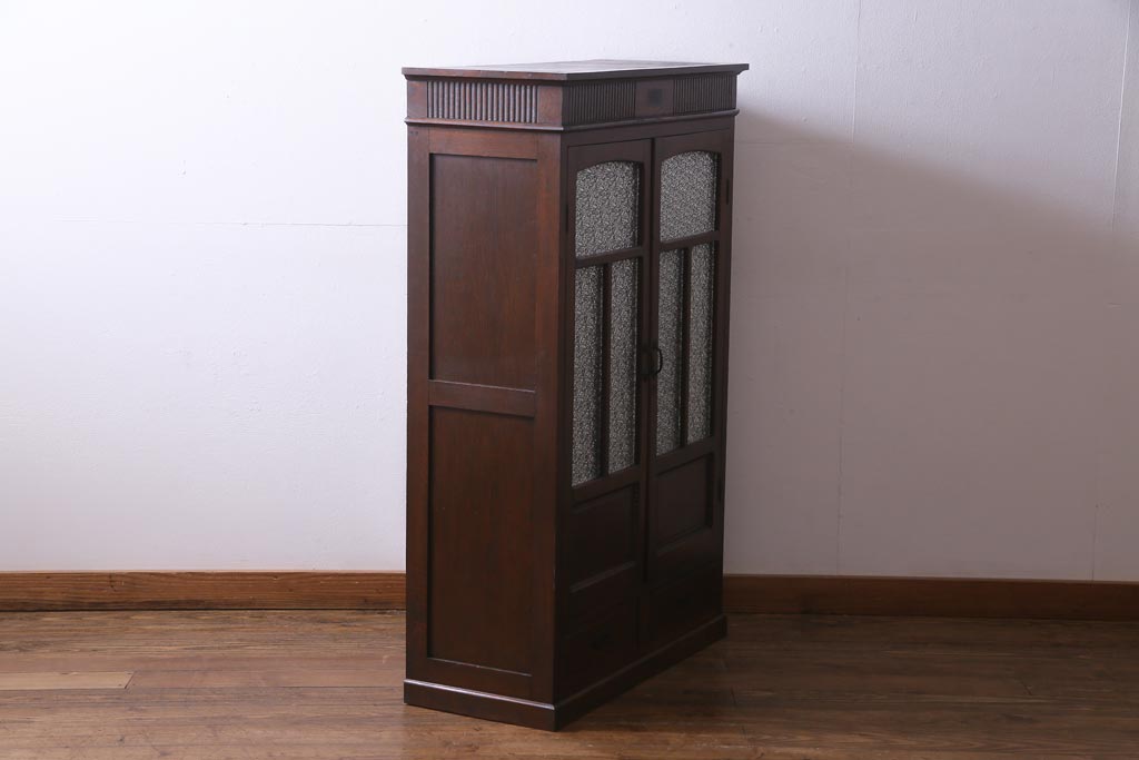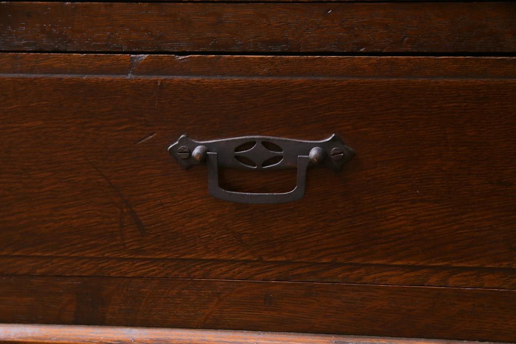 和製アンティーク ナラ材 象嵌と浮き彫りが魅力的な大正ロマン香る本箱(収納棚)です。