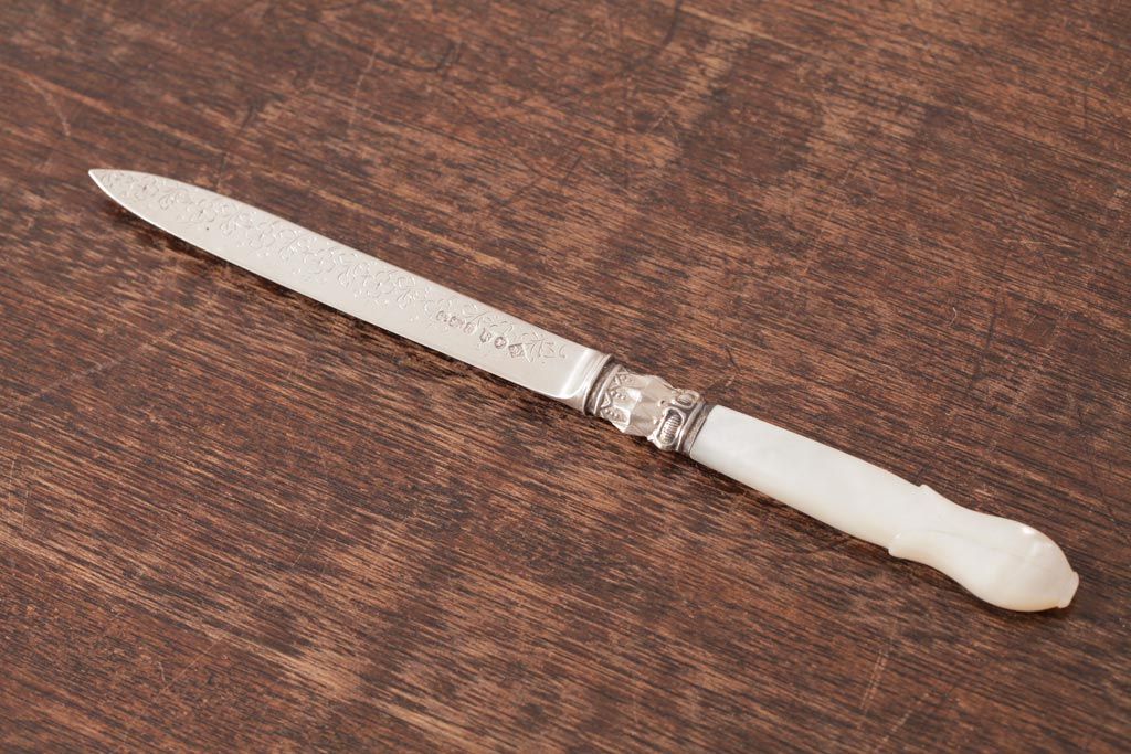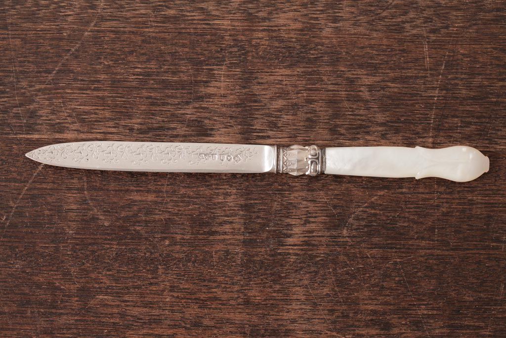 ラフジュ工房> 雑貨 > アンティーク雑貨 イギリスアンティーク Victorian(ヴィクトリアン) Sheffield(シェフィールド) 白蝶貝 スターリングシルバー(銀製) ペーパーナイフ(レターオープナー)