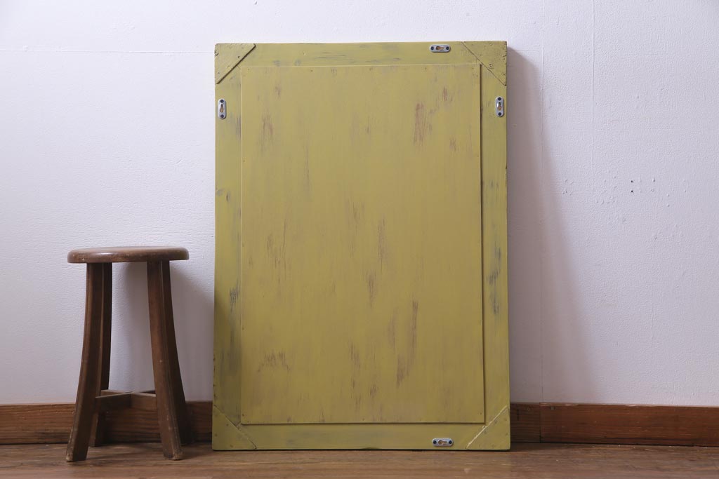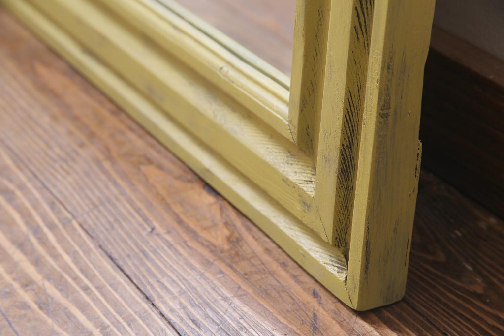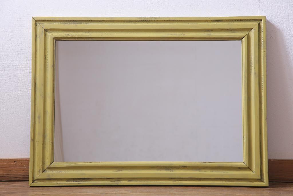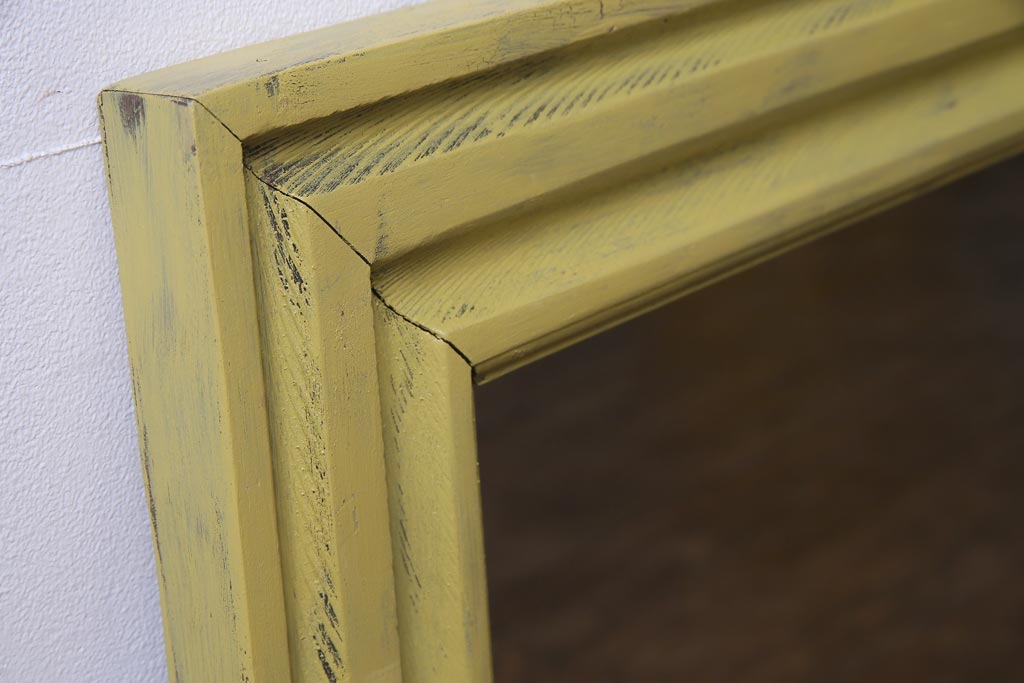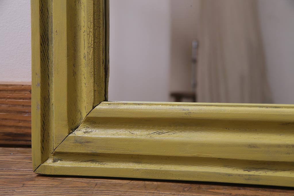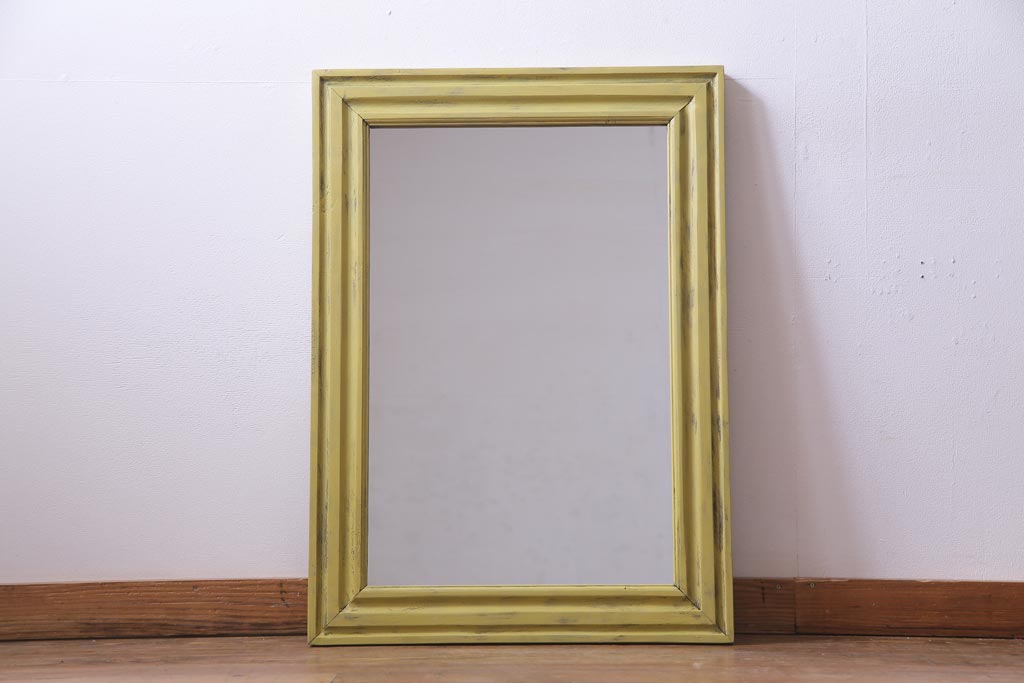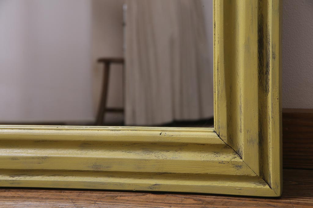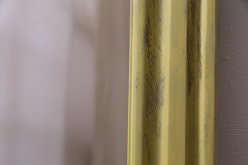 アンティーク雑貨 ラフジュ工房オリジナル ペイント 落ち着いたイエローが空間のアクセントになるウォールミラー(鏡、姿見、壁掛け鏡)(R-034003)