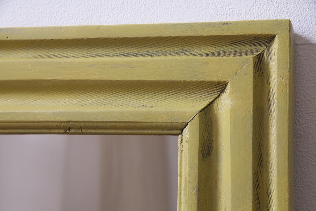 鏡> 壁掛け鏡 > アンティーク雑貨 ラフジュ工房オリジナル ペイント 落ち着いたイエローが空間のアクセントになるウォールミラー(鏡、姿見、壁掛け鏡)(R-034003)