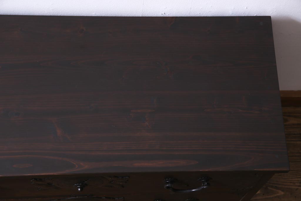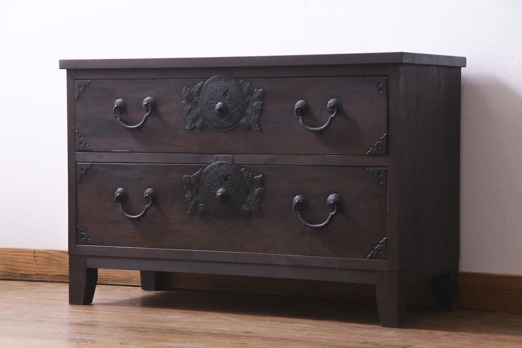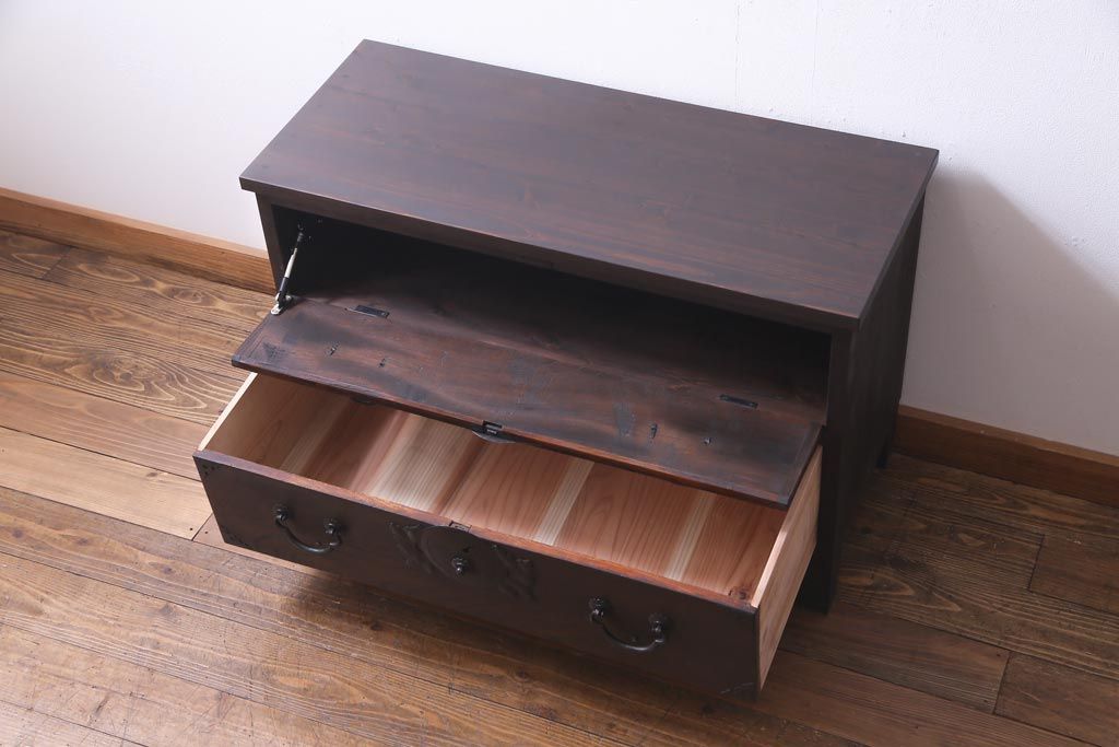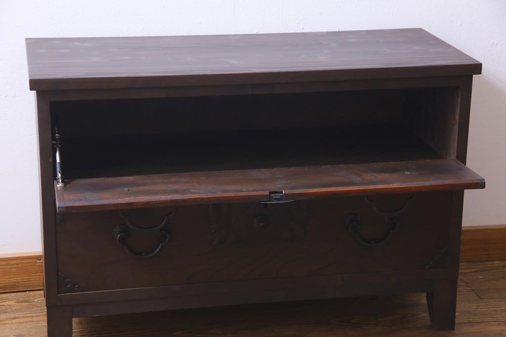和製アンティーク 下開き扉のリメイク仙台箪笥ローボード(和タンス、テレビボード、収納棚)です。