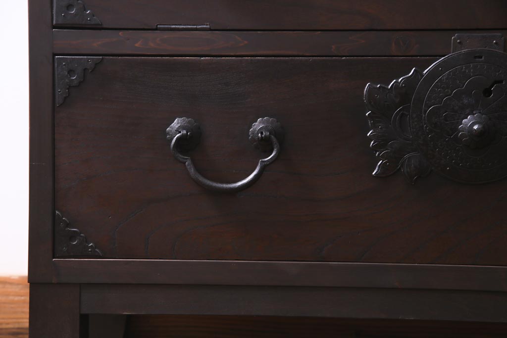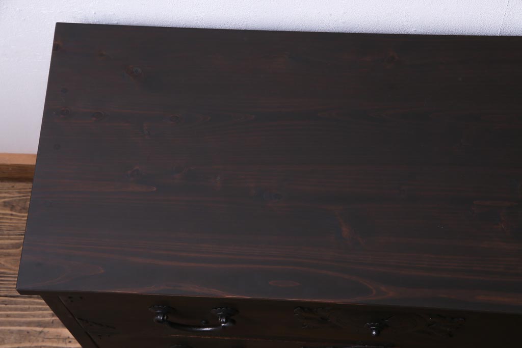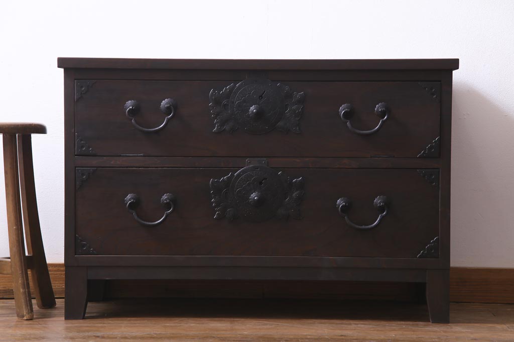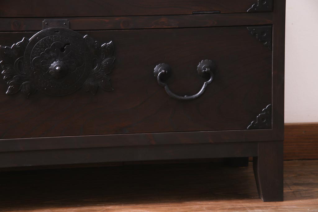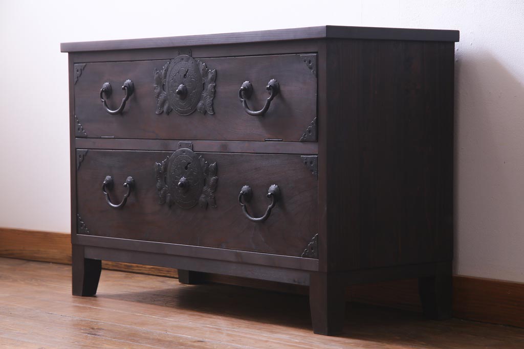 和製アンティーク 下開き扉のリメイク仙台箪笥ローボード(和タンス、テレビボード、収納棚)です。