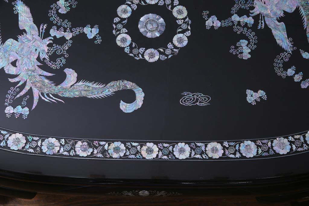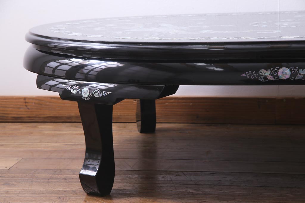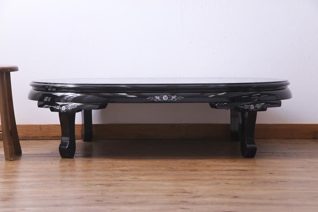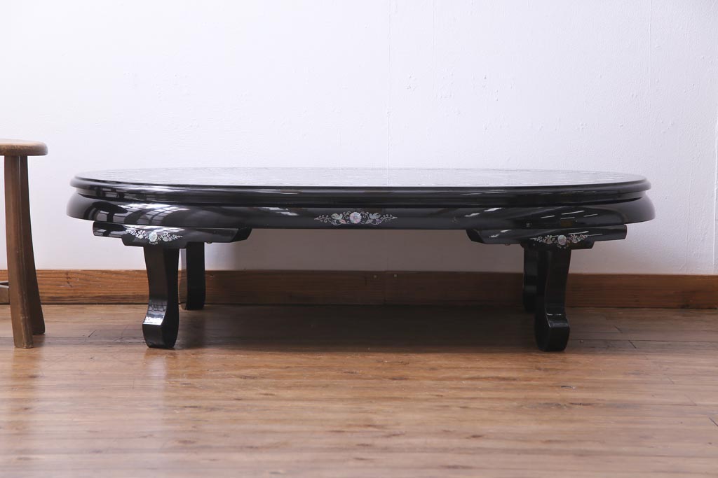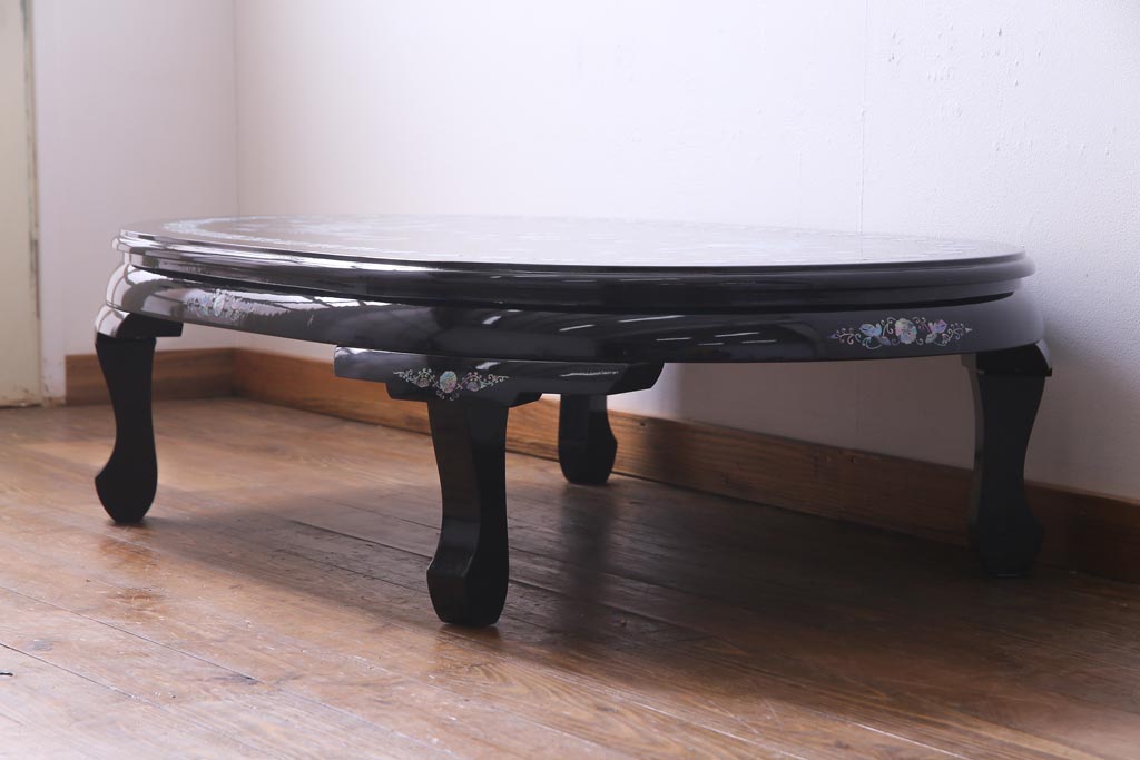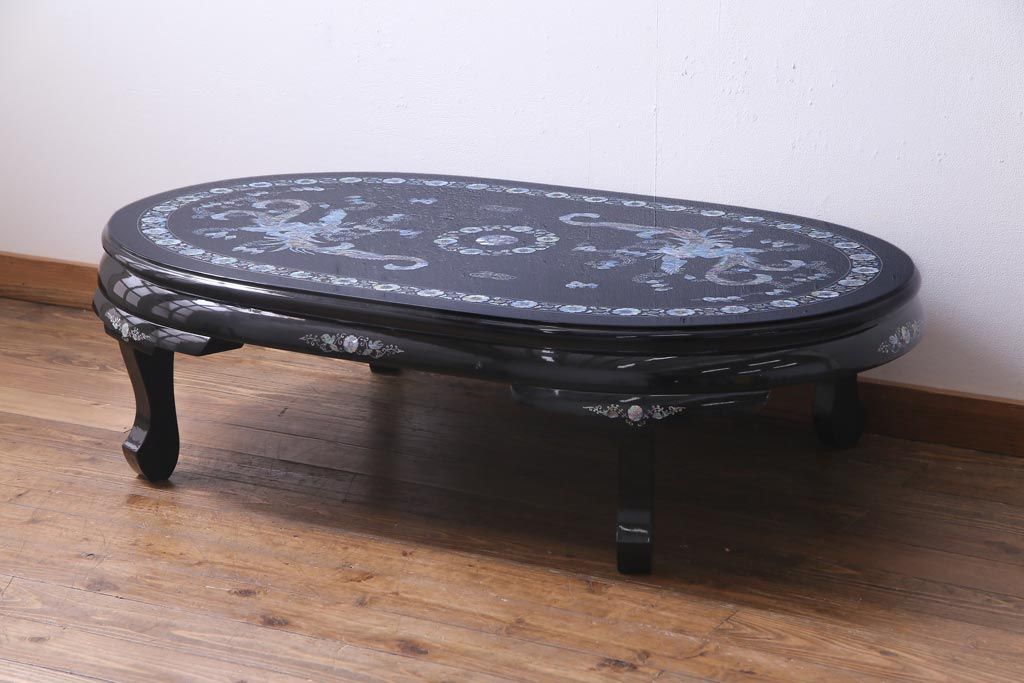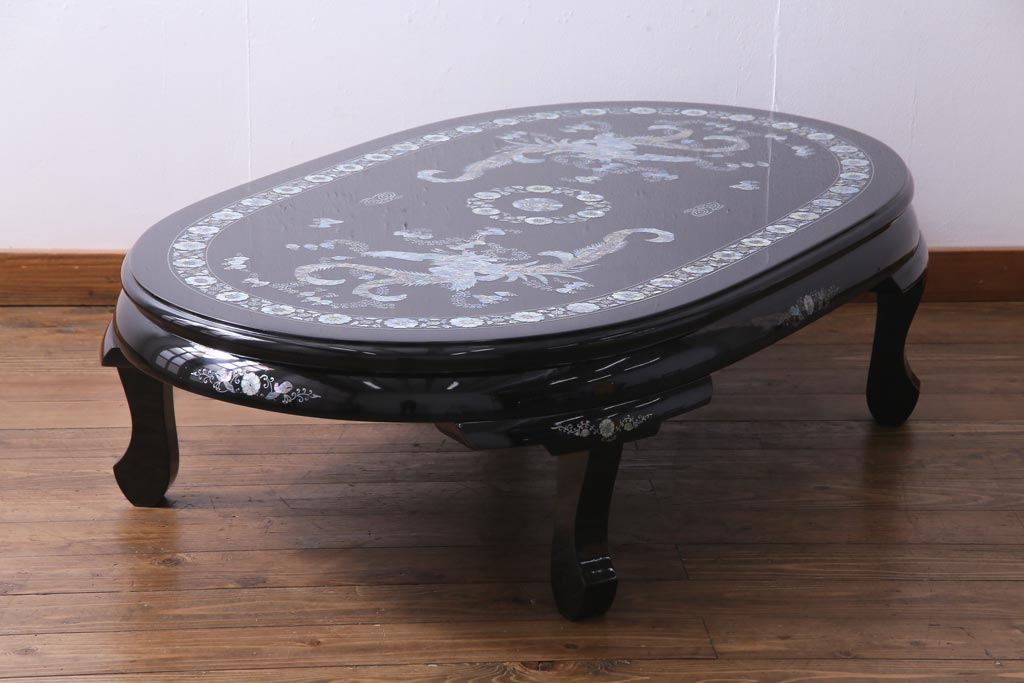 テーブル> 座卓 > 中古 民芸家具 オーバル型 煌びやかな螺鈿細工の座卓(ローテーブル、センターテーブル)(定価約74万円)