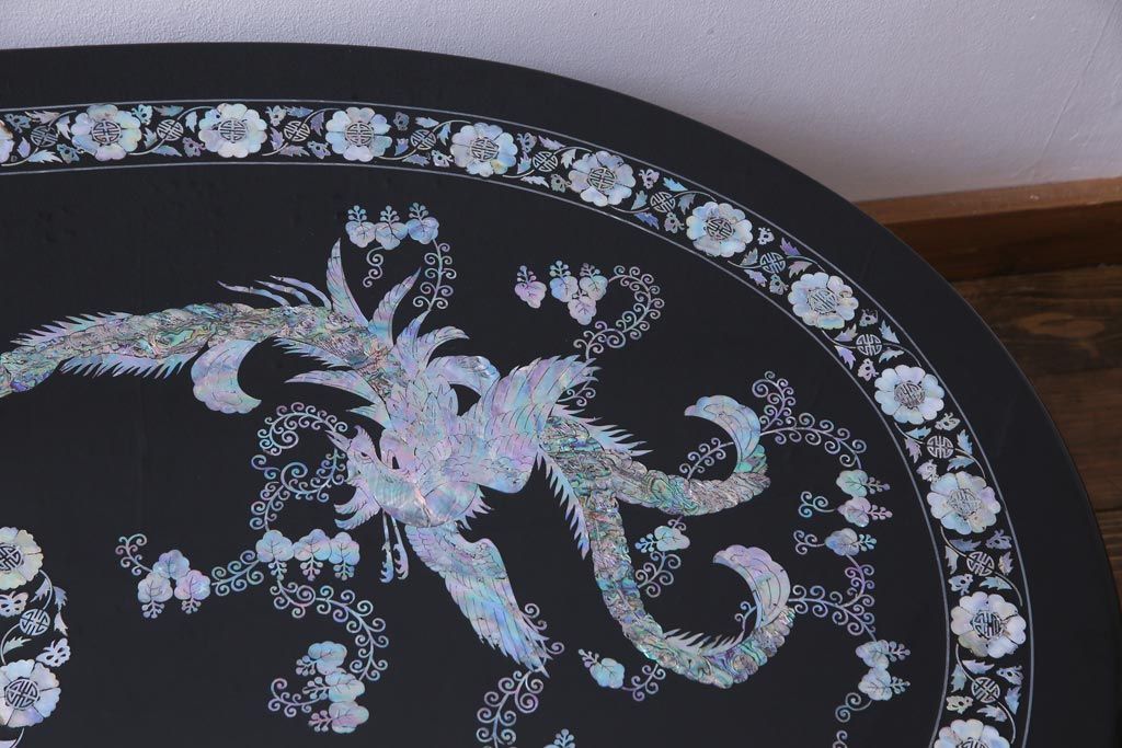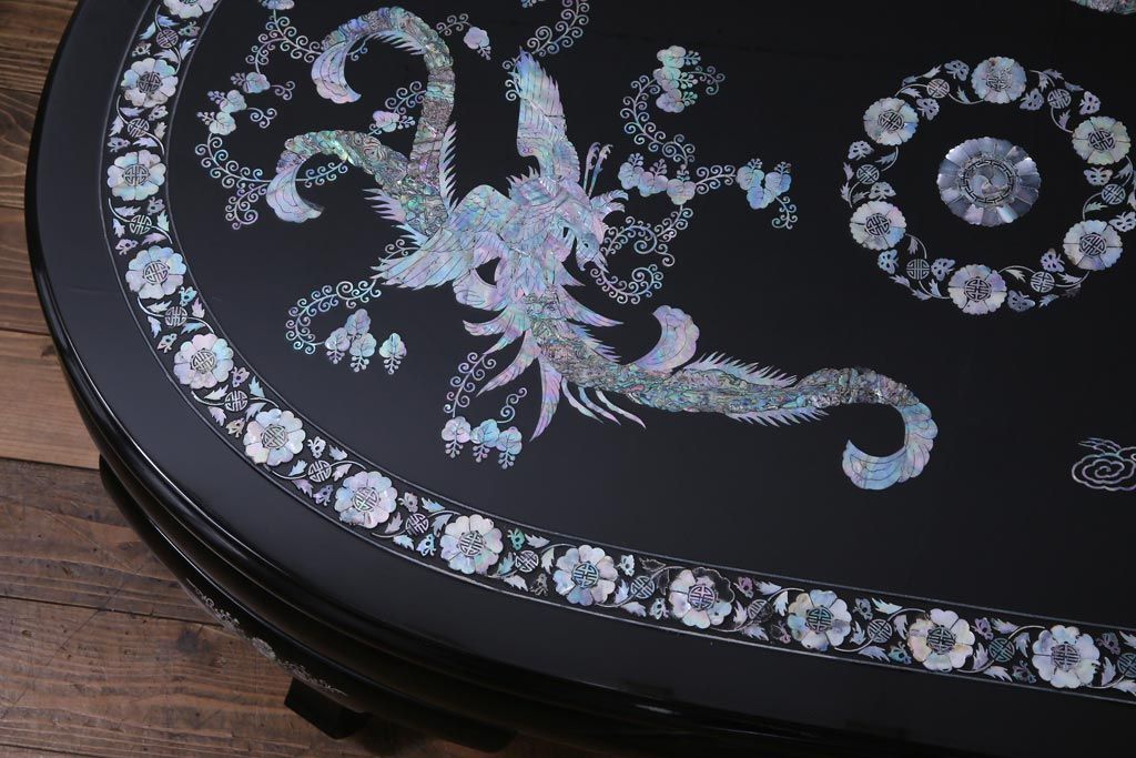 民芸家具 > 中古 民芸家具 オーバル型 煌びやかな螺鈿細工の座卓(ローテーブル、センターテーブル)(定価約74万円)