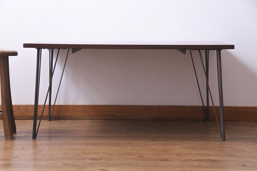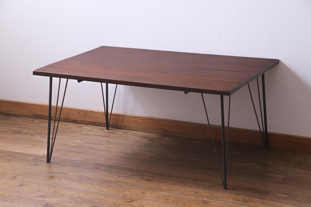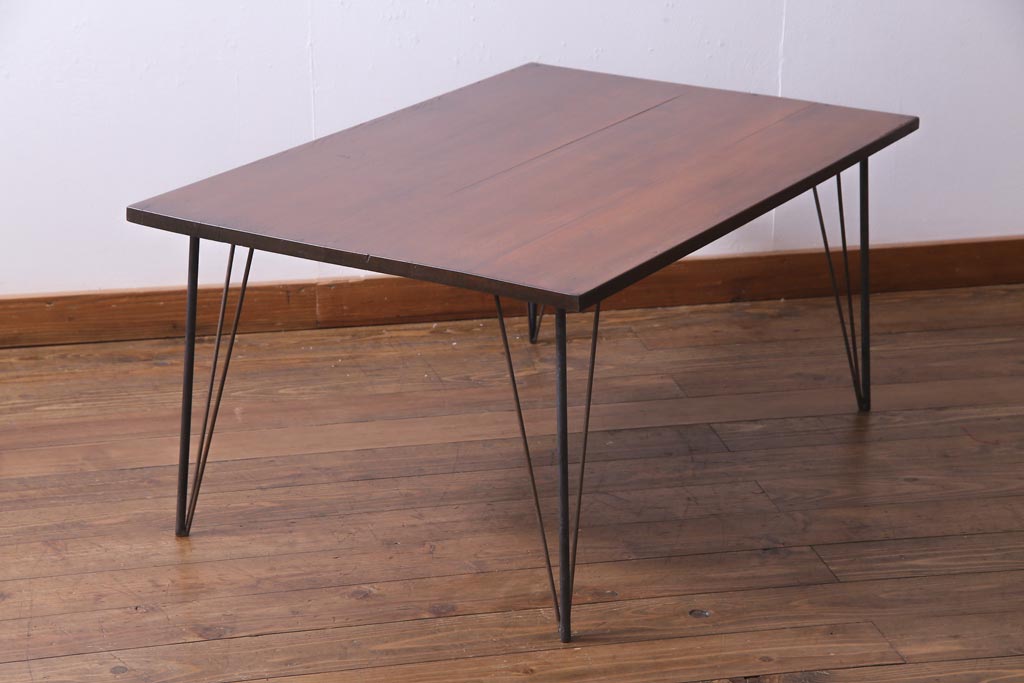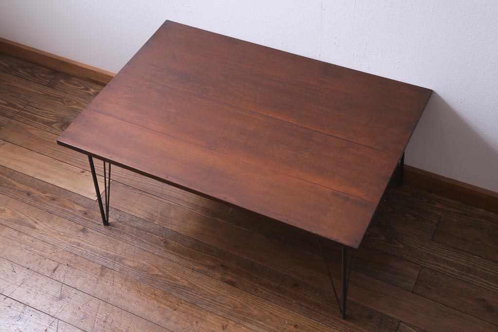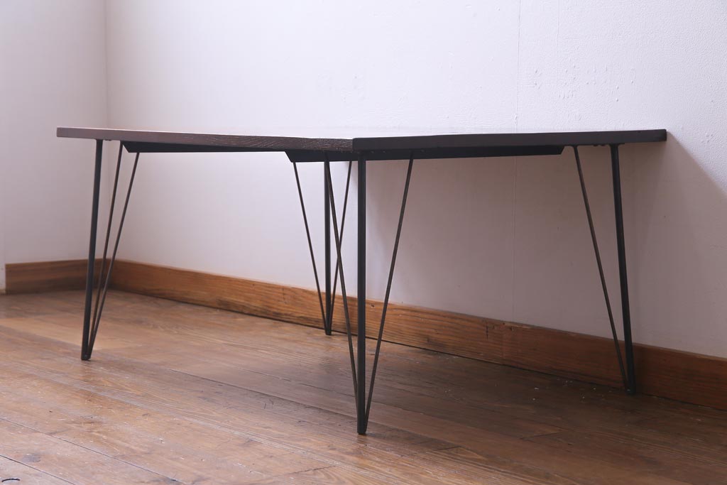 リメイク家具 ナラ材 和製アンティークの古材を利用した鉄脚テーブル(センターテーブル、ローテーブル)です。