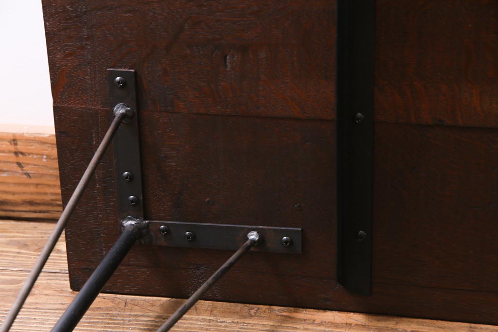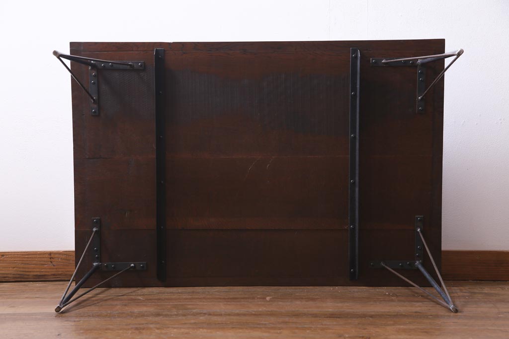 リメイク家具 ナラ材 和製アンティークの古材を利用した鉄脚テーブル(センターテーブル、ローテーブル)