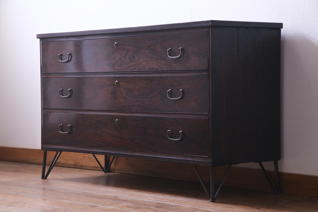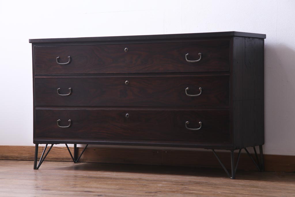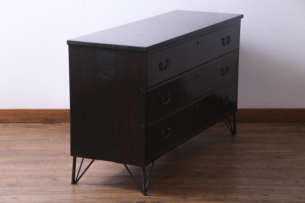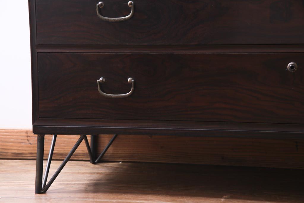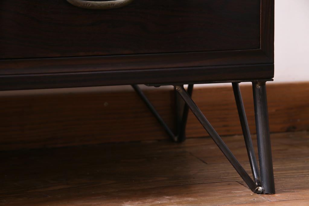 アンティーク家具 リメイク品 鉄脚付き 黒檀の艶が気品のあるシックモダンなチェスト(リビングボード、引き出し)