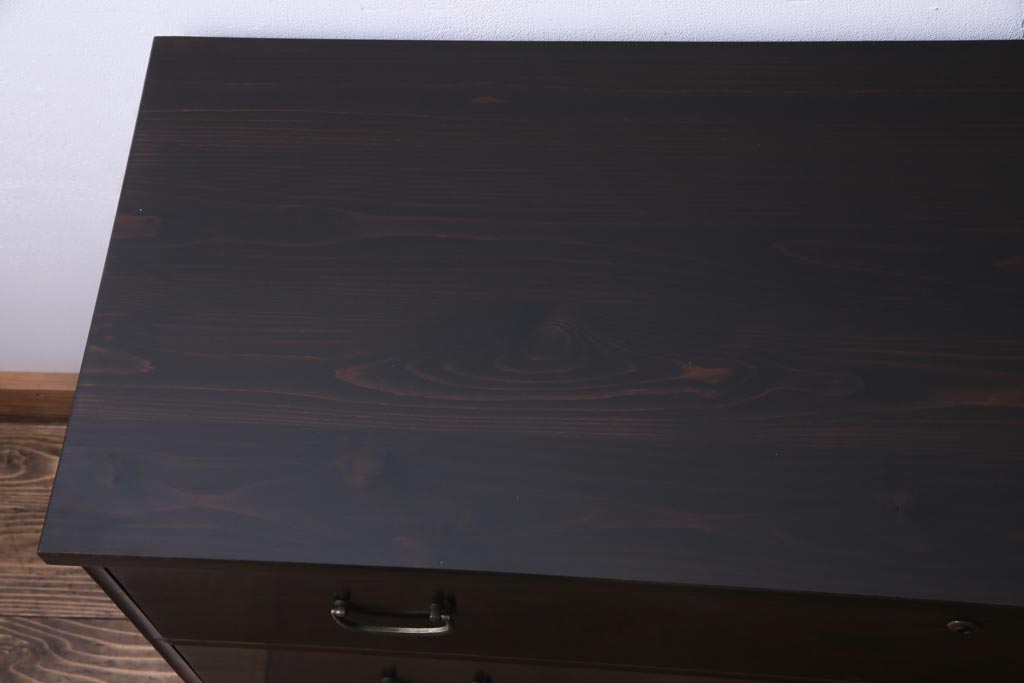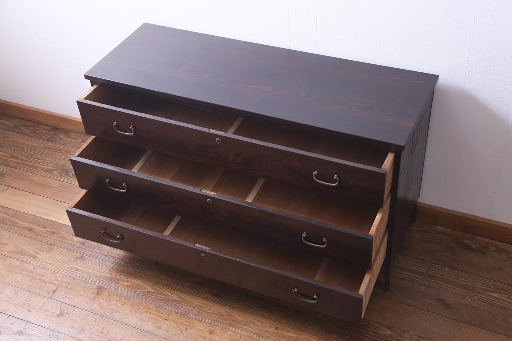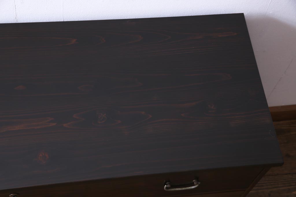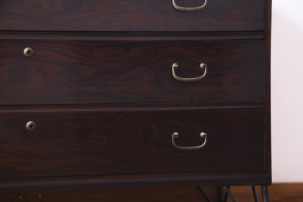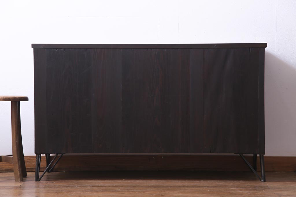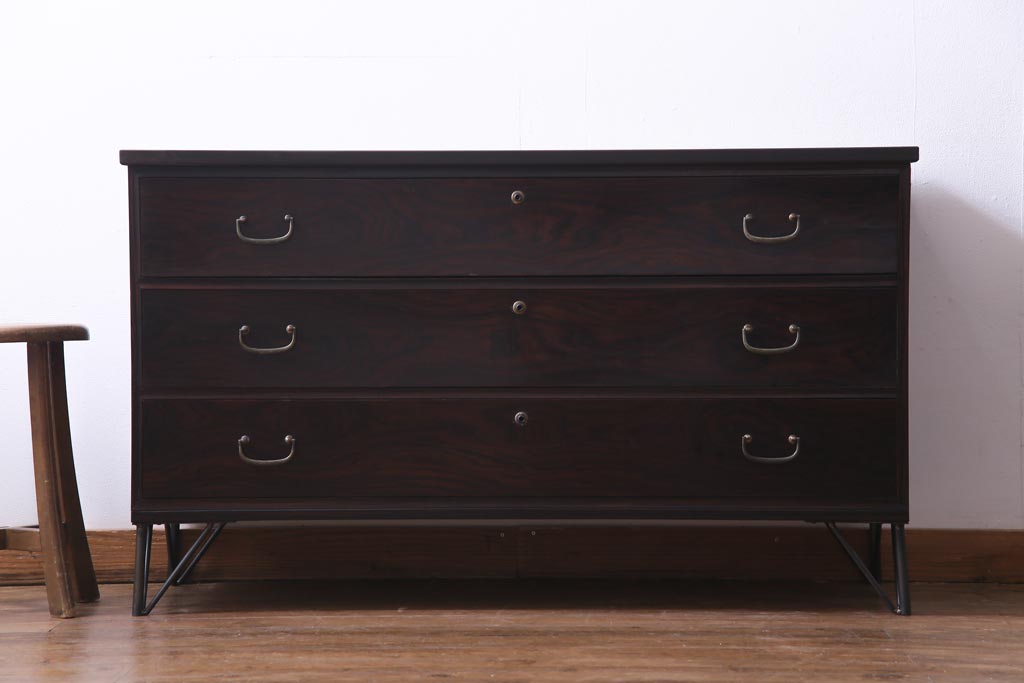 アンティーク家具 リメイク品 鉄脚付き 黒檀の艶が気品のあるシックモダンなチェスト(リビングボード、引き出し)