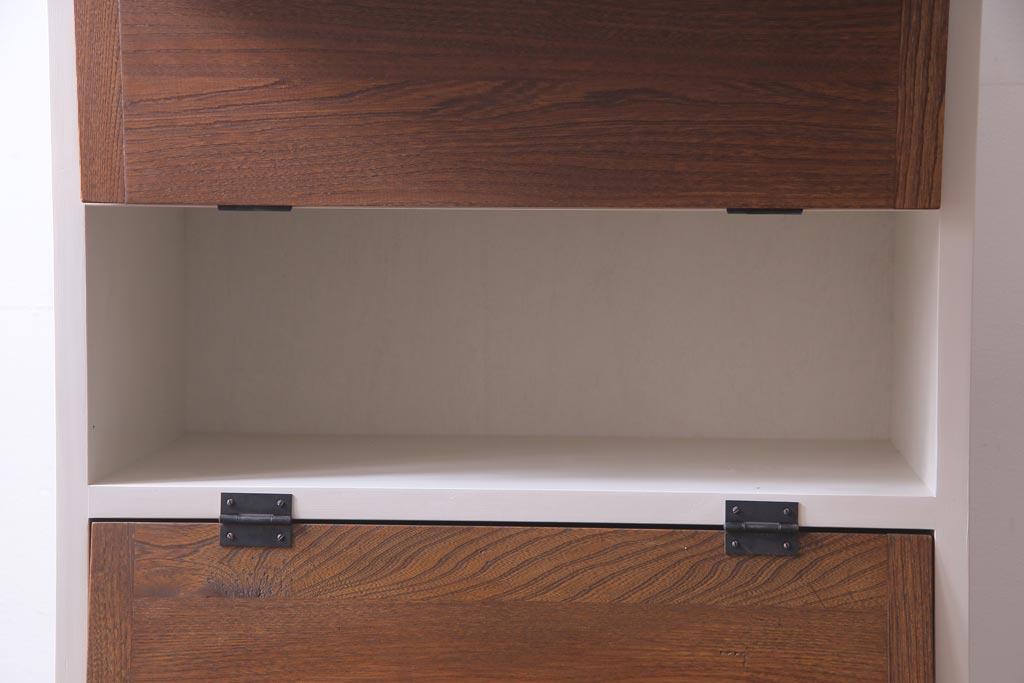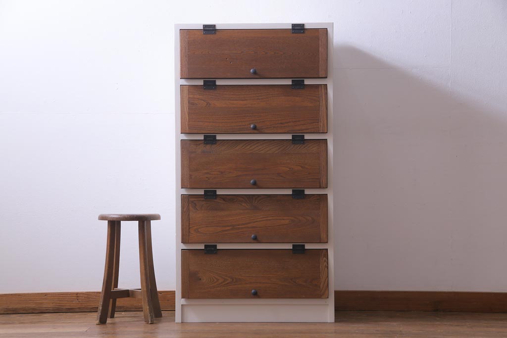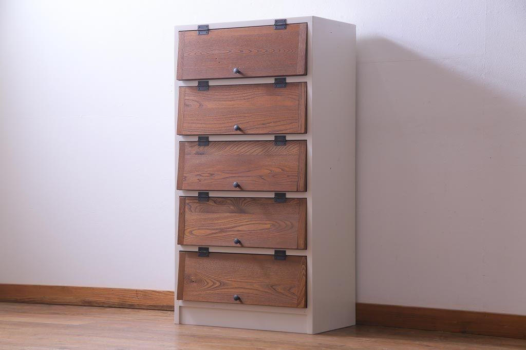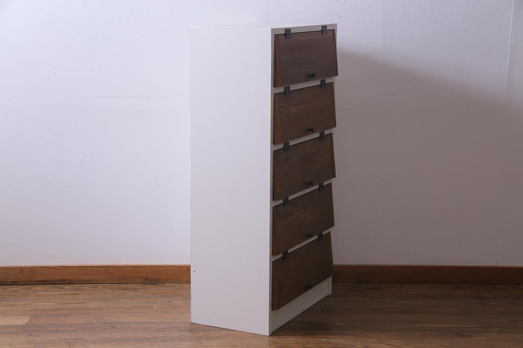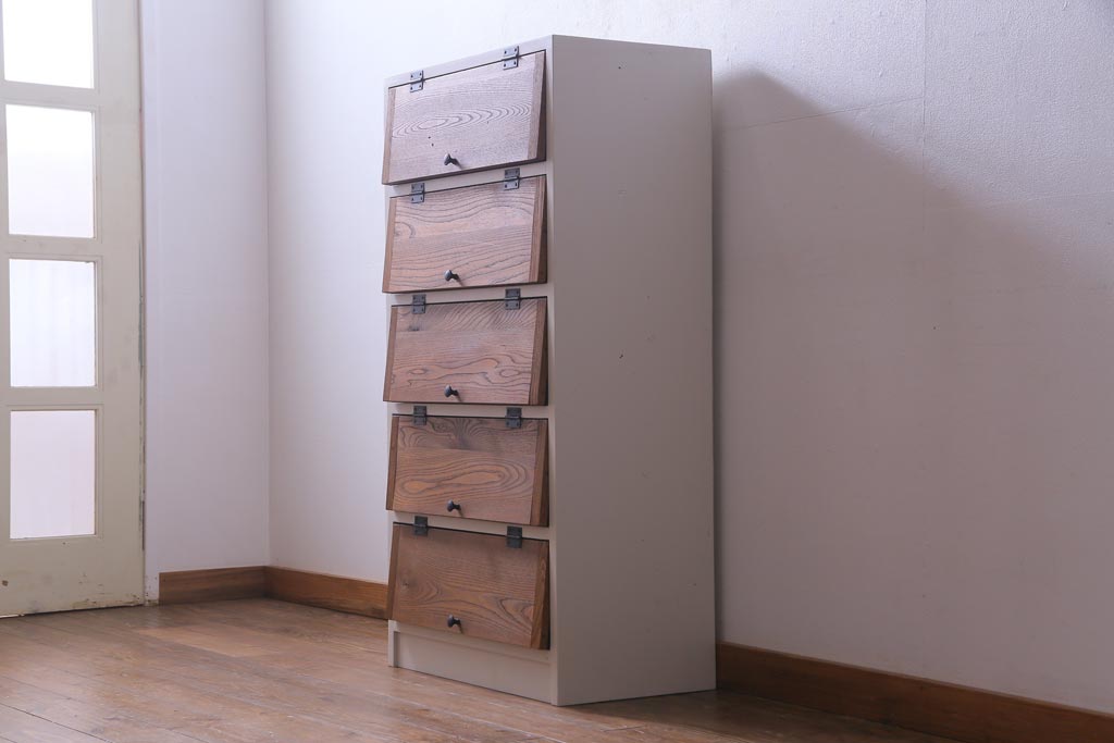 キャビネット・戸棚 > ラフジュ工房オリジナル 白のペイントが明るい印象を与えるパタパタ扉の収納棚(5段タイプ)(戸棚、下駄箱)です。
