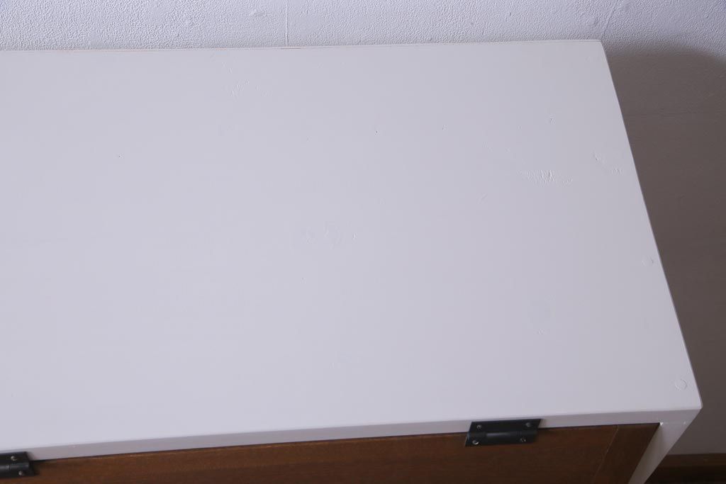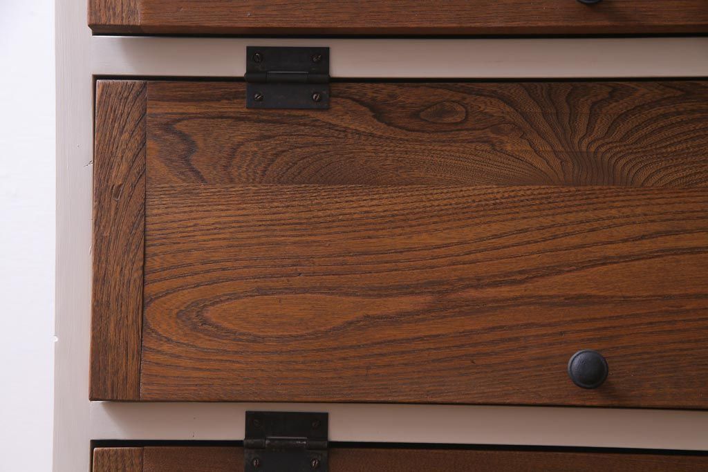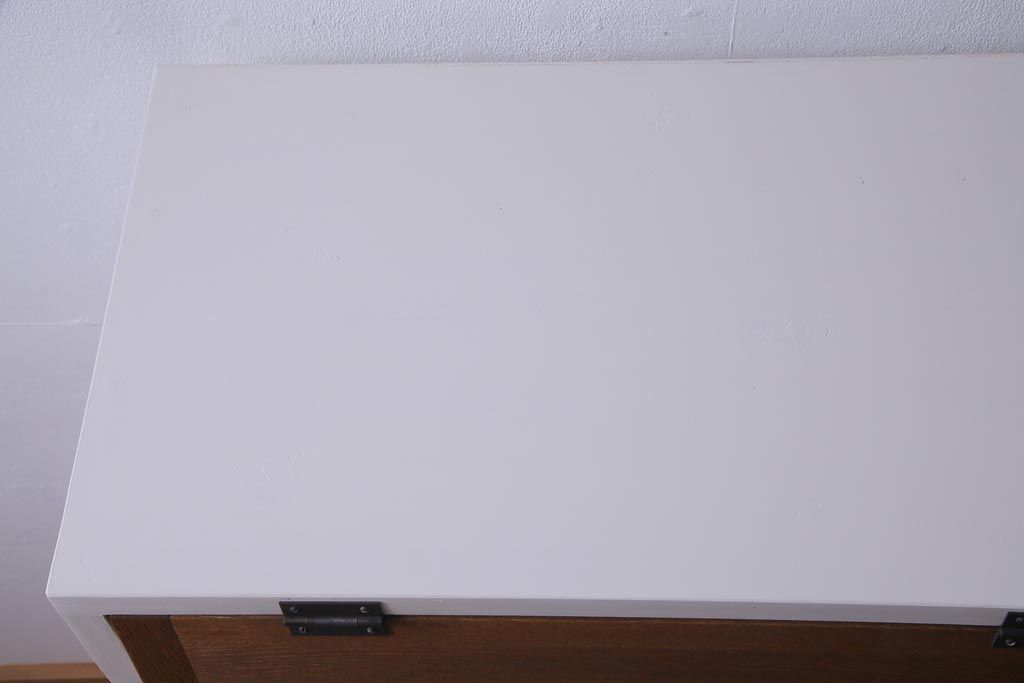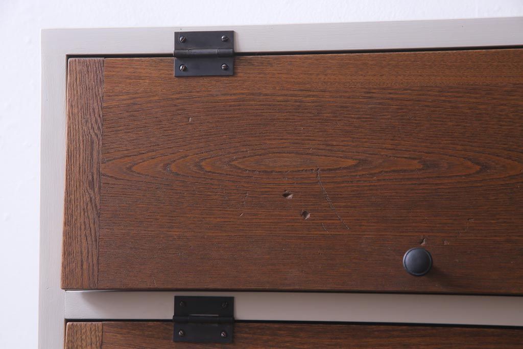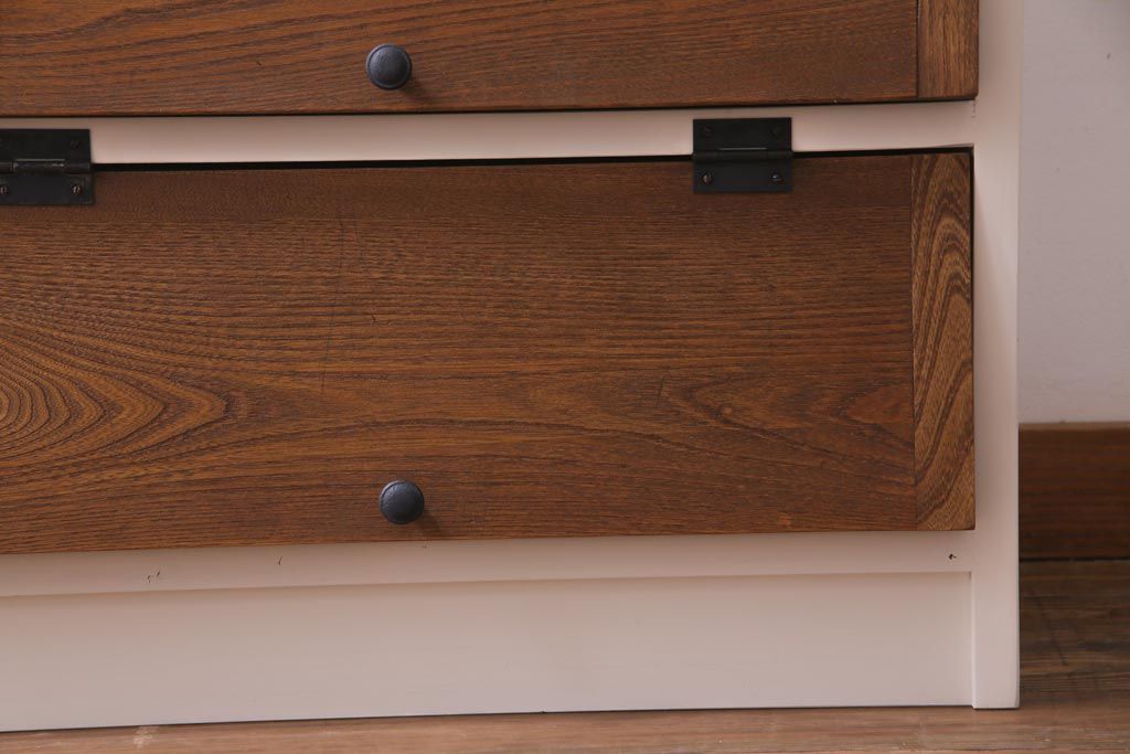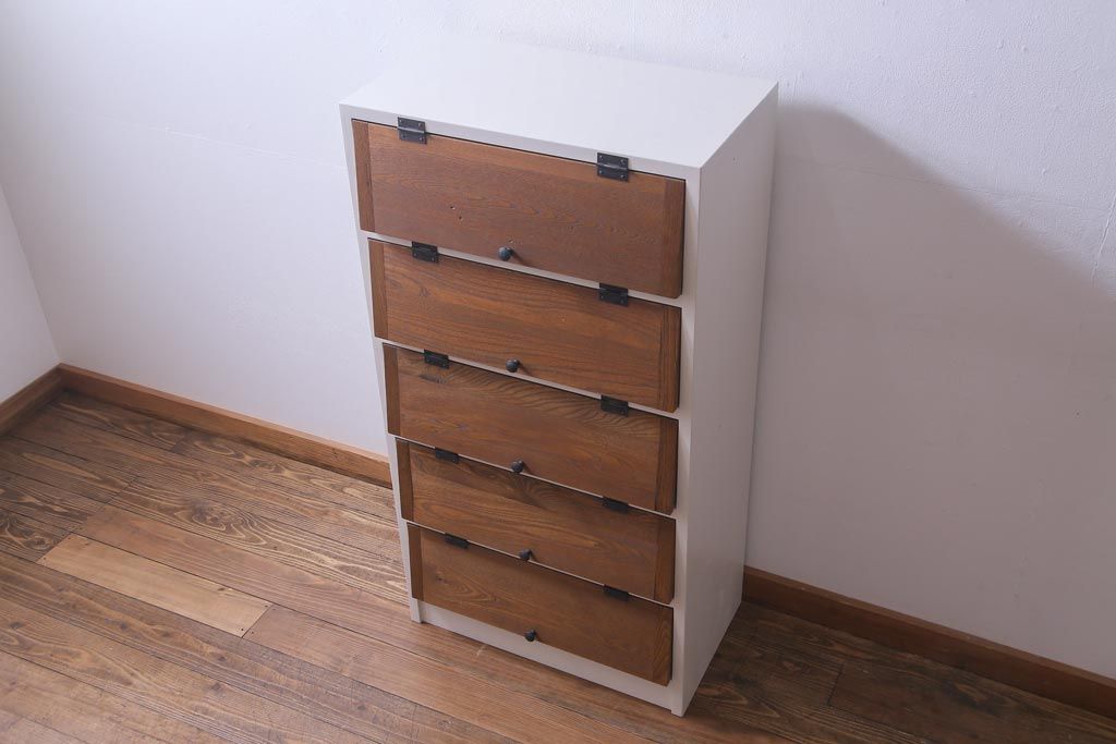 キャビネット・戸棚 > ラフジュ工房オリジナル 白のペイントが明るい印象を与えるパタパタ扉の収納棚(5段タイプ)(戸棚、下駄箱)です。