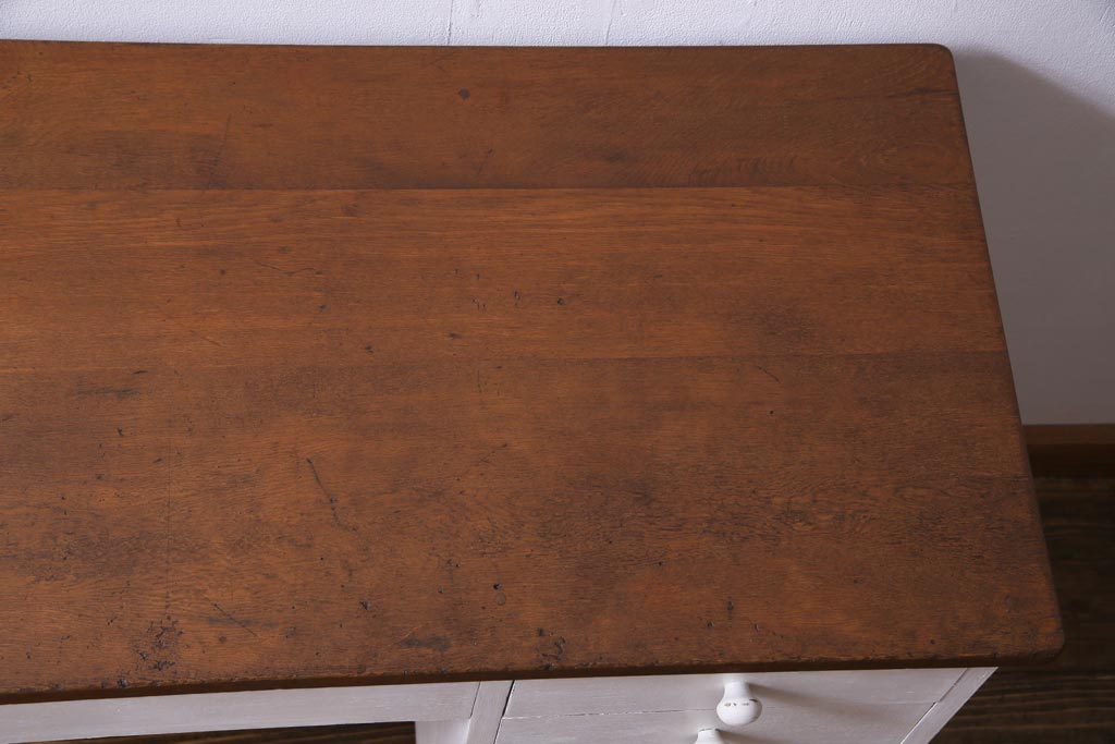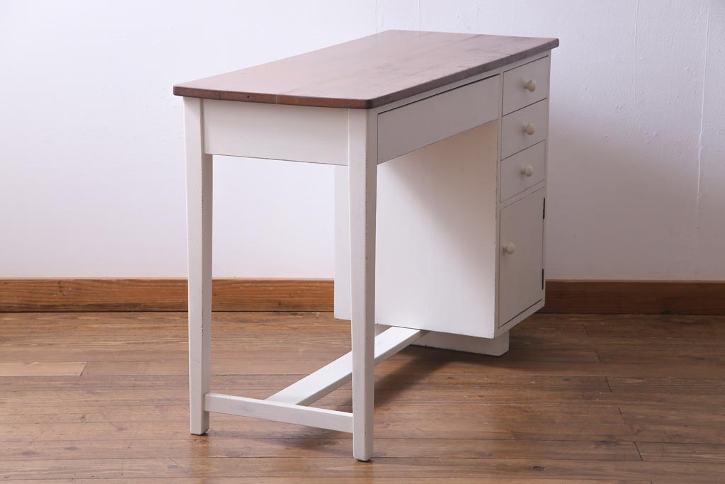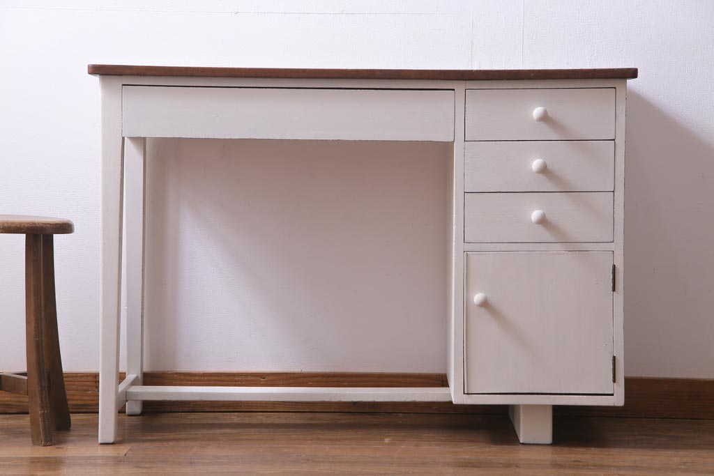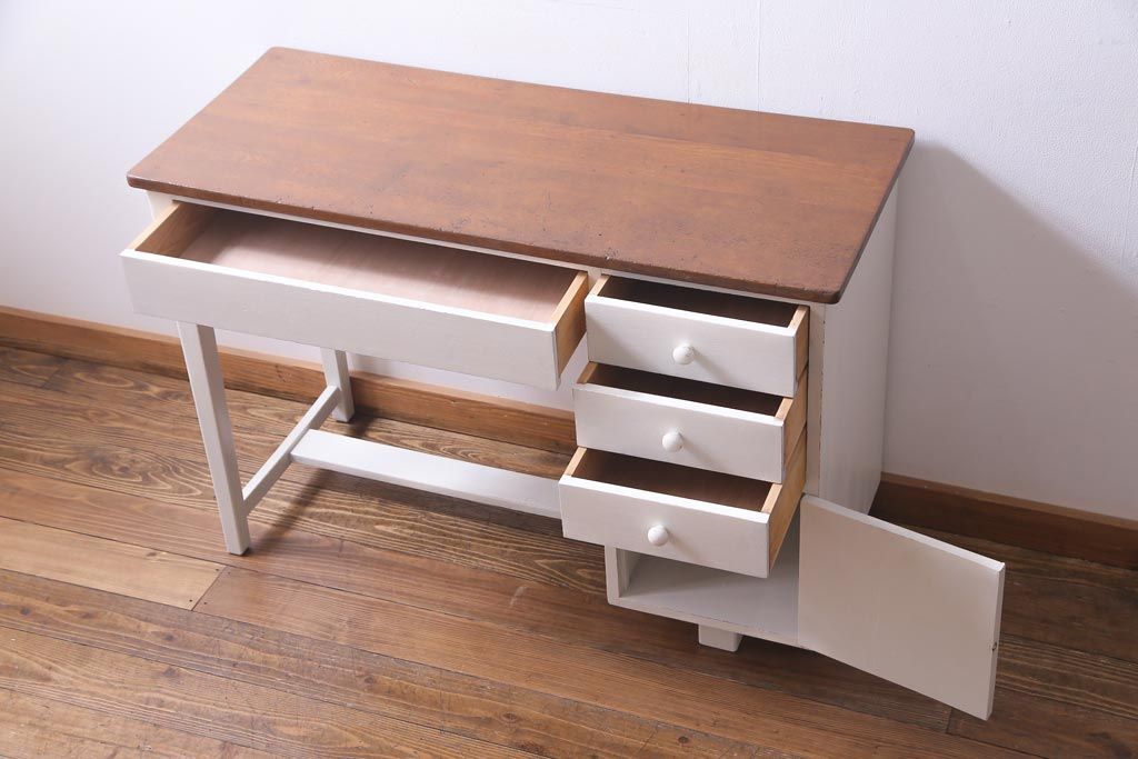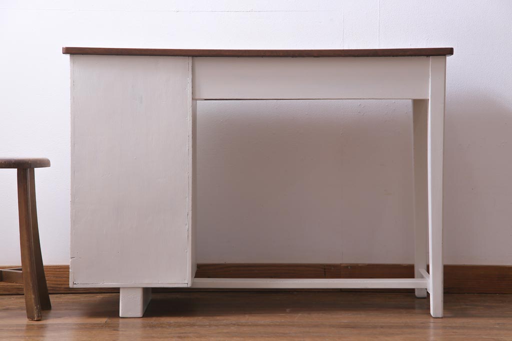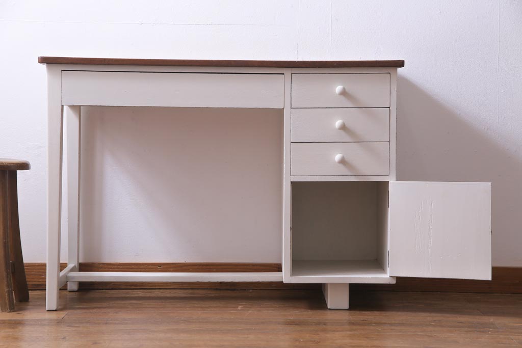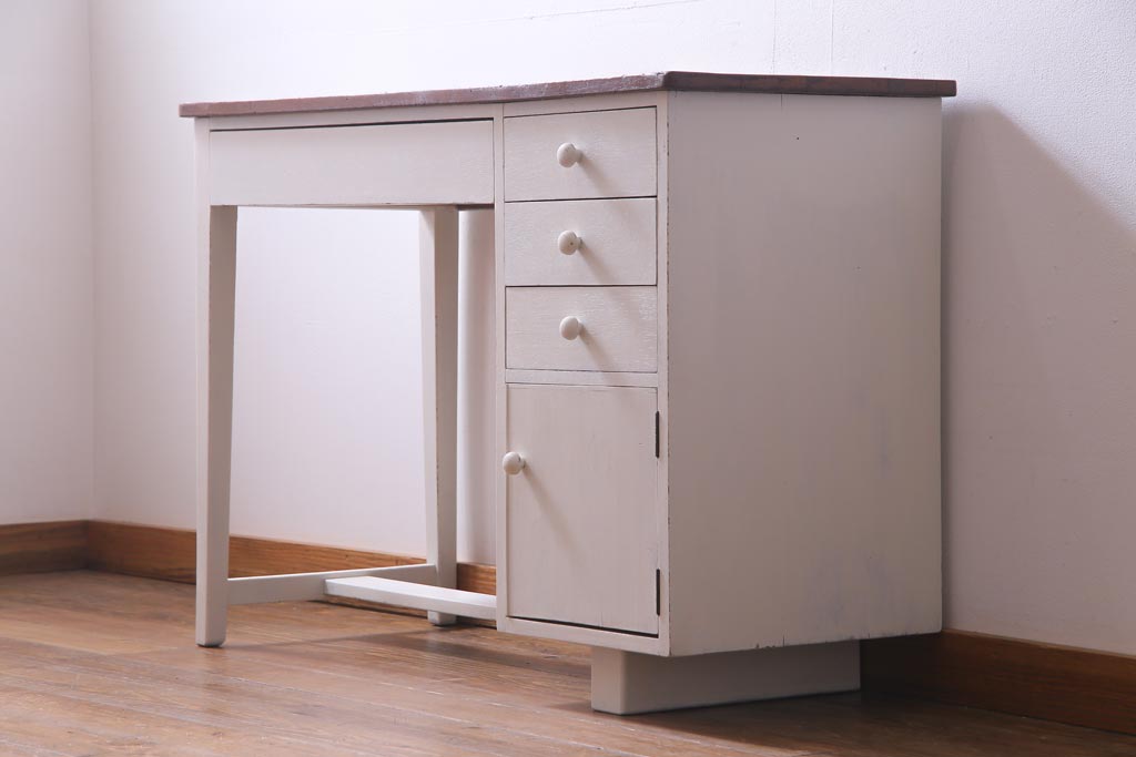 ペイント家具 ナラ材 優しげで温かみ感じる薄型タイプの片袖机(デスク、在宅ワーク、在宅用作業台)