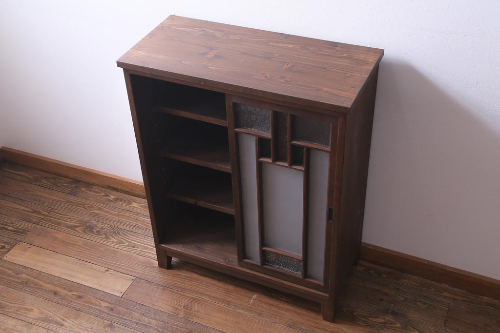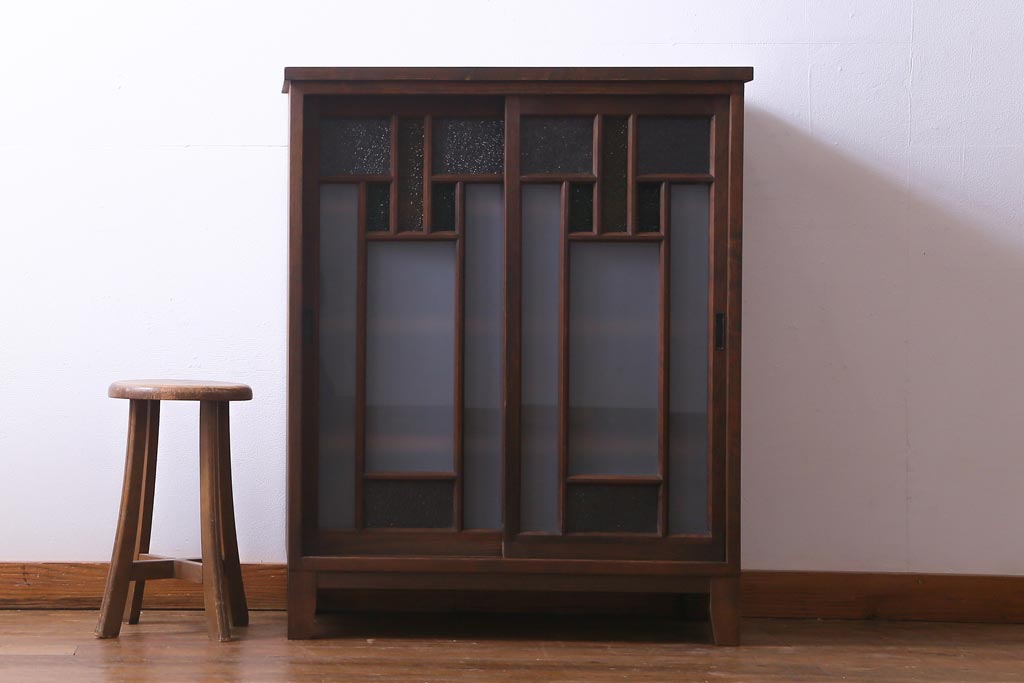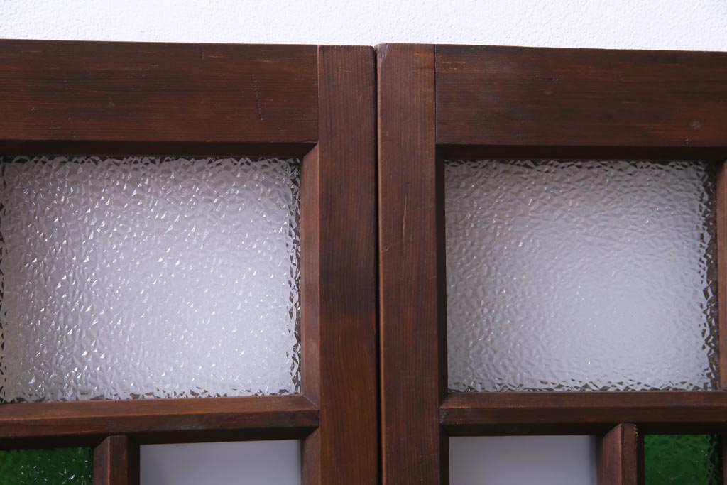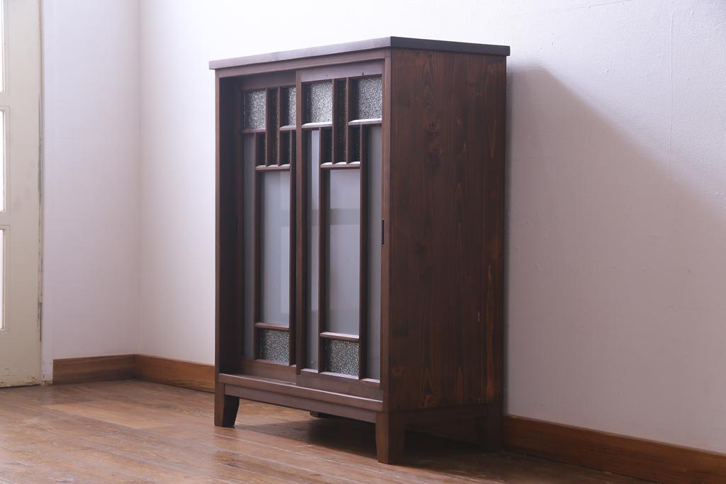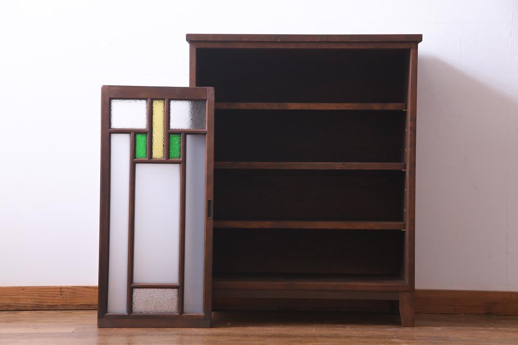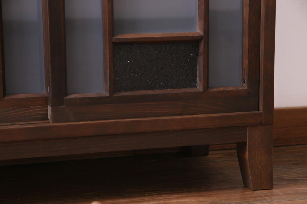 ラフジュ工房オリジナル 古建具リメイク ダイヤ・すり・色ガラスを組合せた大正ロマン香る戸棚(収納棚、食器棚)