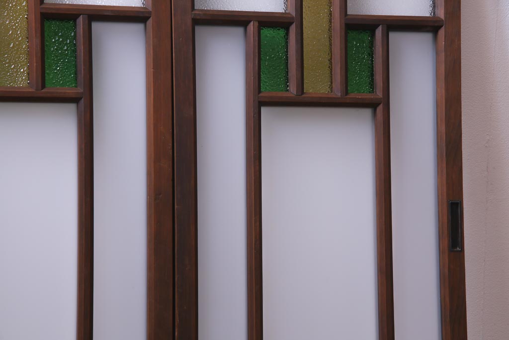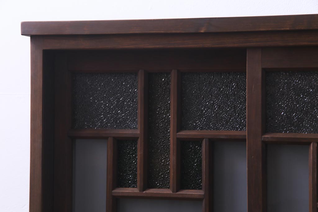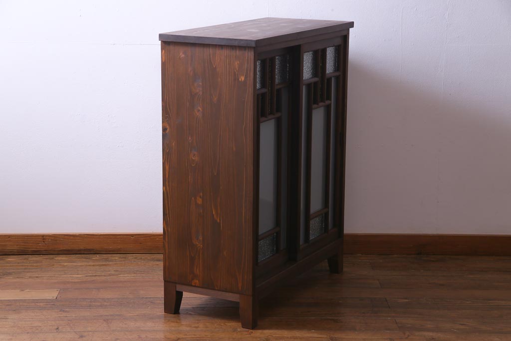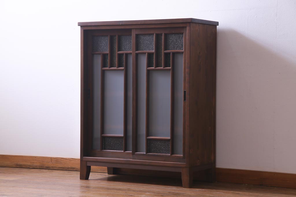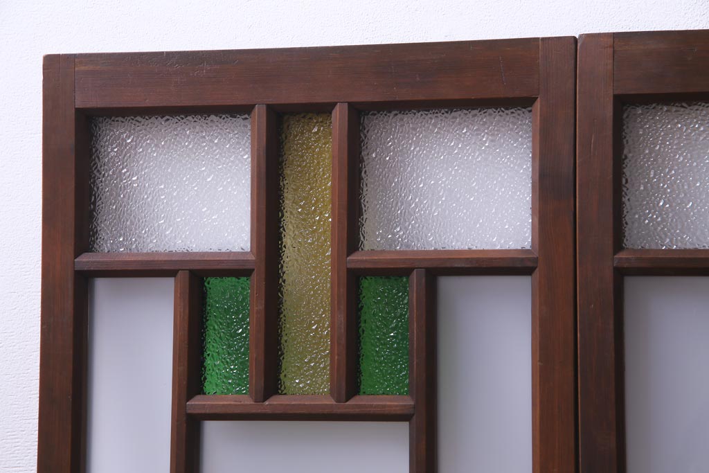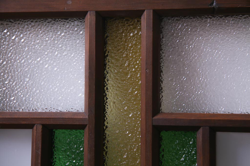 ラフジュ工房オリジナル 古建具リメイク ダイヤ・すり・色ガラスを組合せた大正ロマン香る戸棚(収納棚、食器棚)