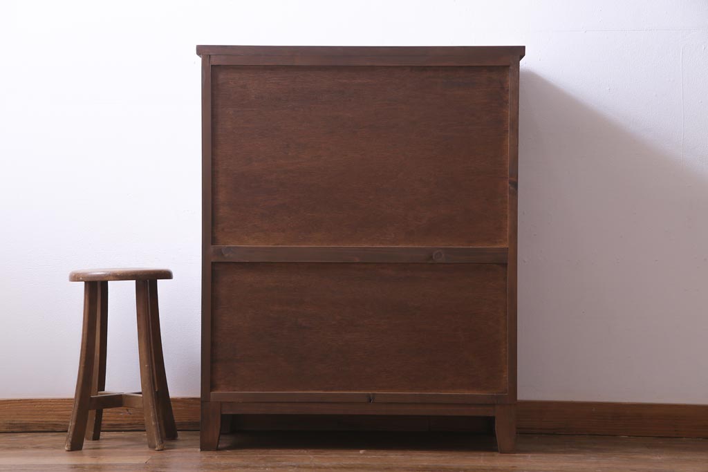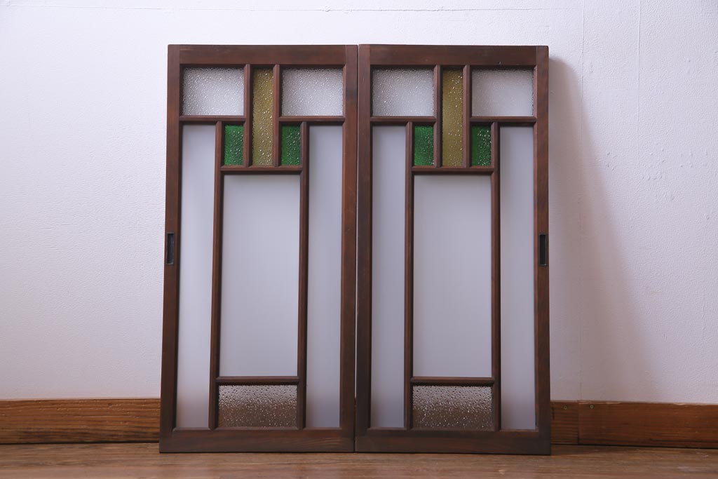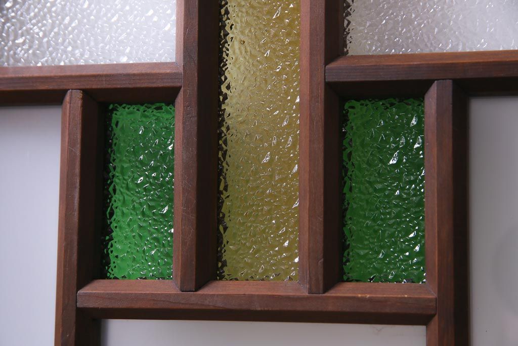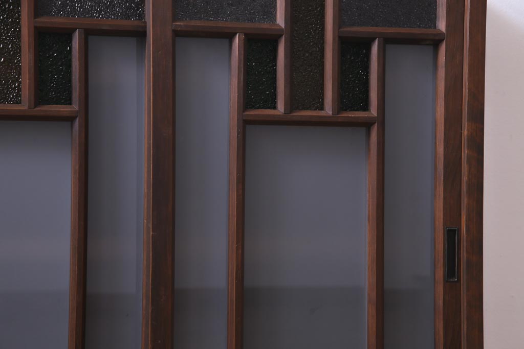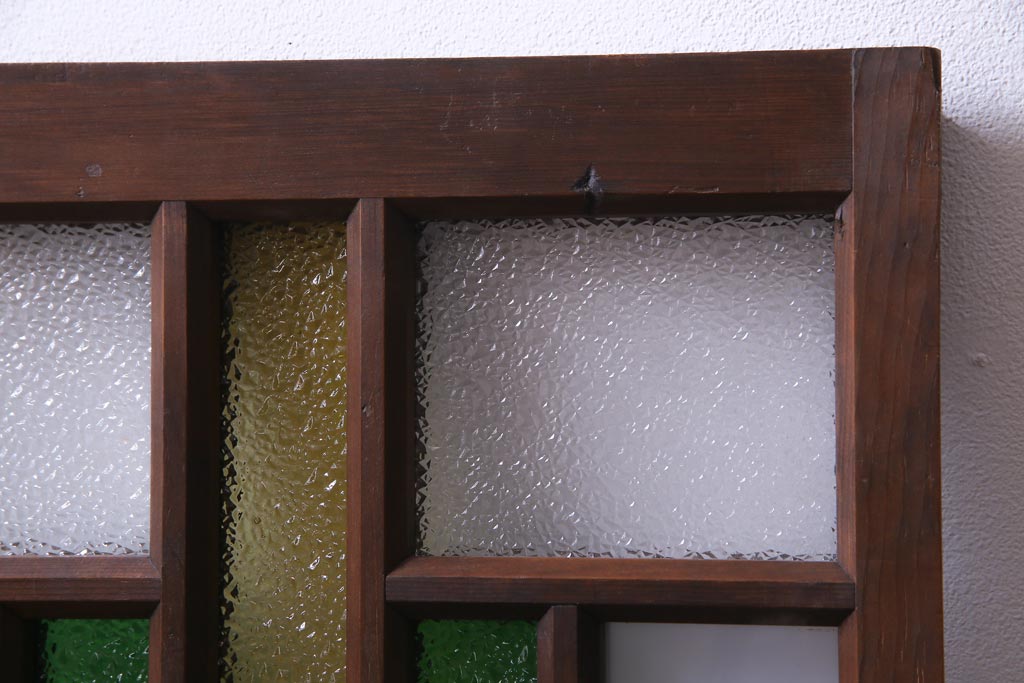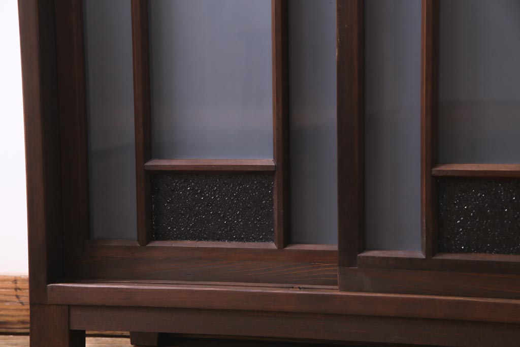 ラフジュ工房オリジナル 古建具リメイク ダイヤ・すり・色ガラスを組合せた大正ロマン香る戸棚(収納棚、食器棚)