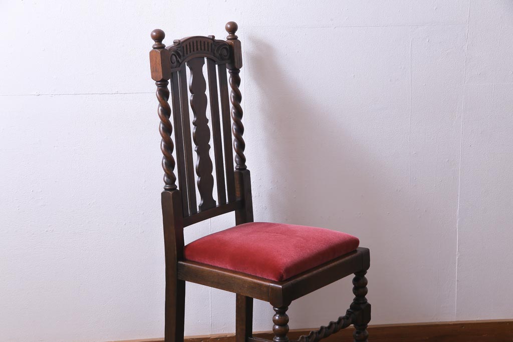 アンティーク家具 イギリスアンティーク ジャコビアン様式 優雅な雰囲気のツイストチェア(椅子)