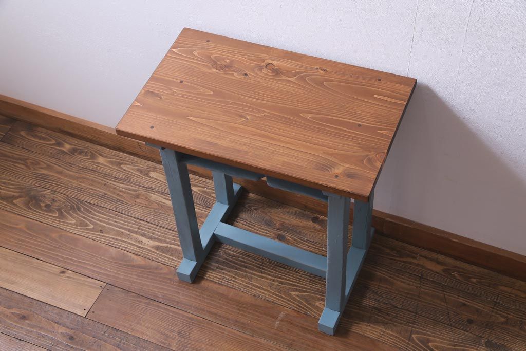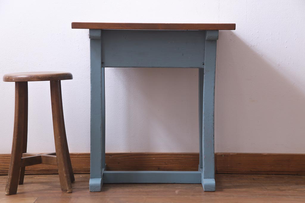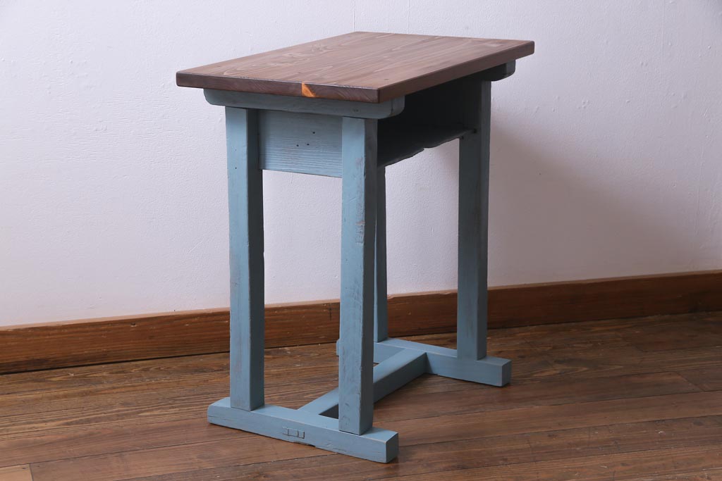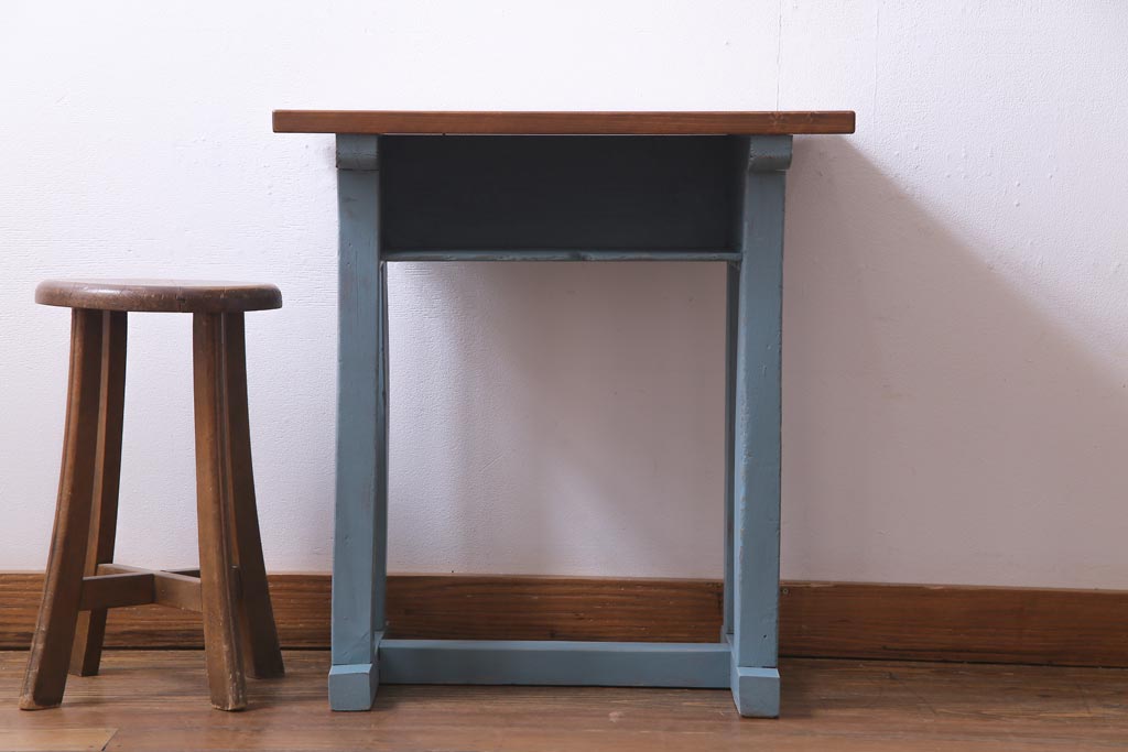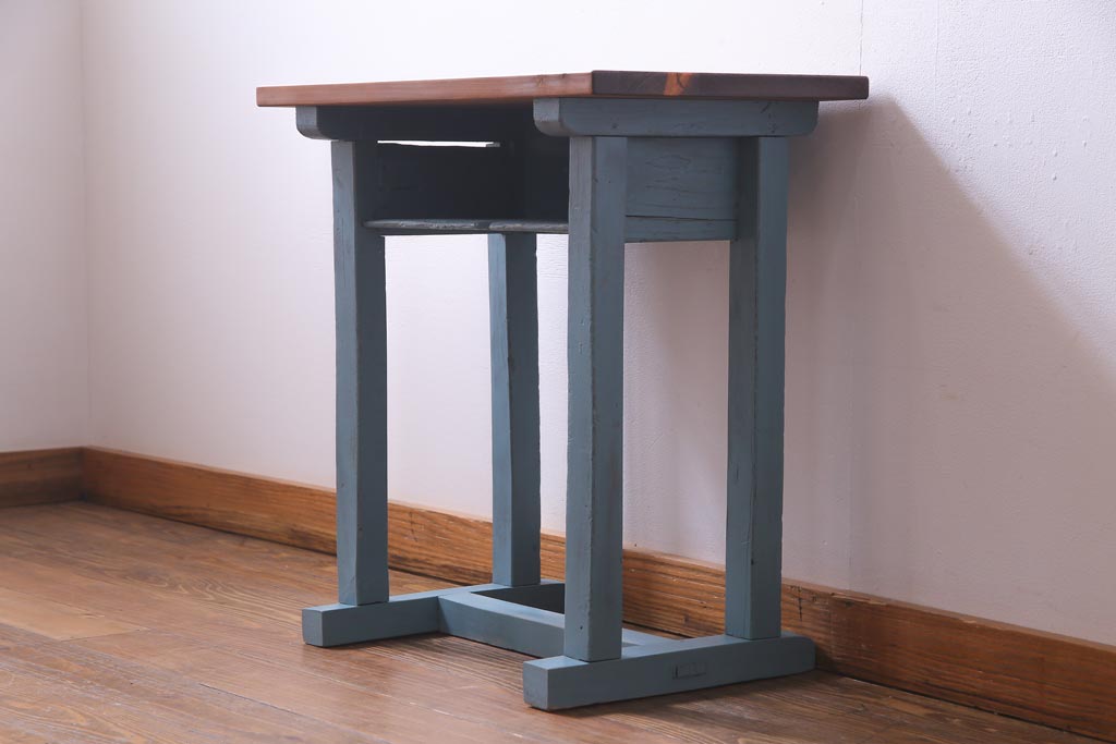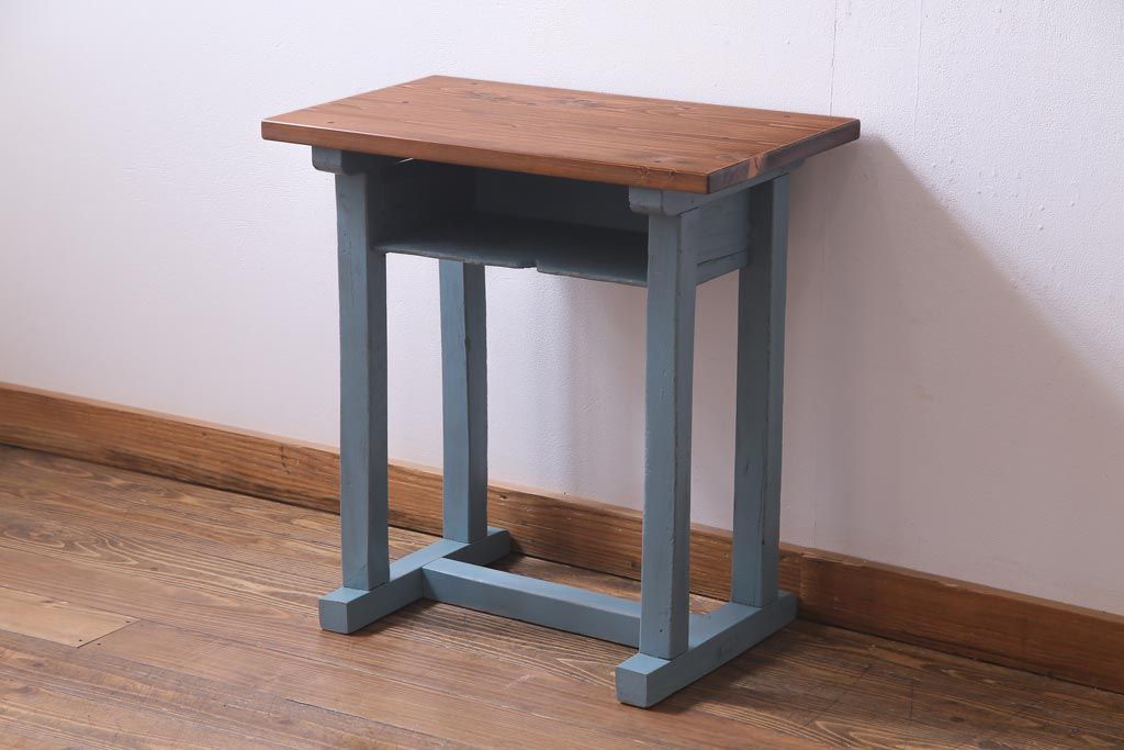 ペイント家具 天板リメイク 素朴で優しげな雰囲気が可愛らしい木製デスク(平机、スクールデスク)です。
